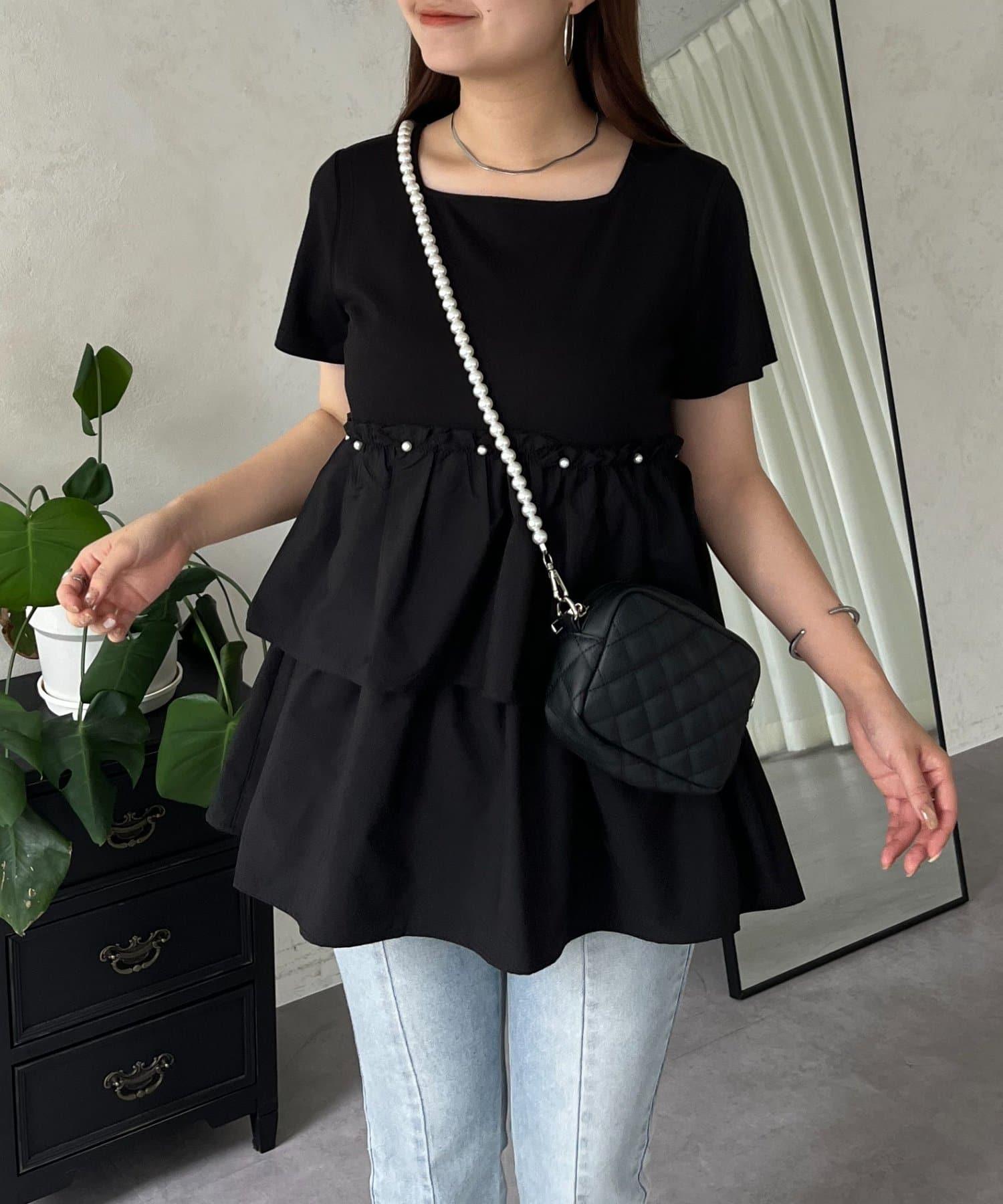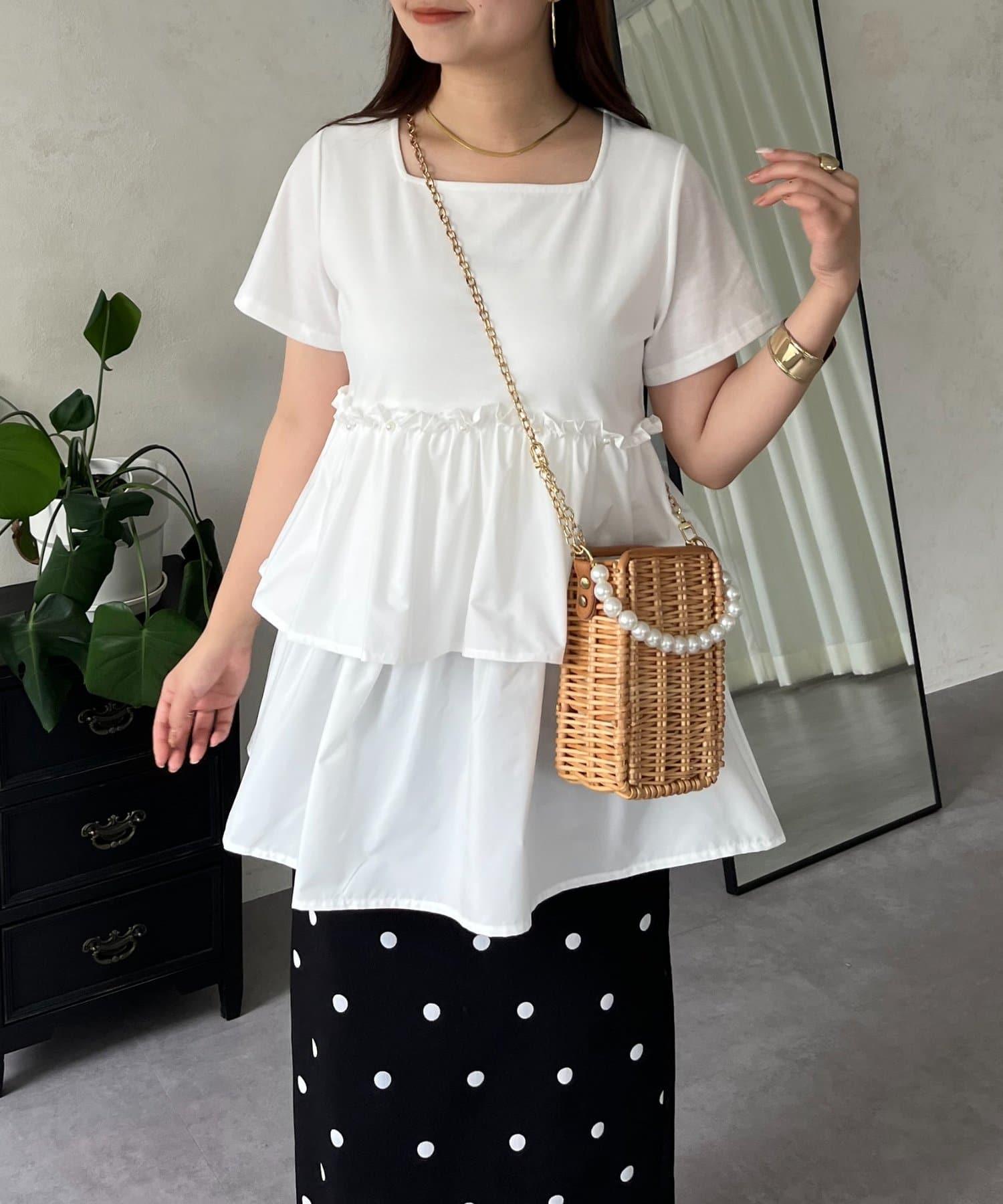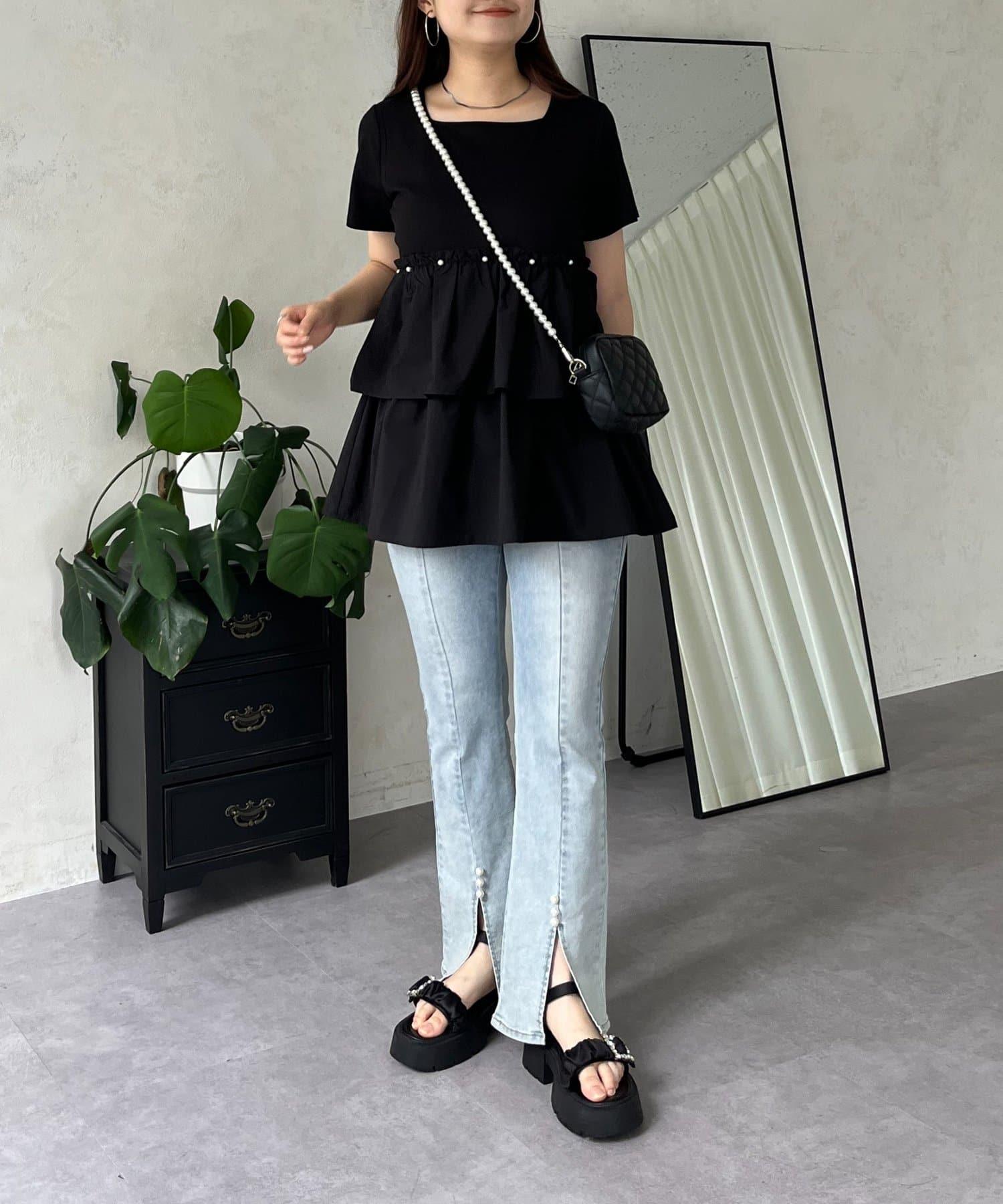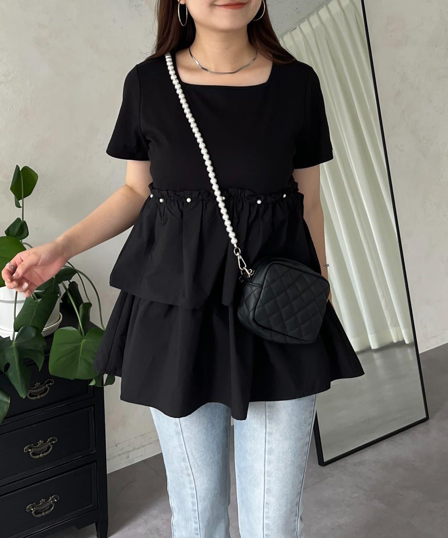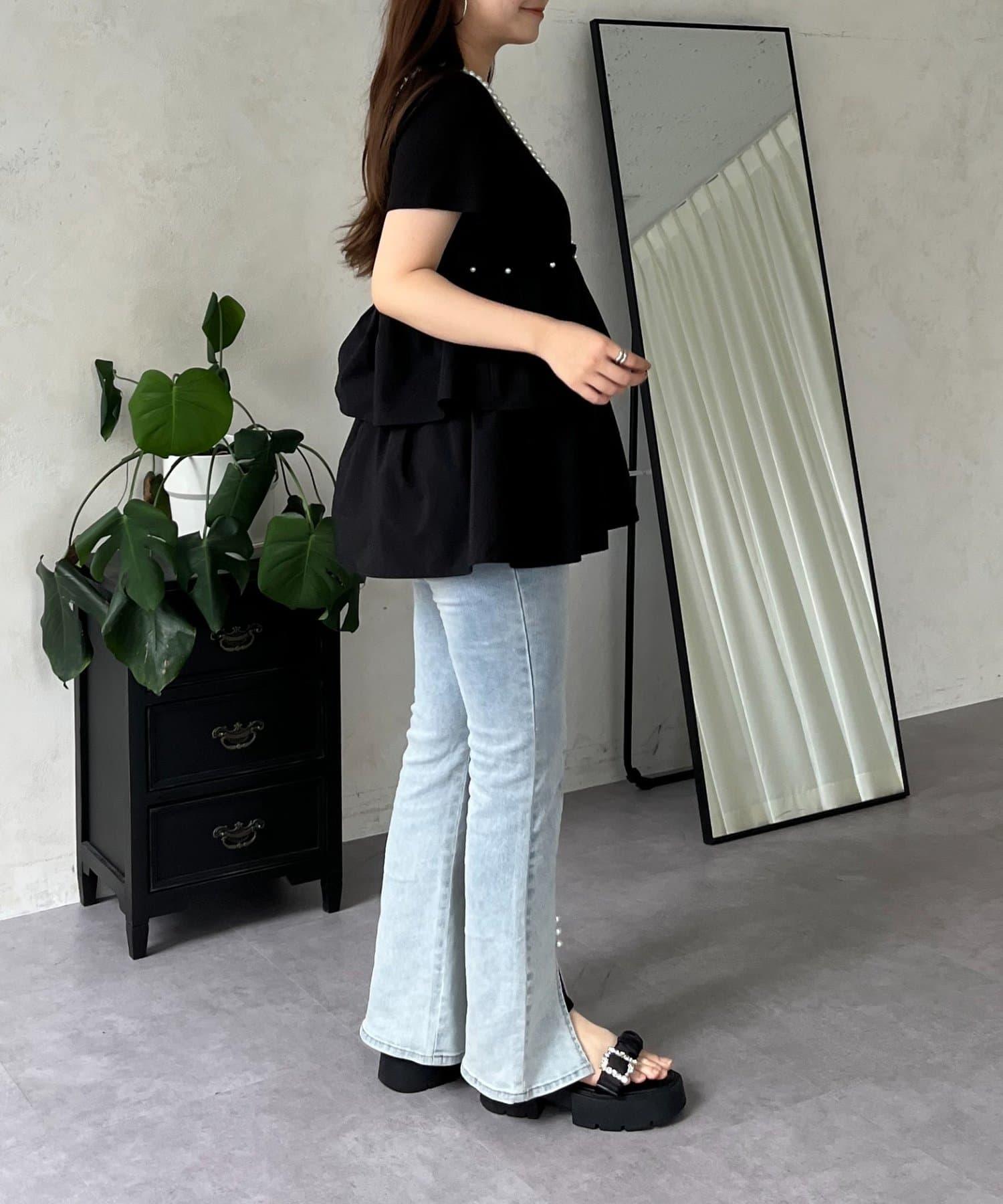 珍珠荷葉邊荷葉邊T恤