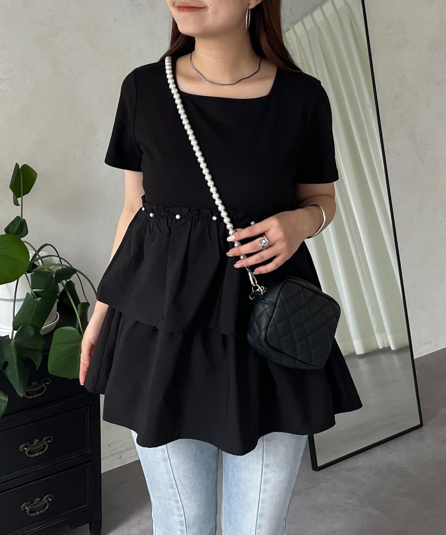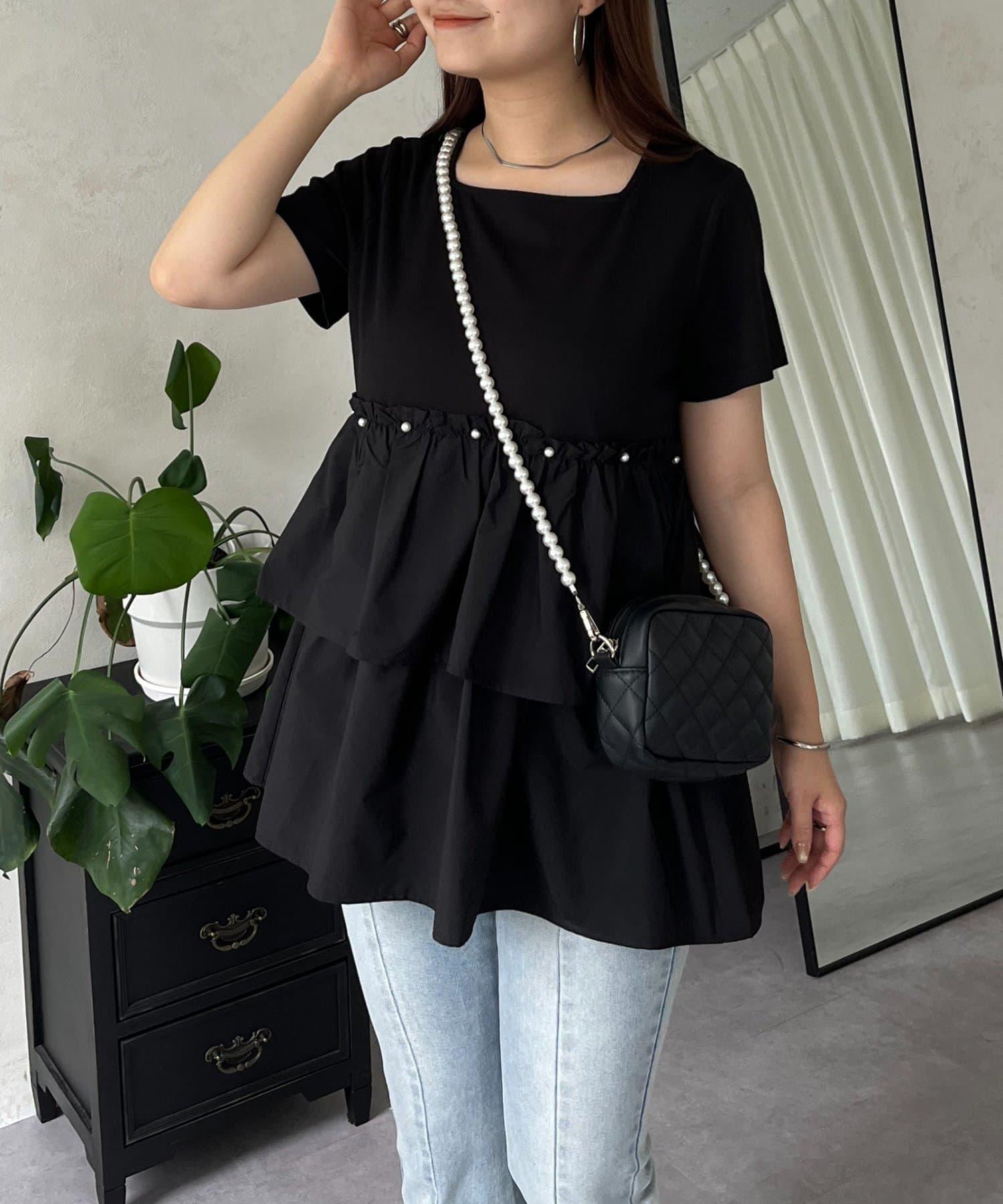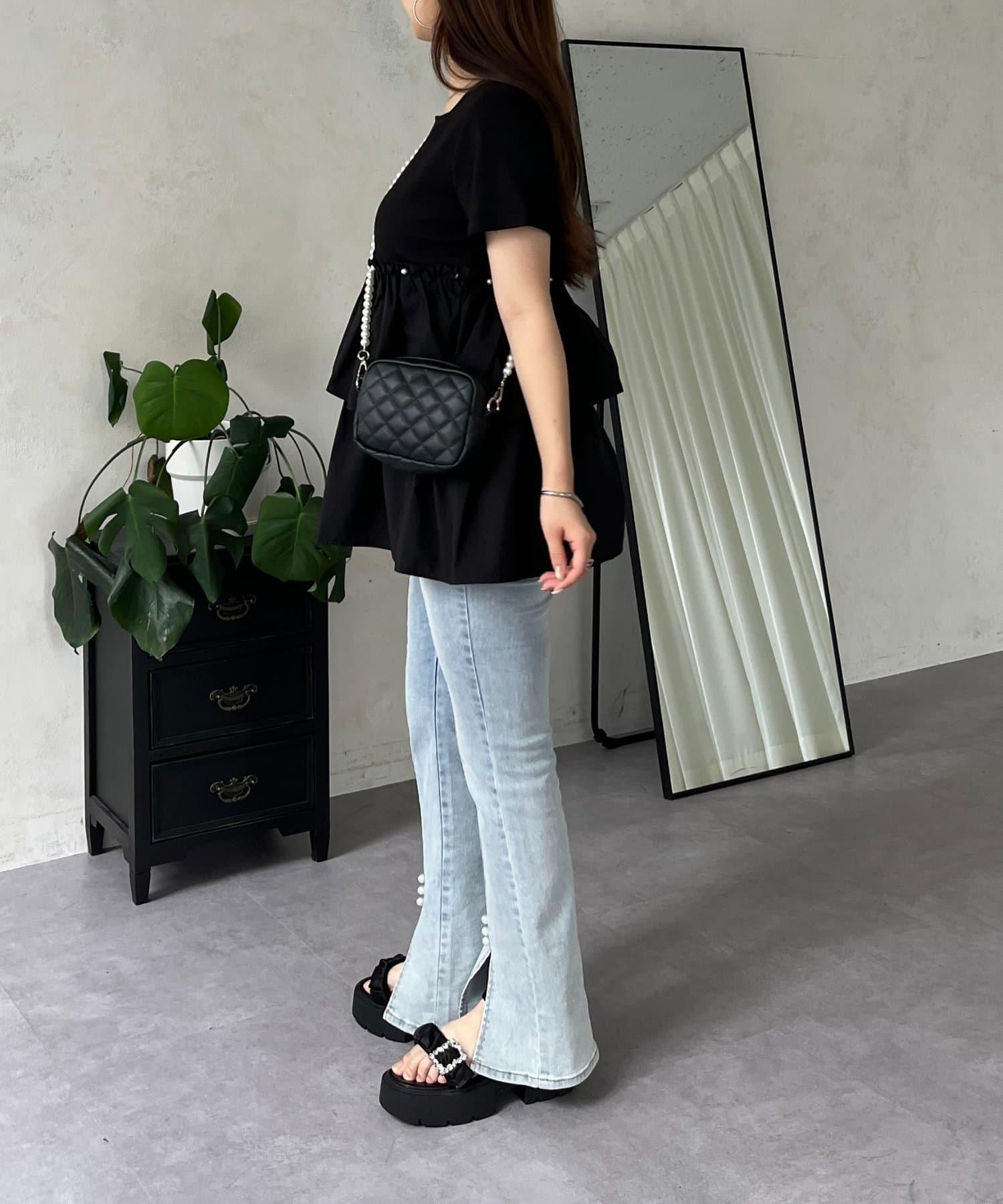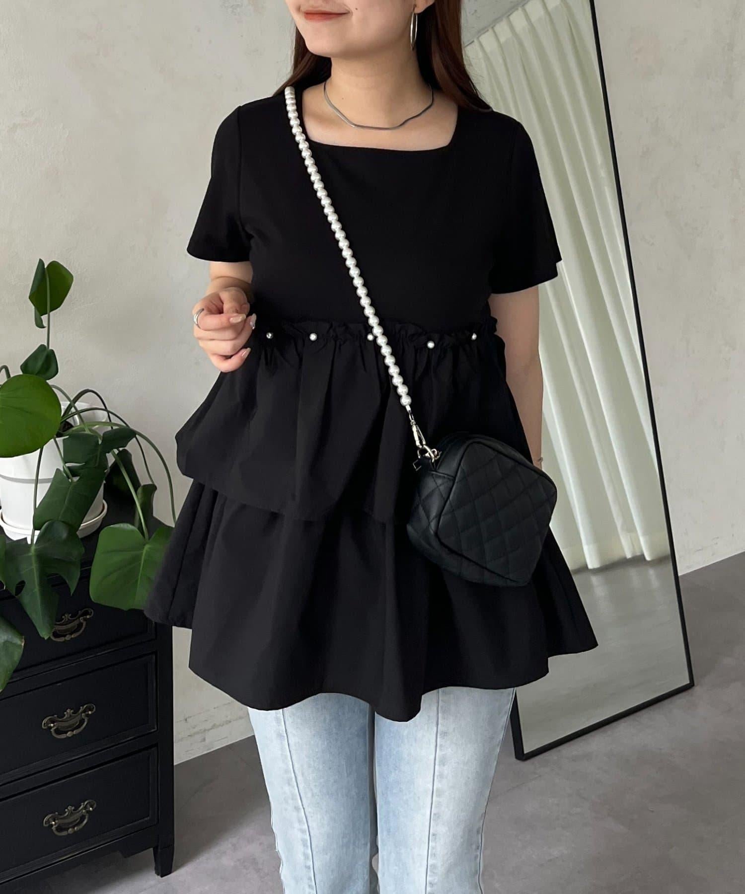 珍珠荷葉邊荷葉邊T恤