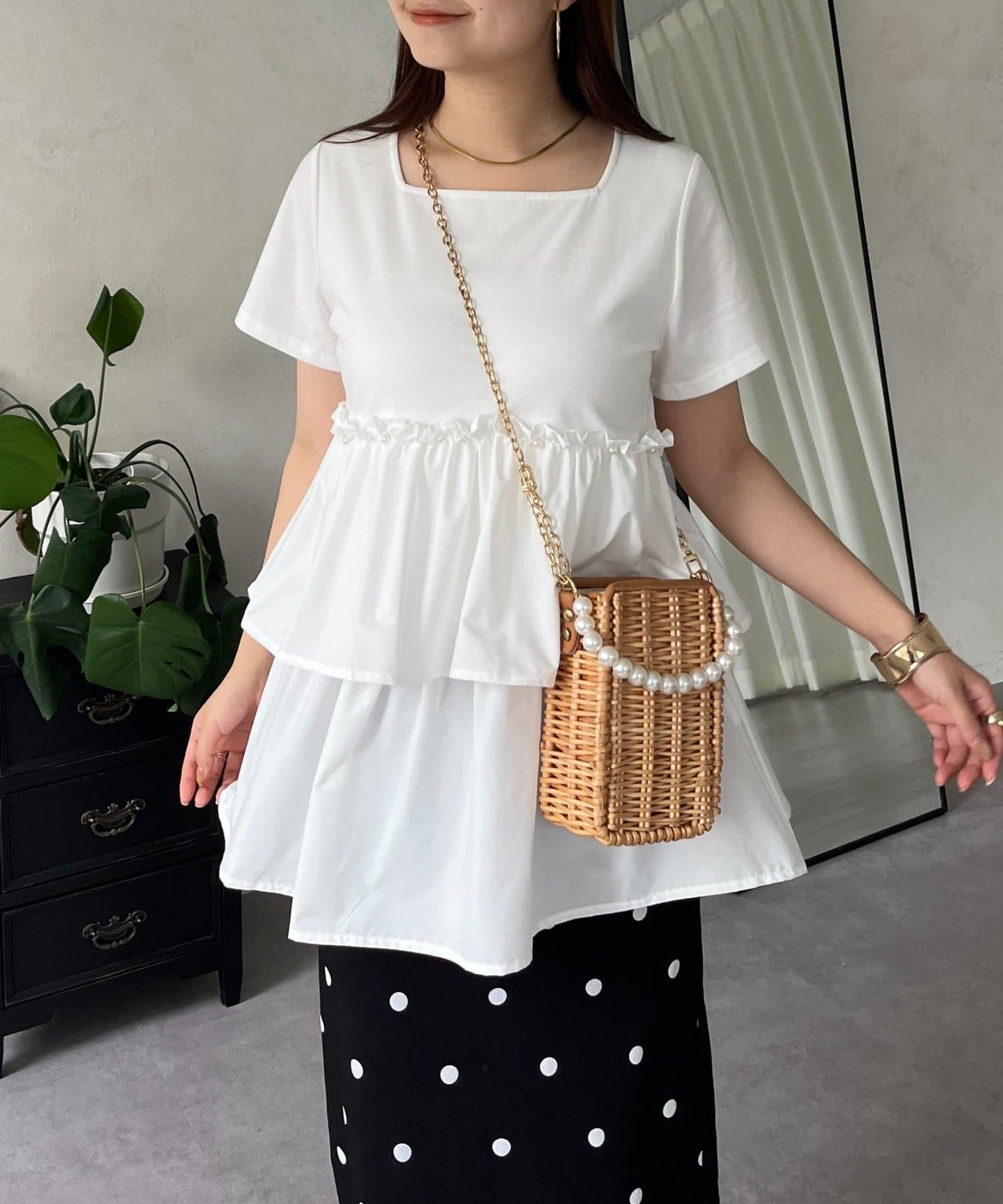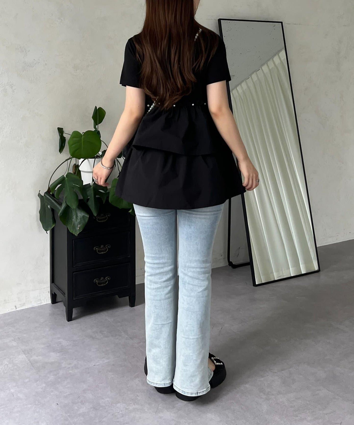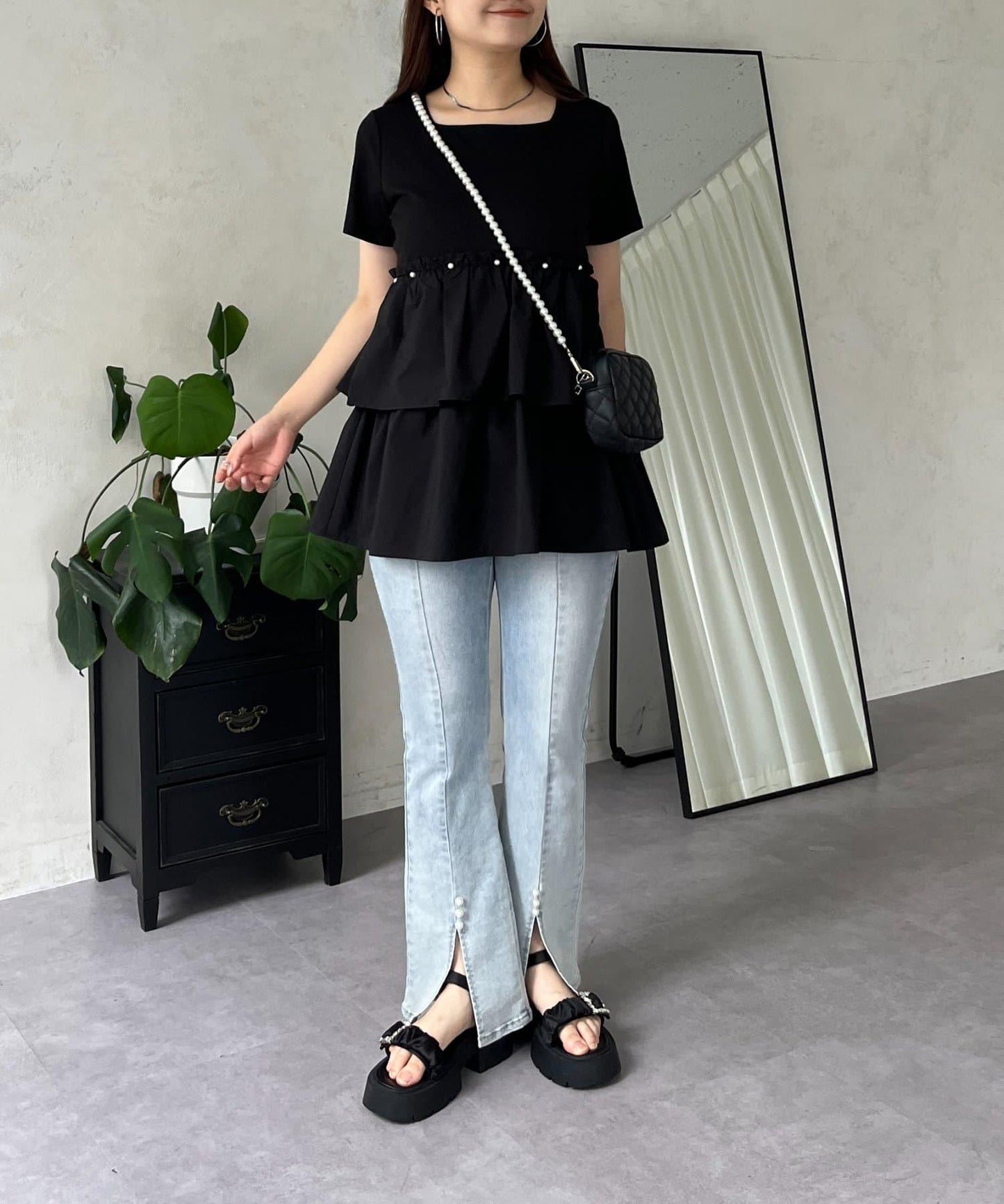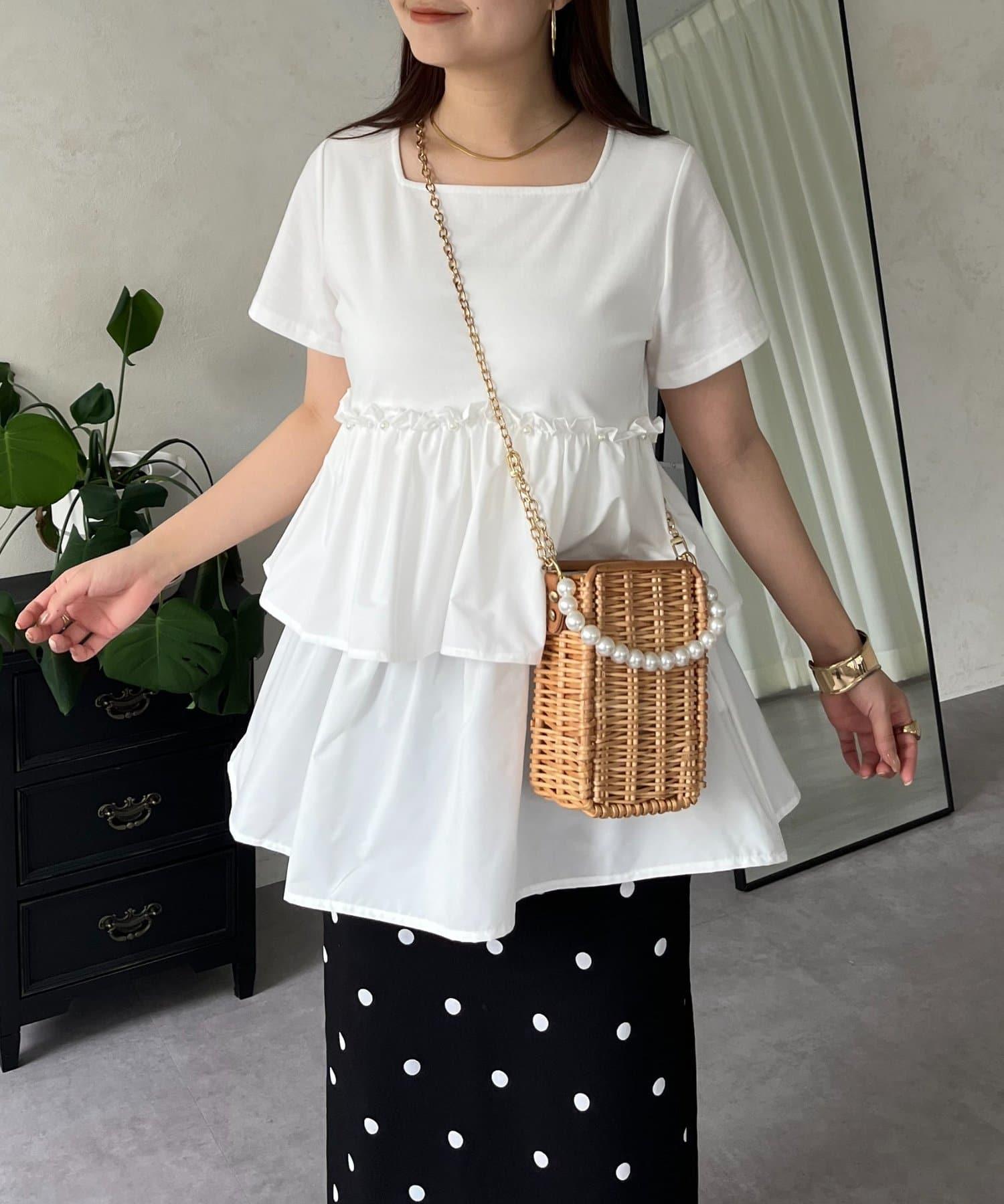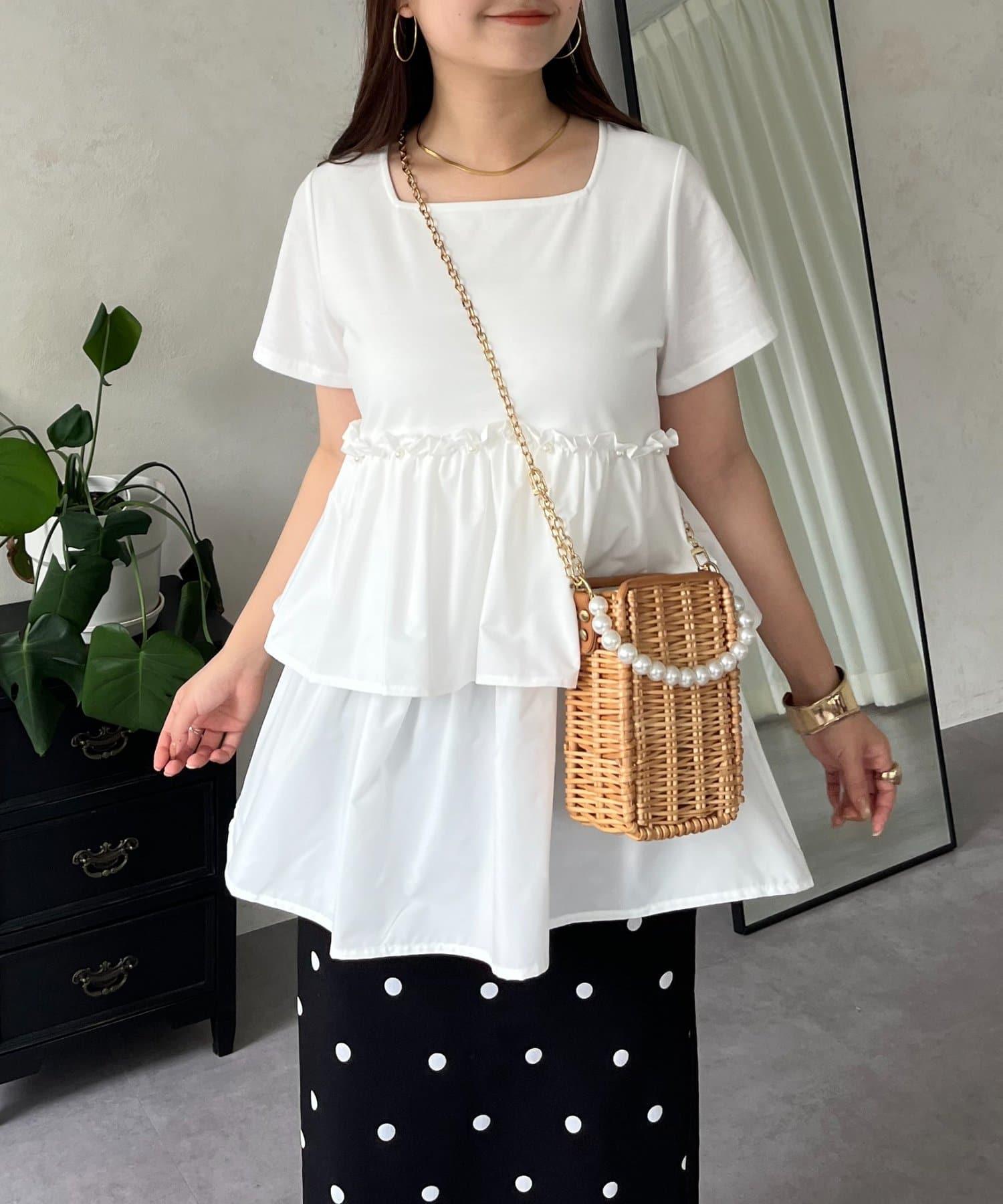 珍珠荷葉邊荷葉邊T恤