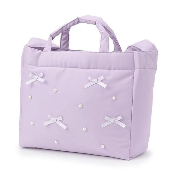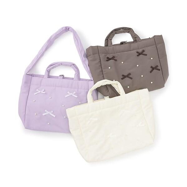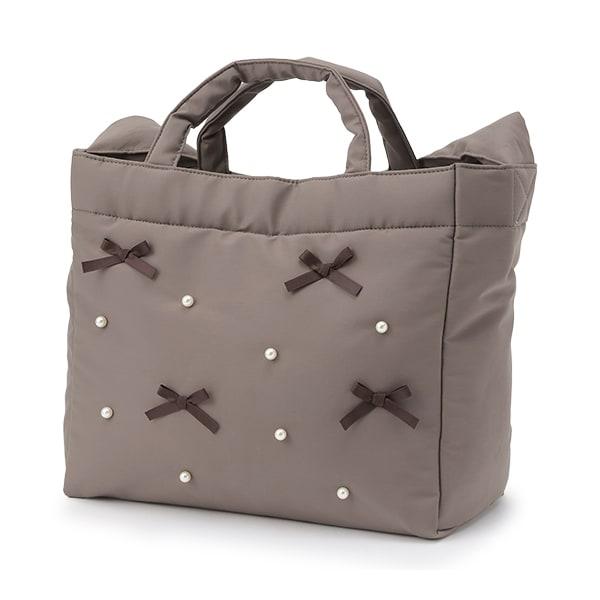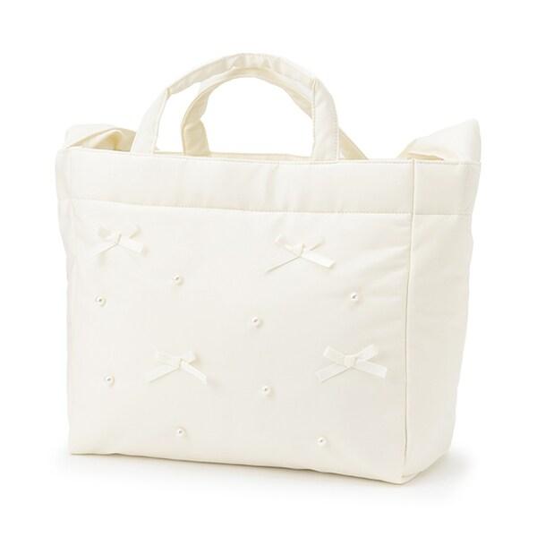 母親手提包配有絲帶和仿珍珠,盡顯優雅。