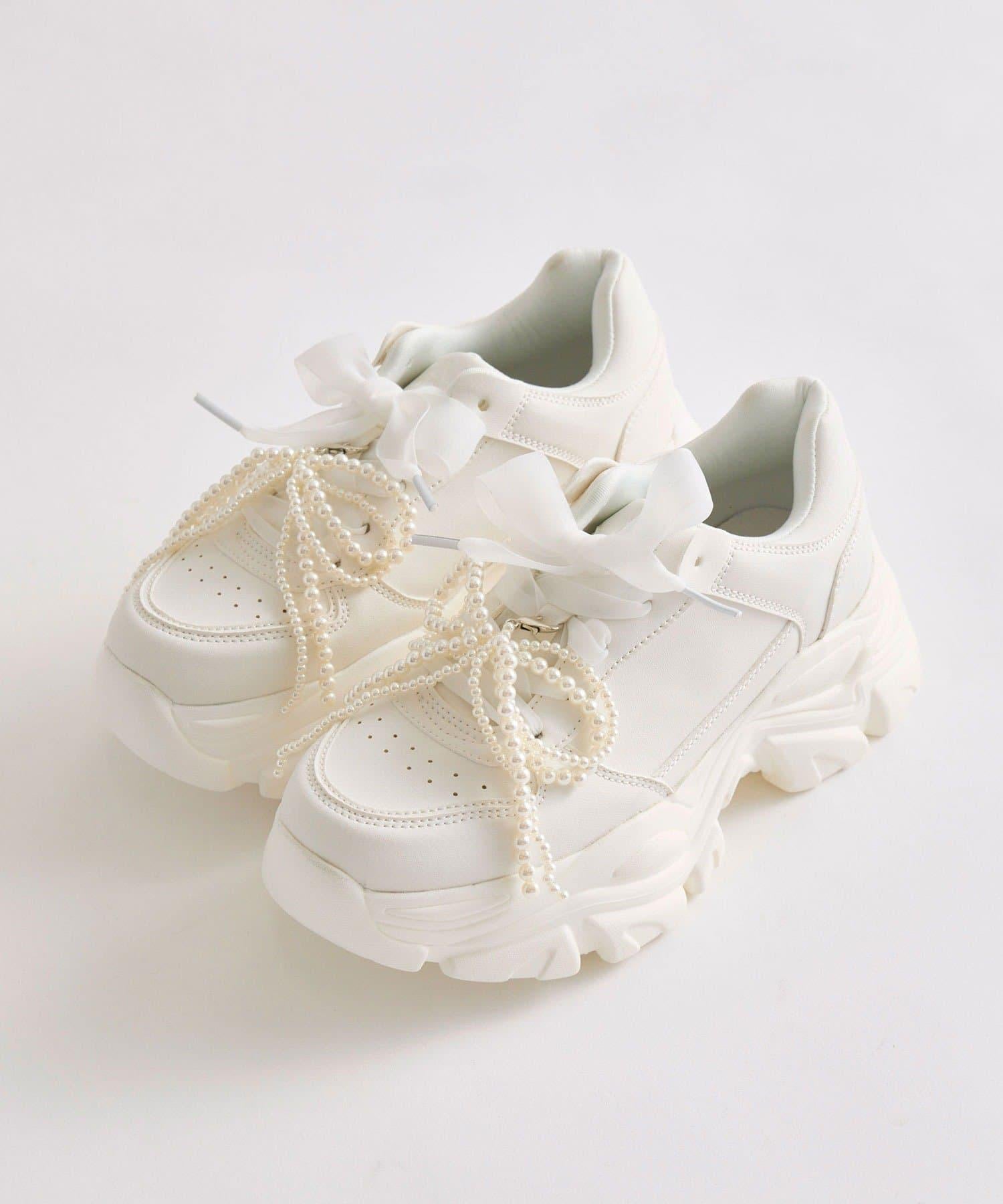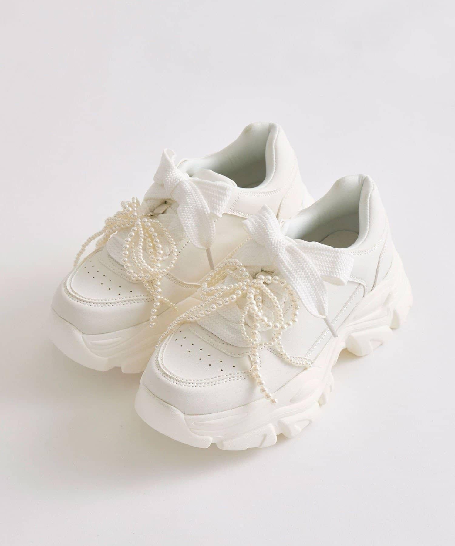 珍珠蝴蝶結掛飾休閒鞋