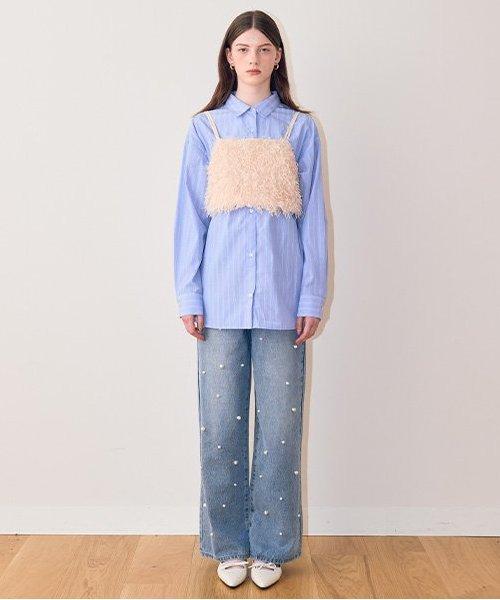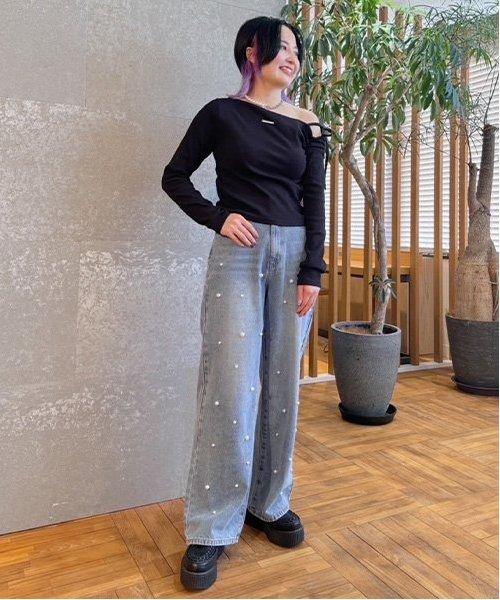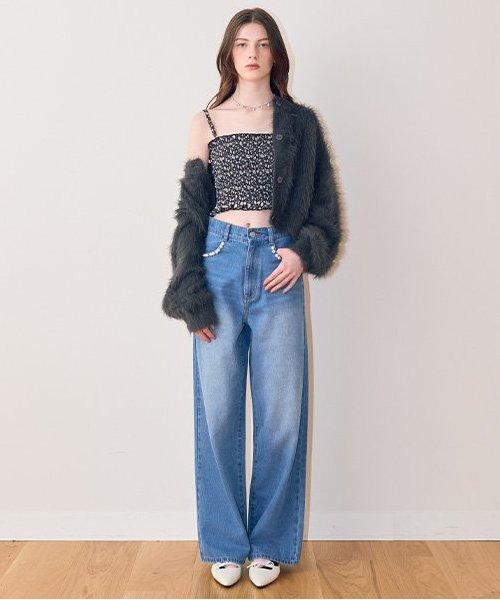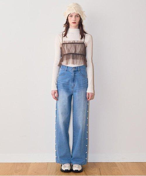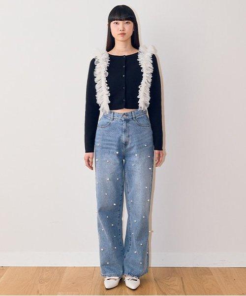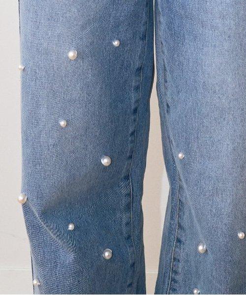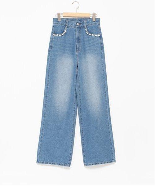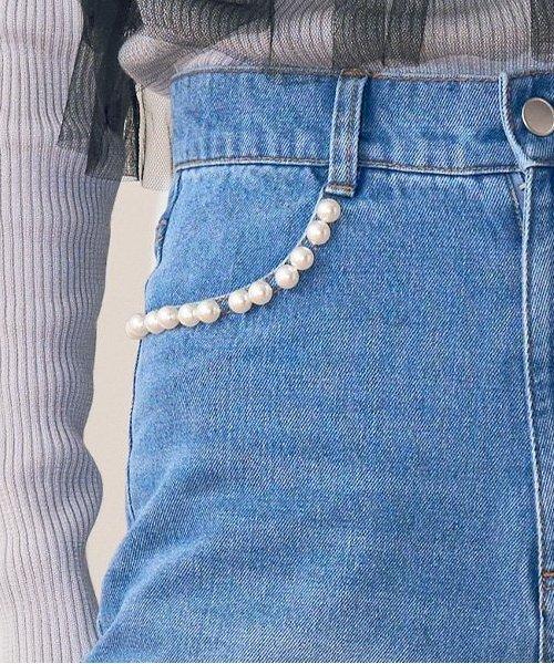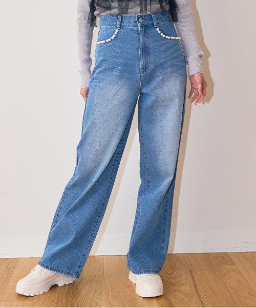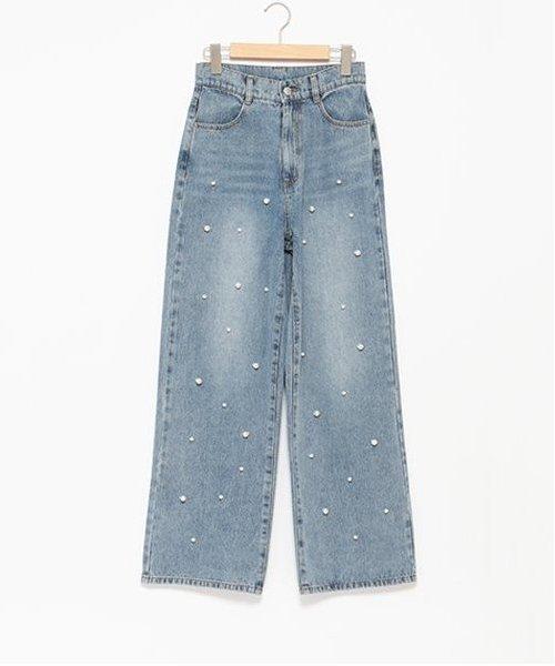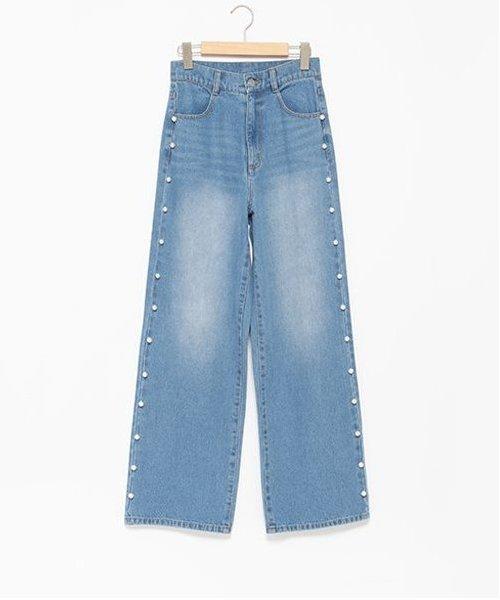 珍珠裝飾牛仔褲【韓國時尚】