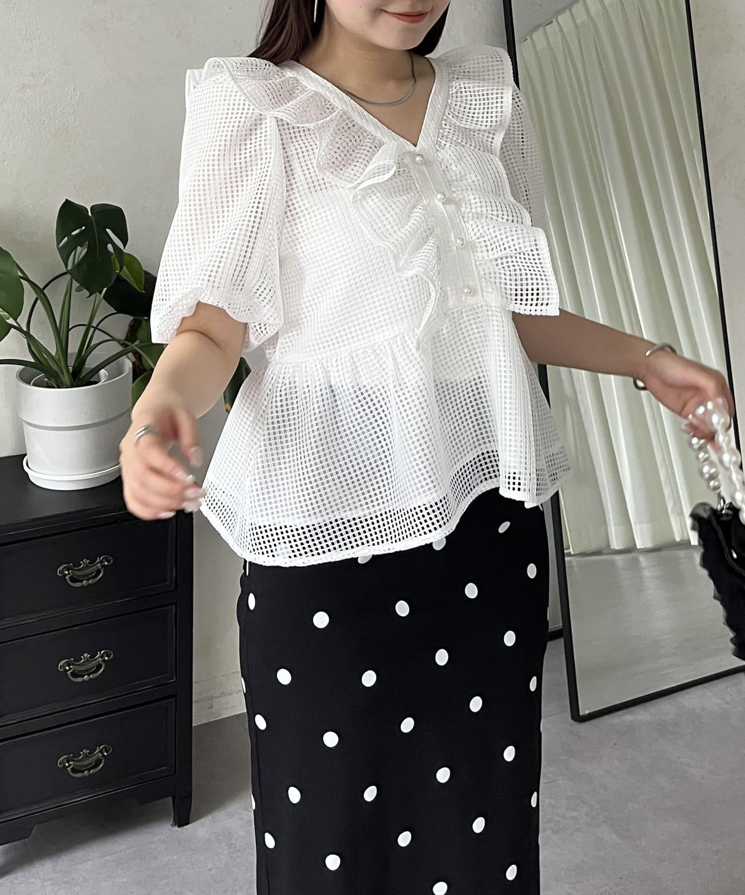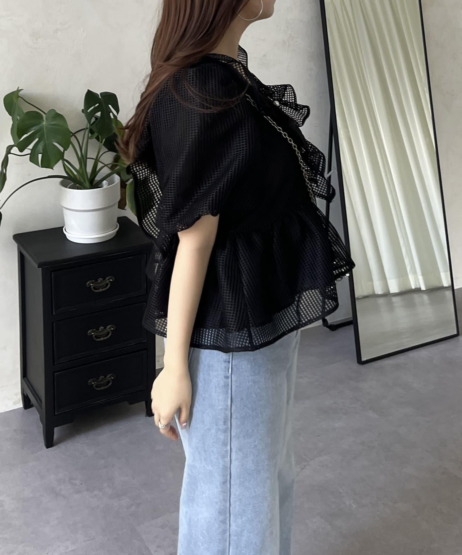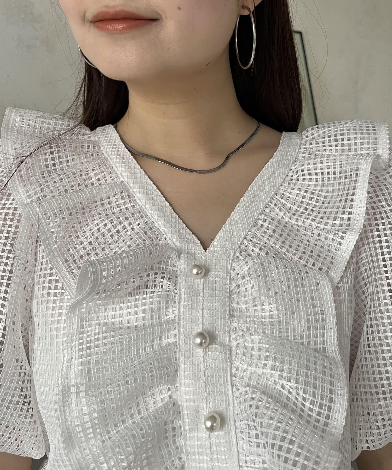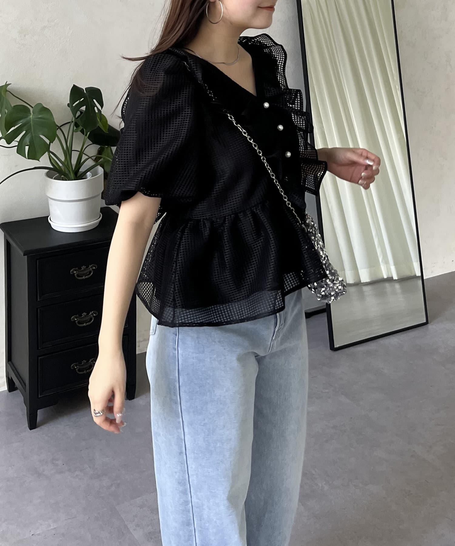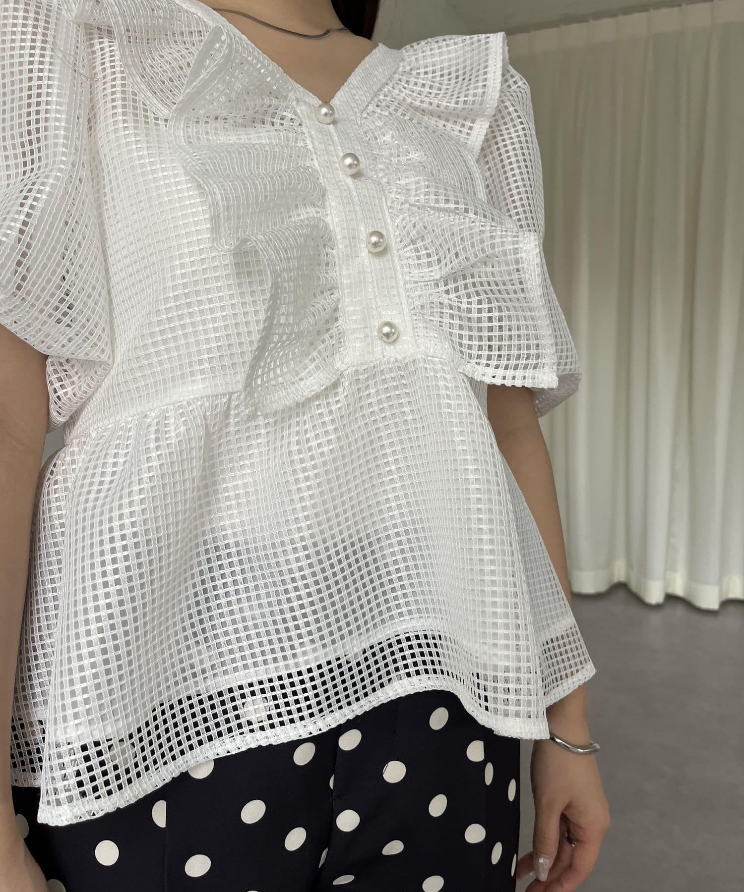 珍珠鈕釦網眷邊荷葉邊娃娃衫