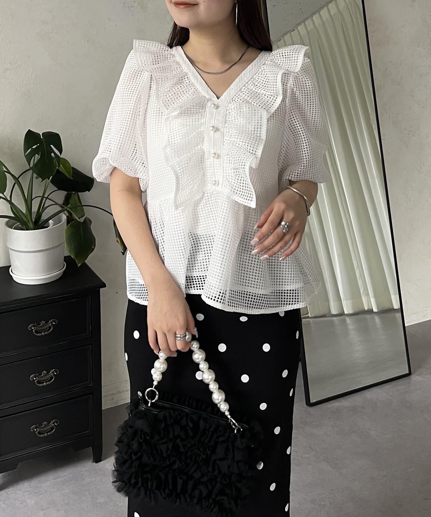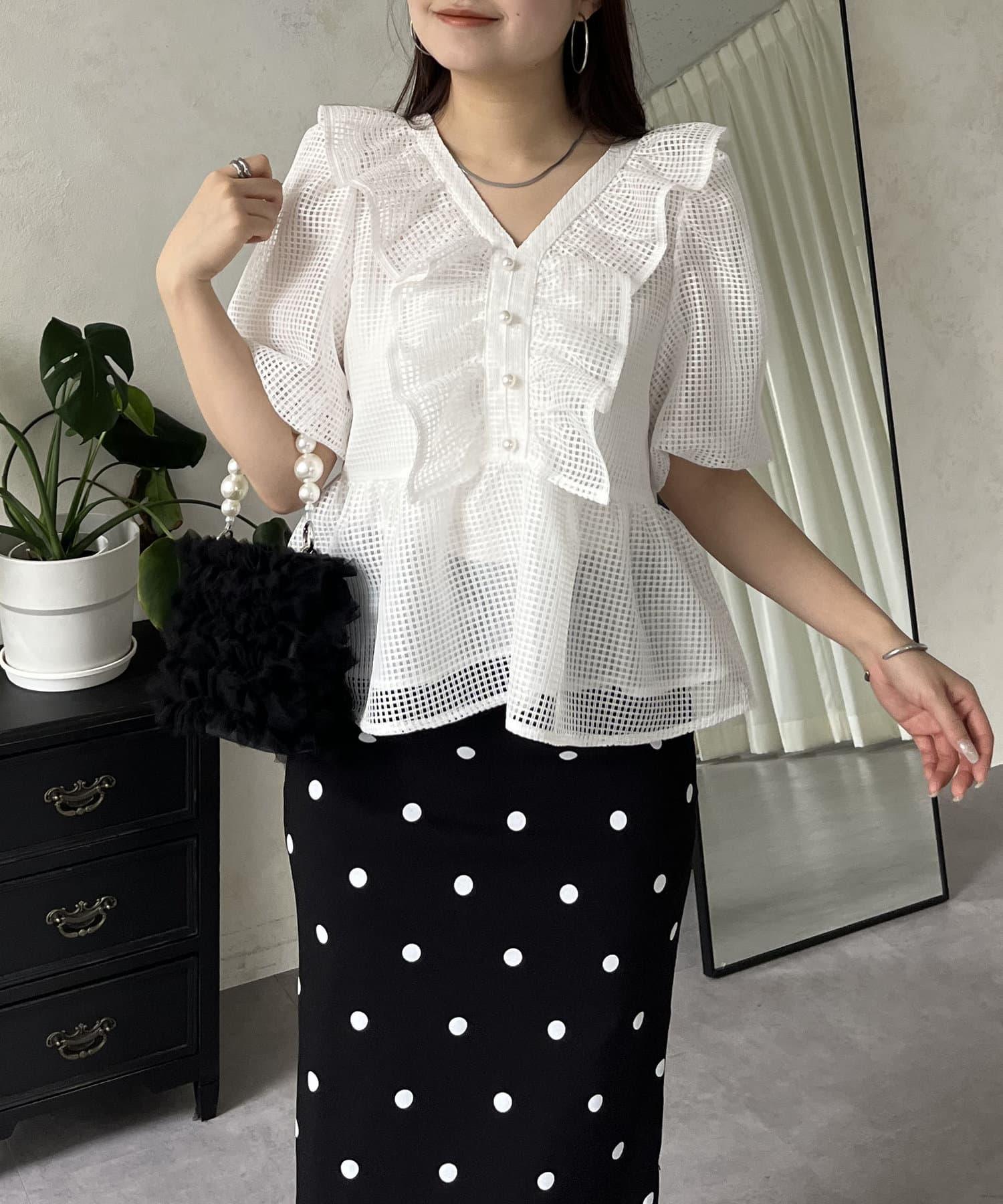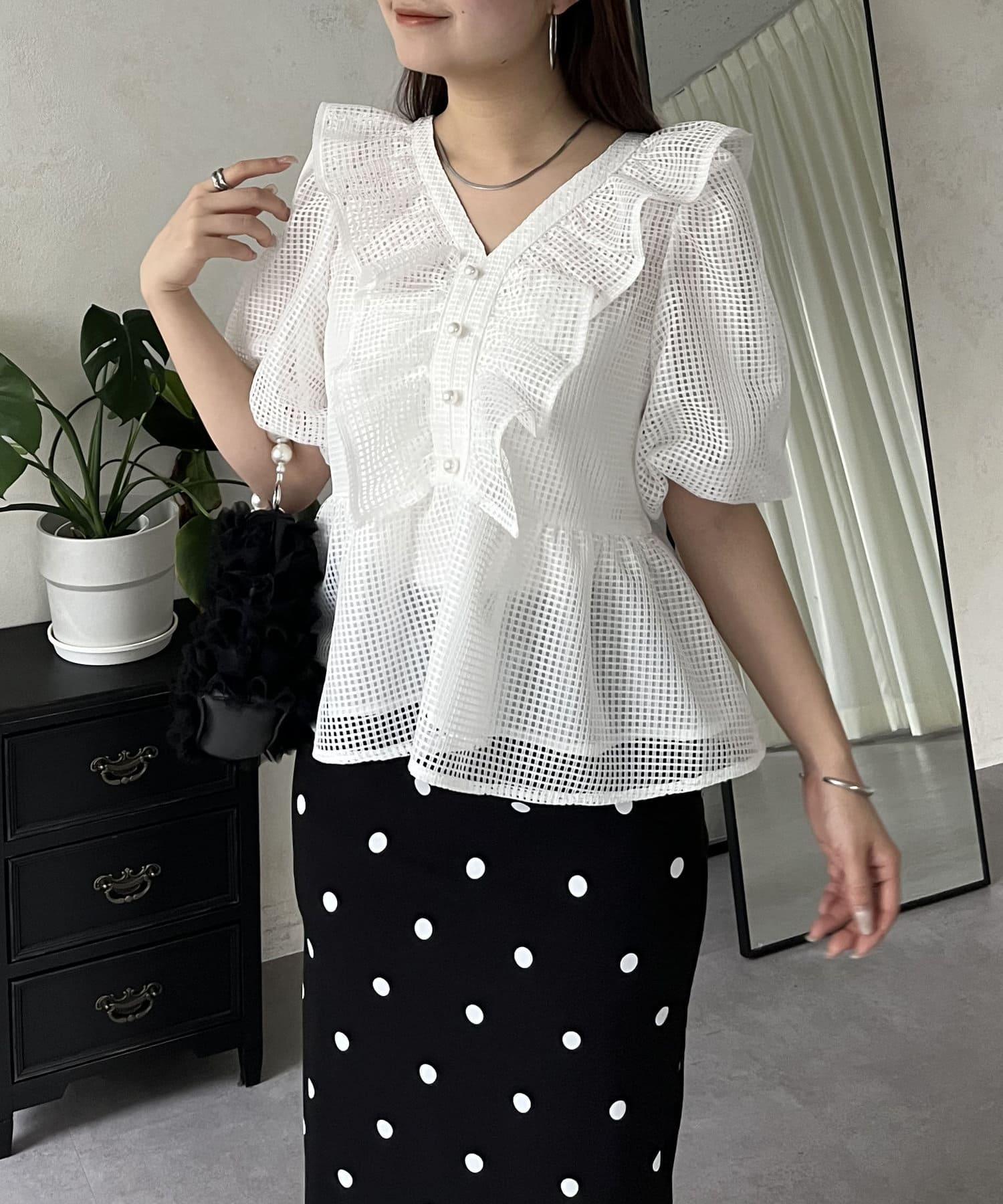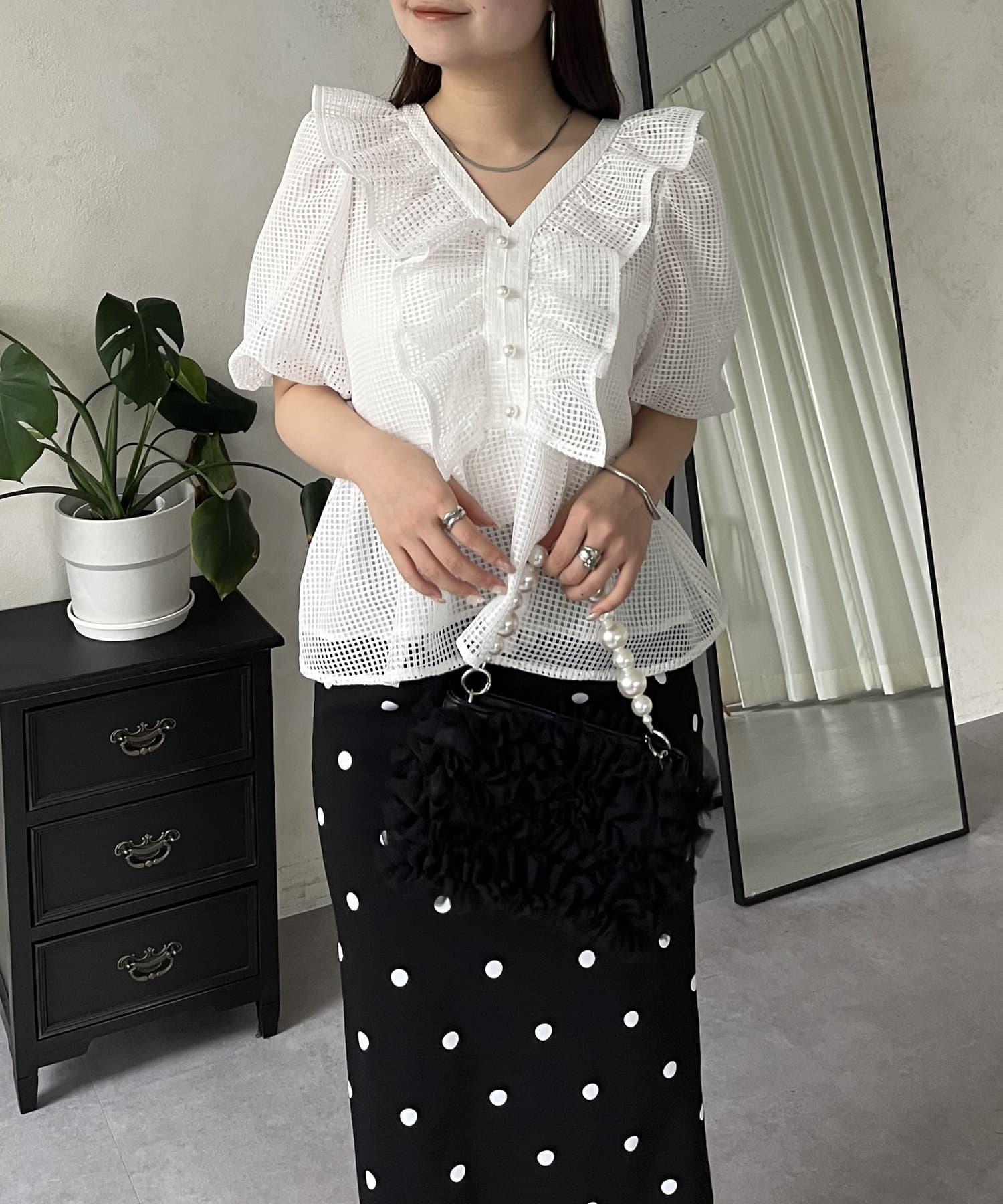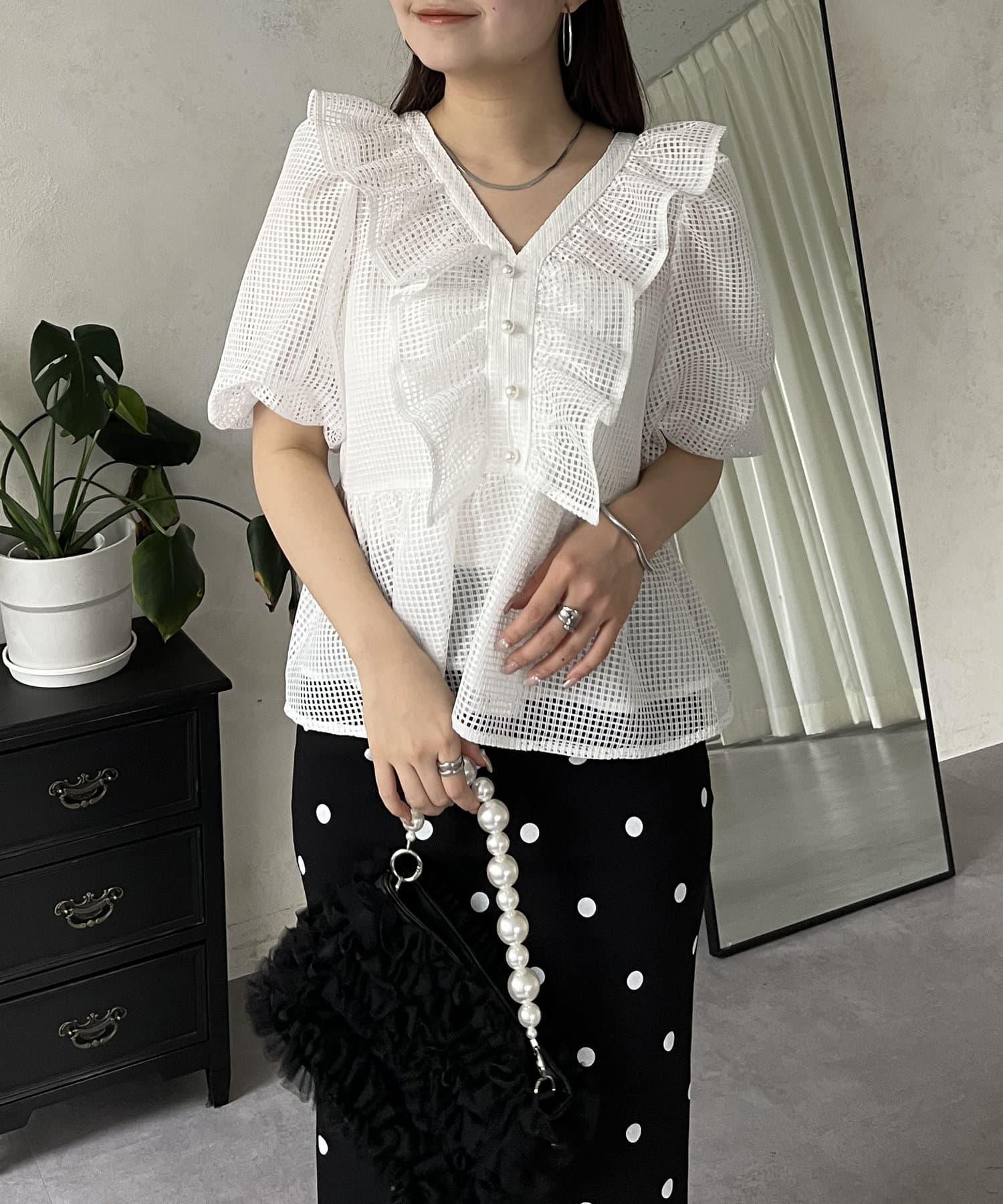 珍珠鈕釦網眷邊荷葉邊娃娃衫