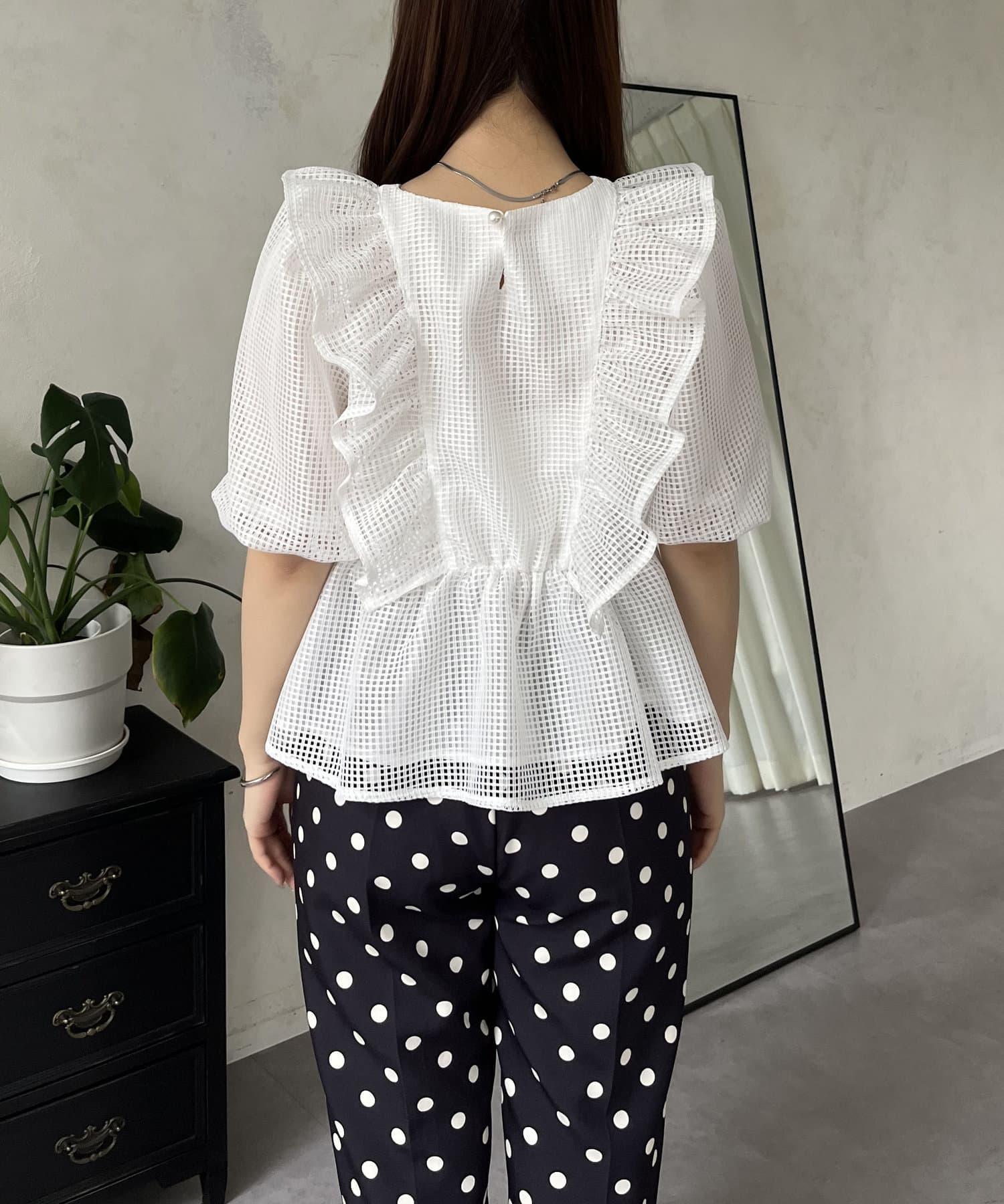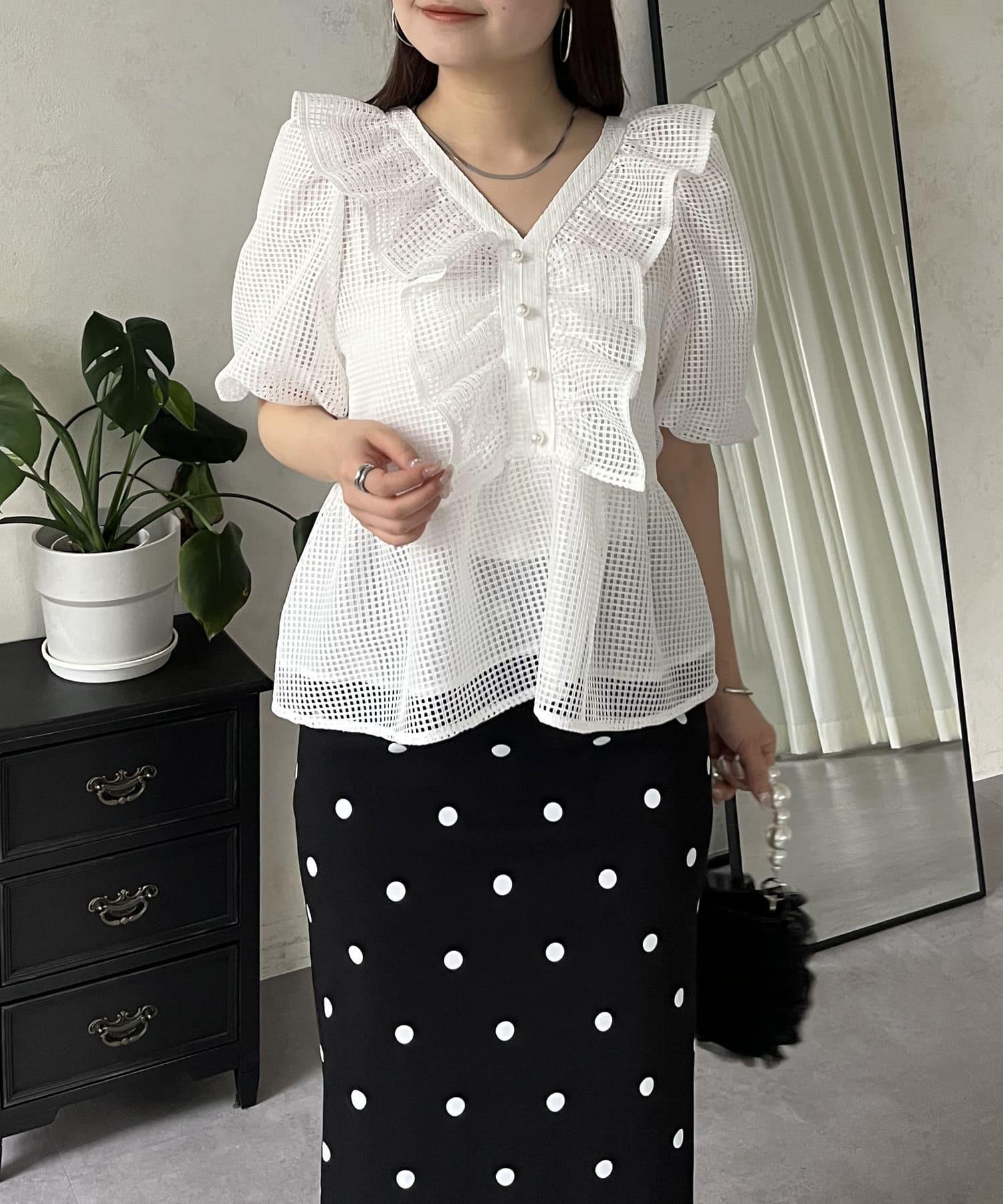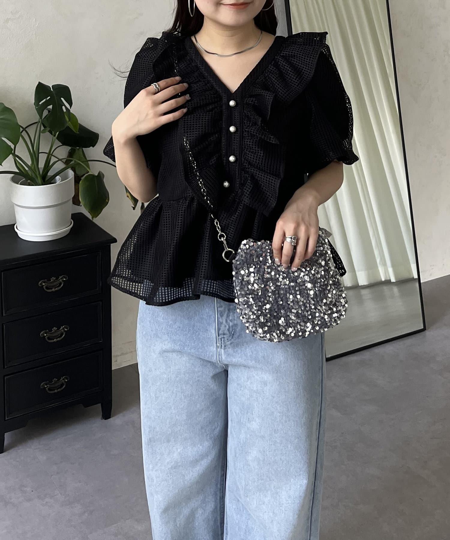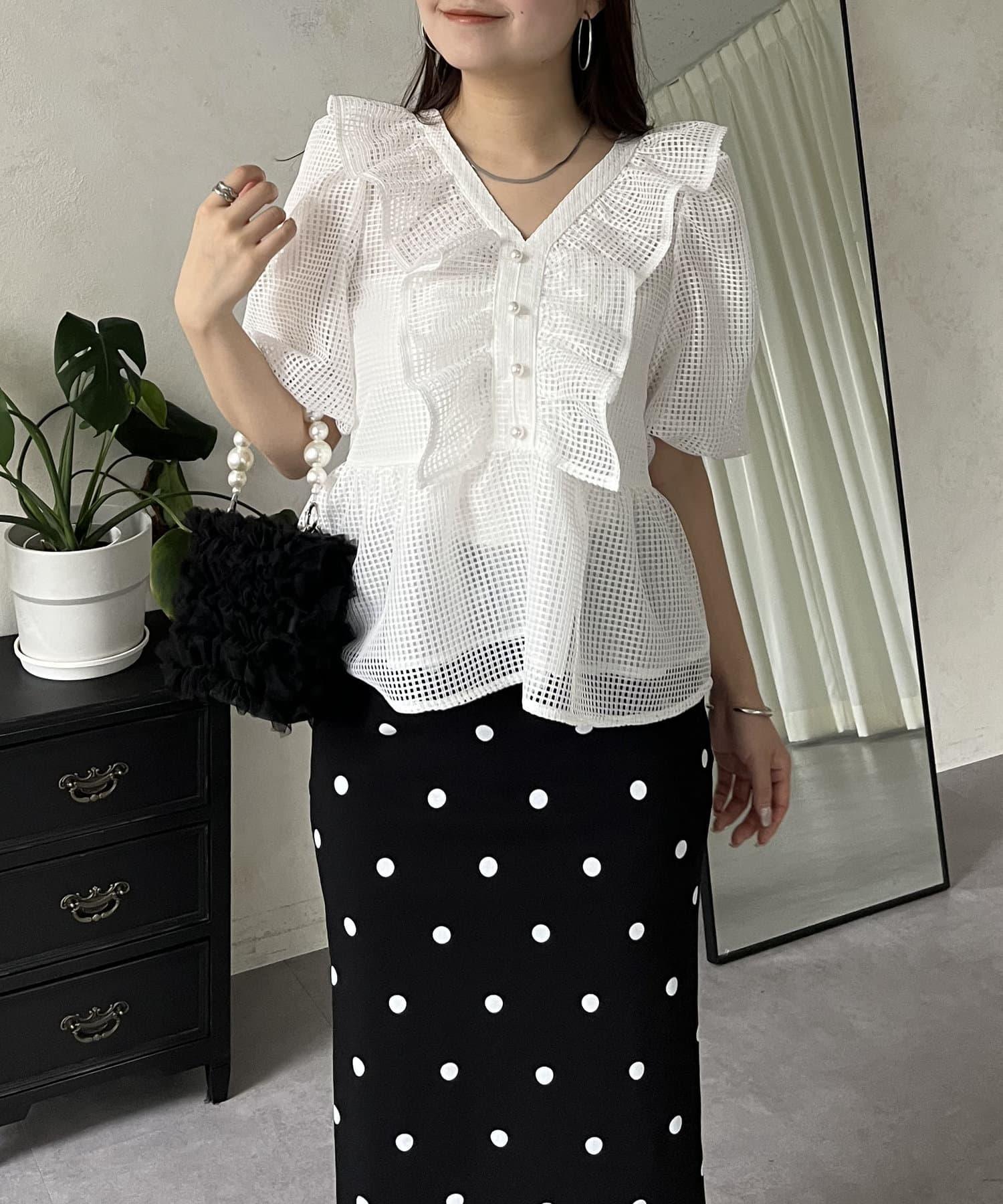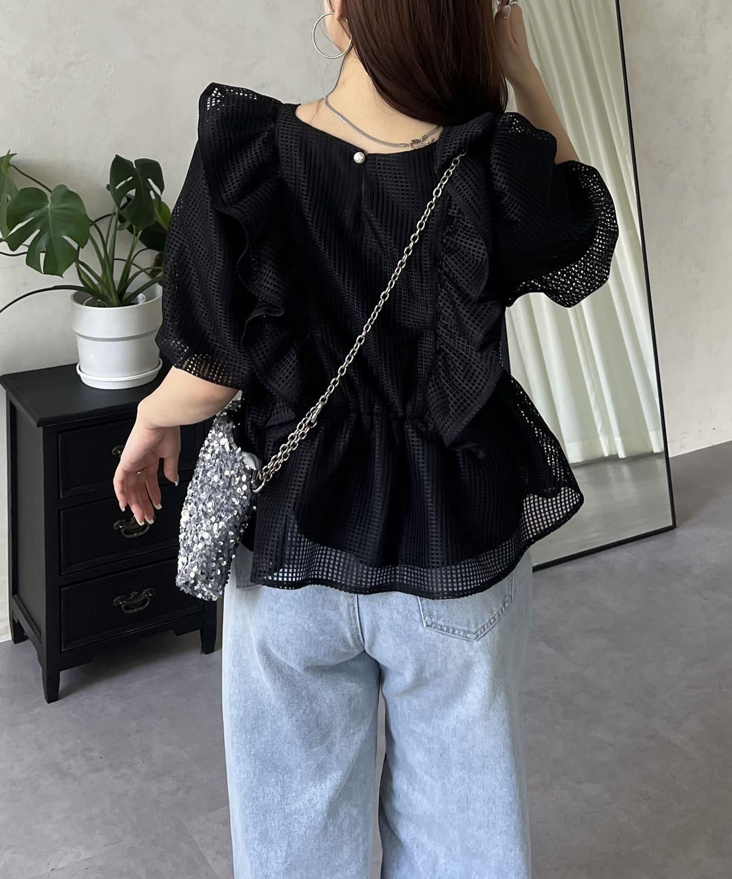 珍珠鈕釦網眷邊荷葉邊娃娃衫