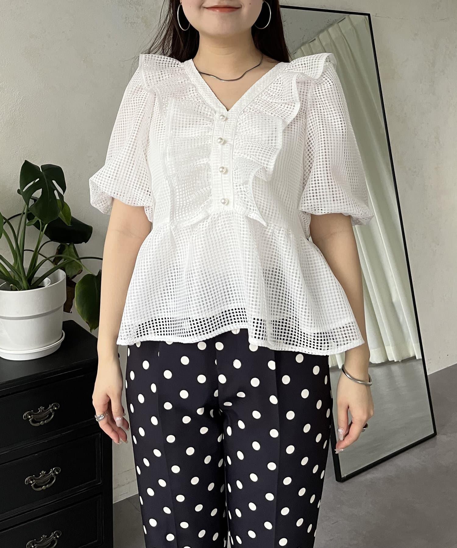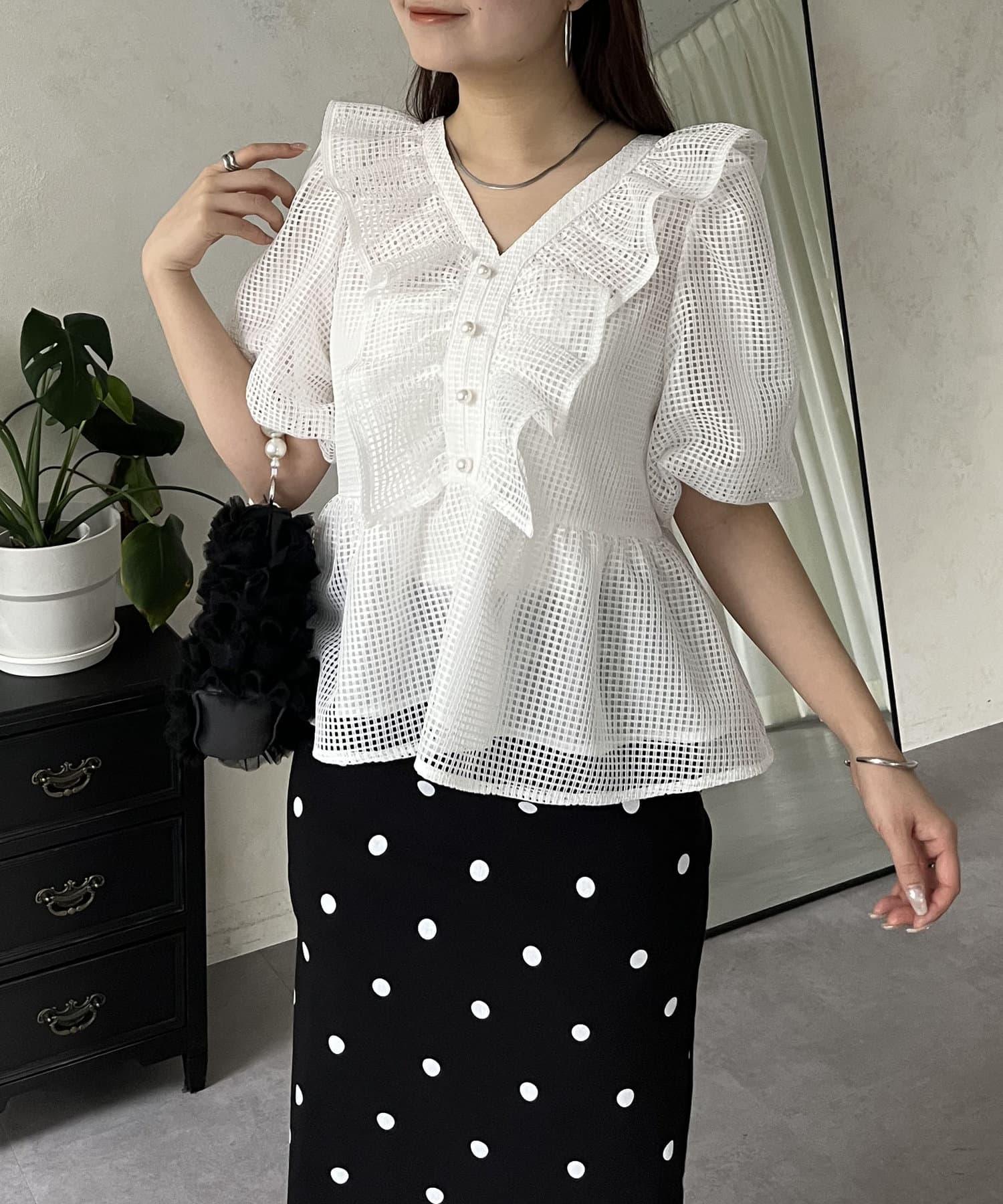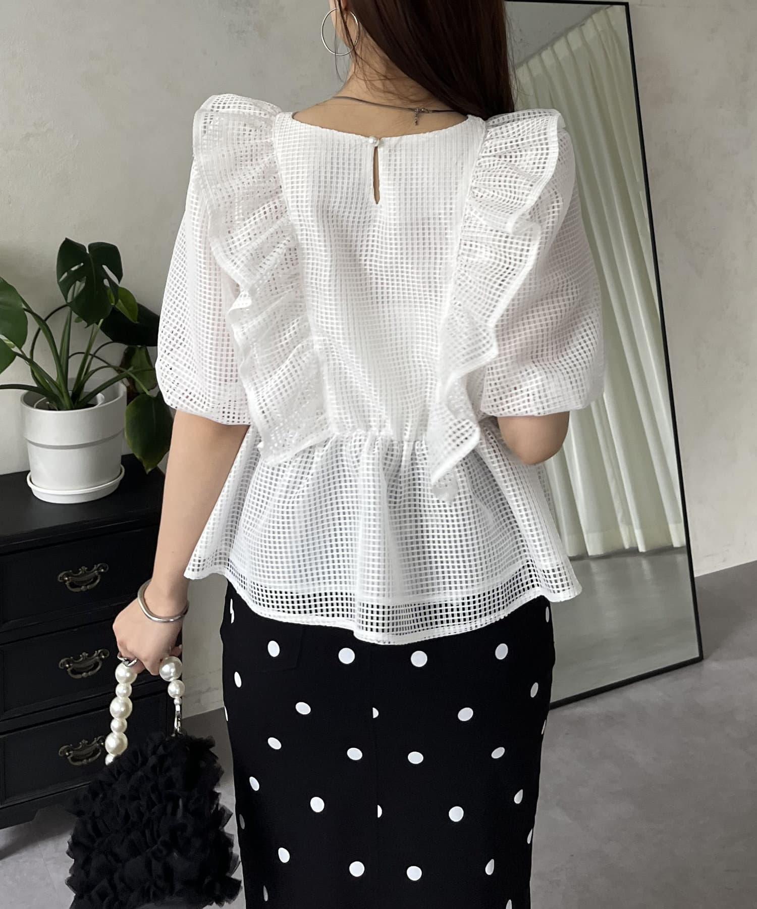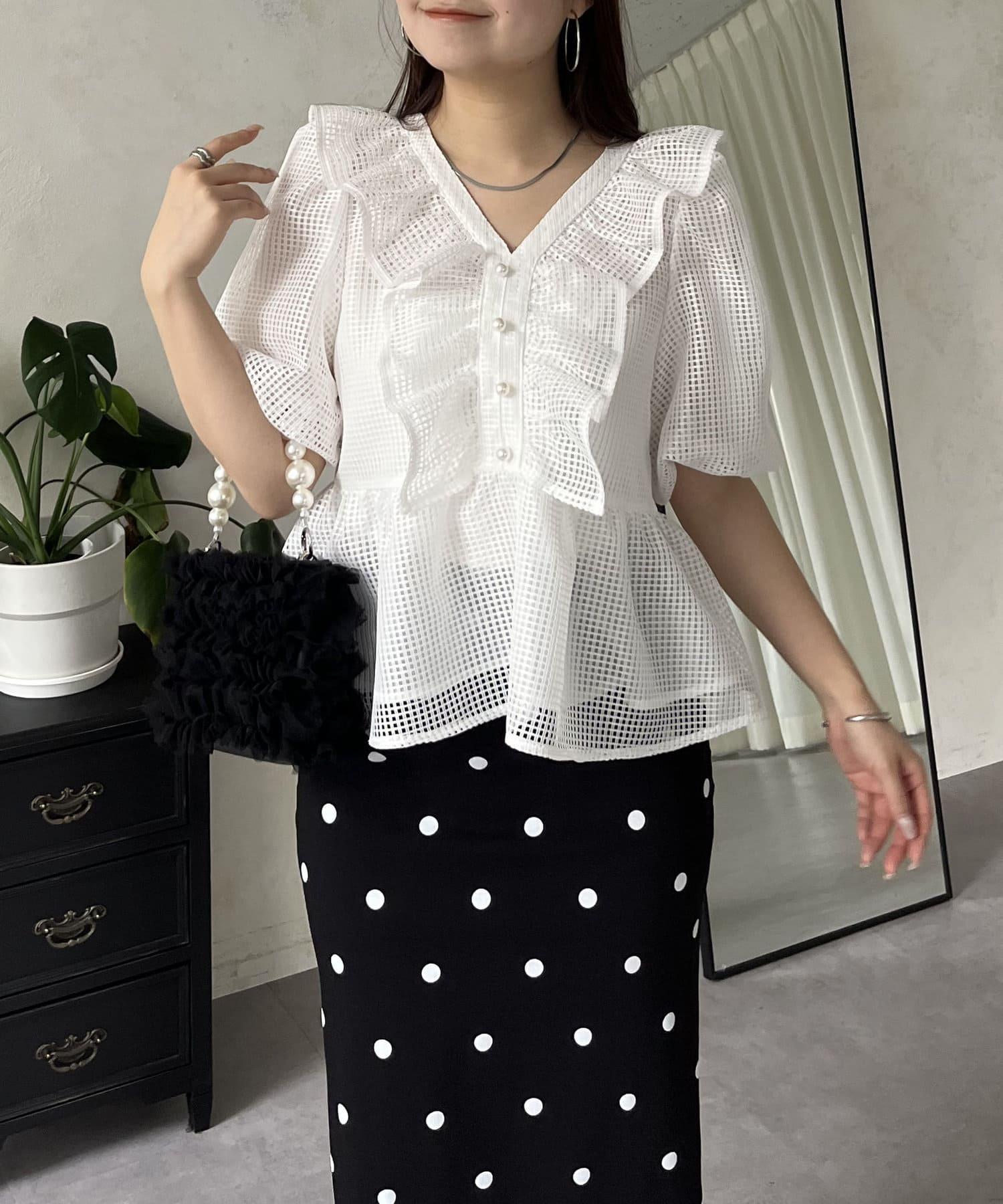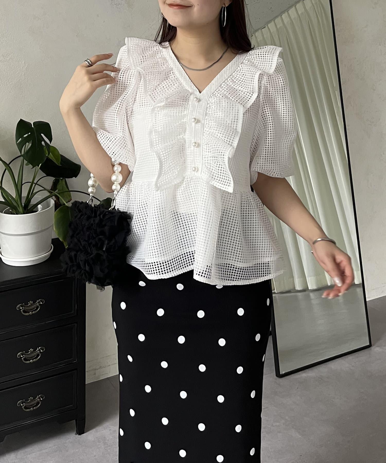 珍珠鈕釦網眷邊荷葉邊娃娃衫