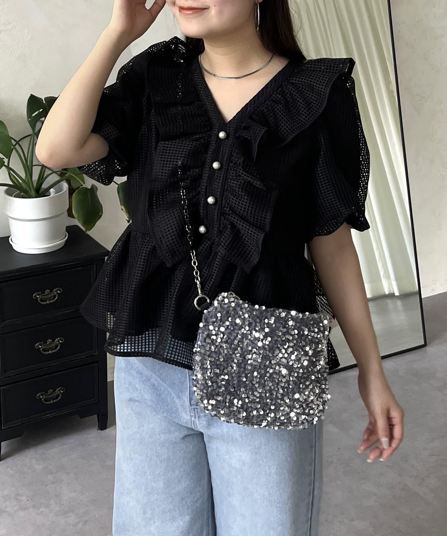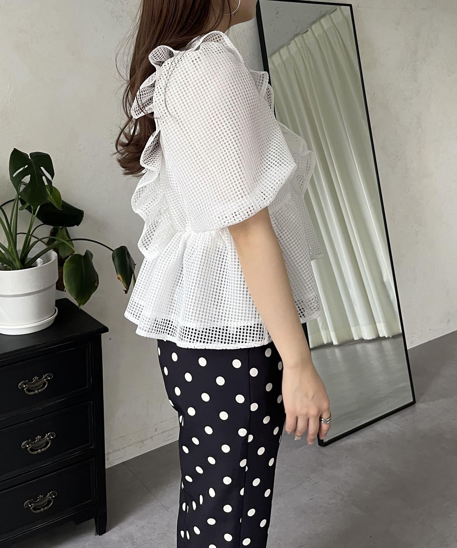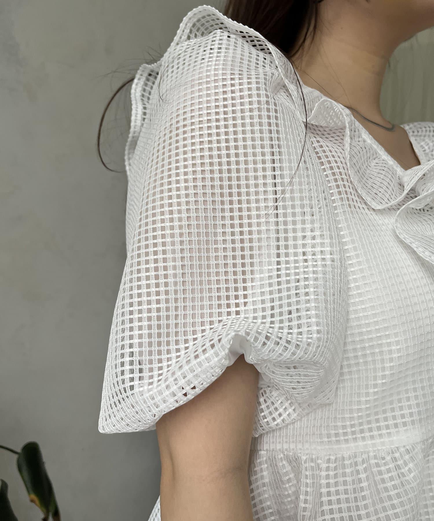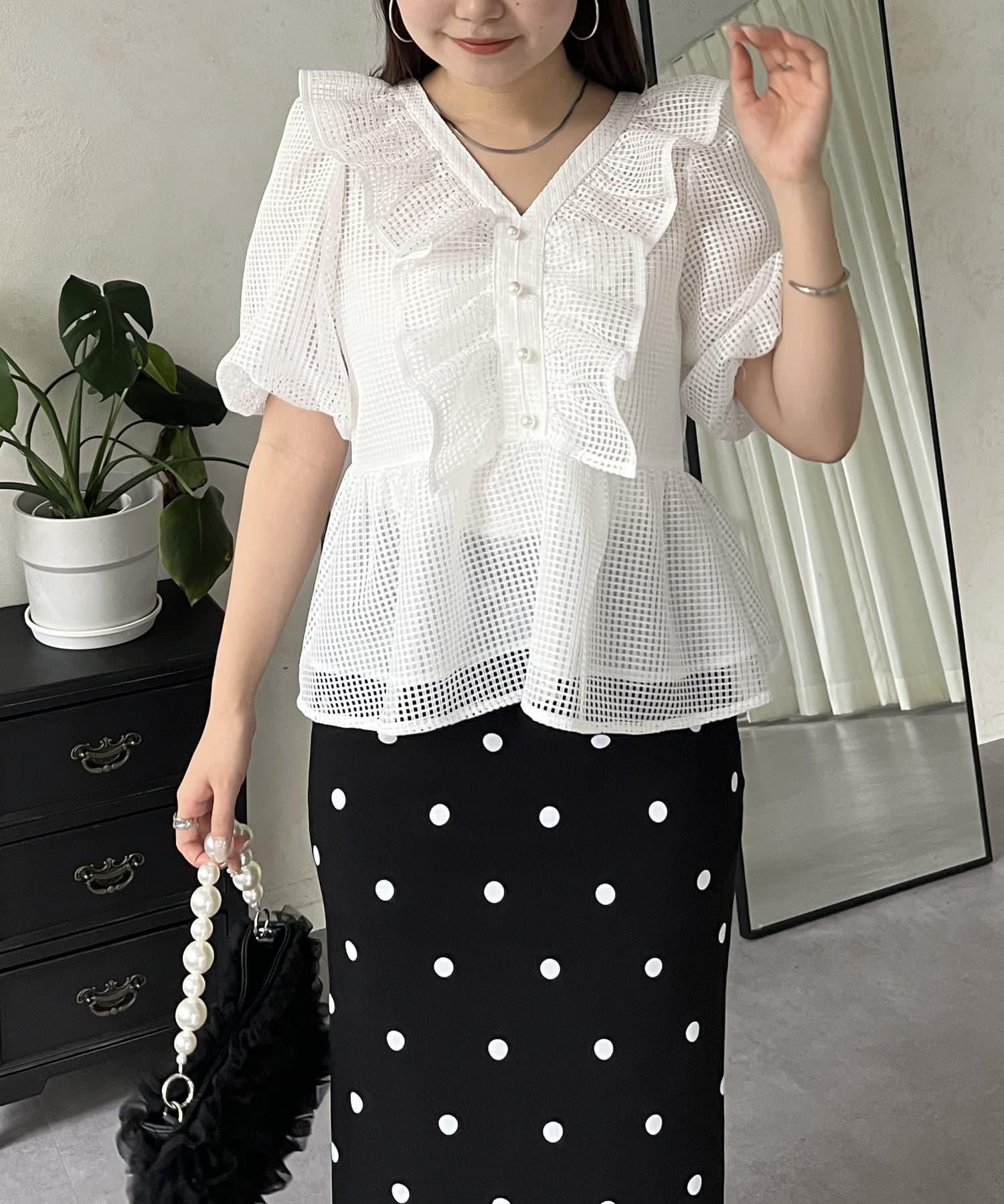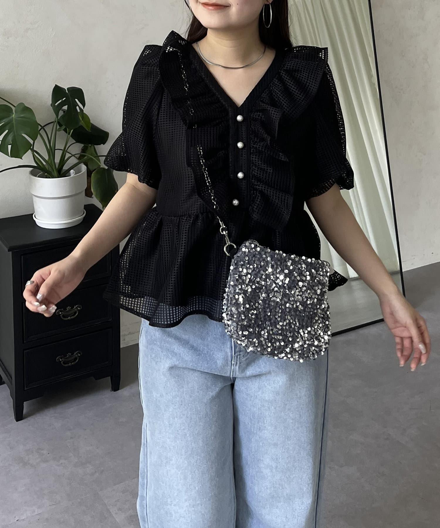 珍珠鈕釦網眷邊荷葉邊娃娃衫