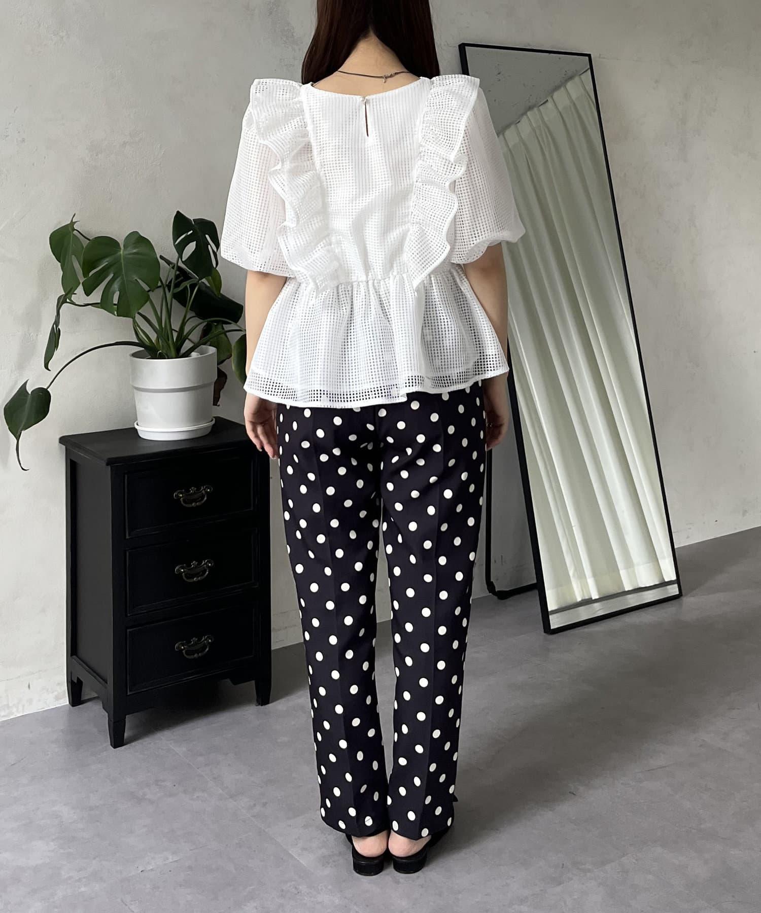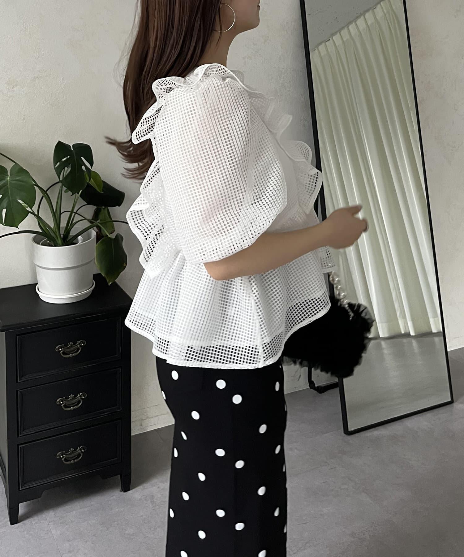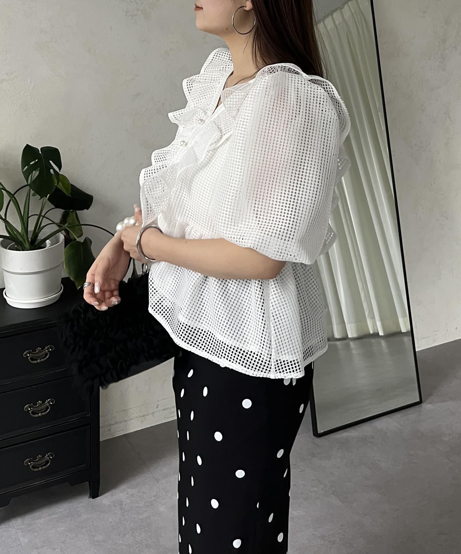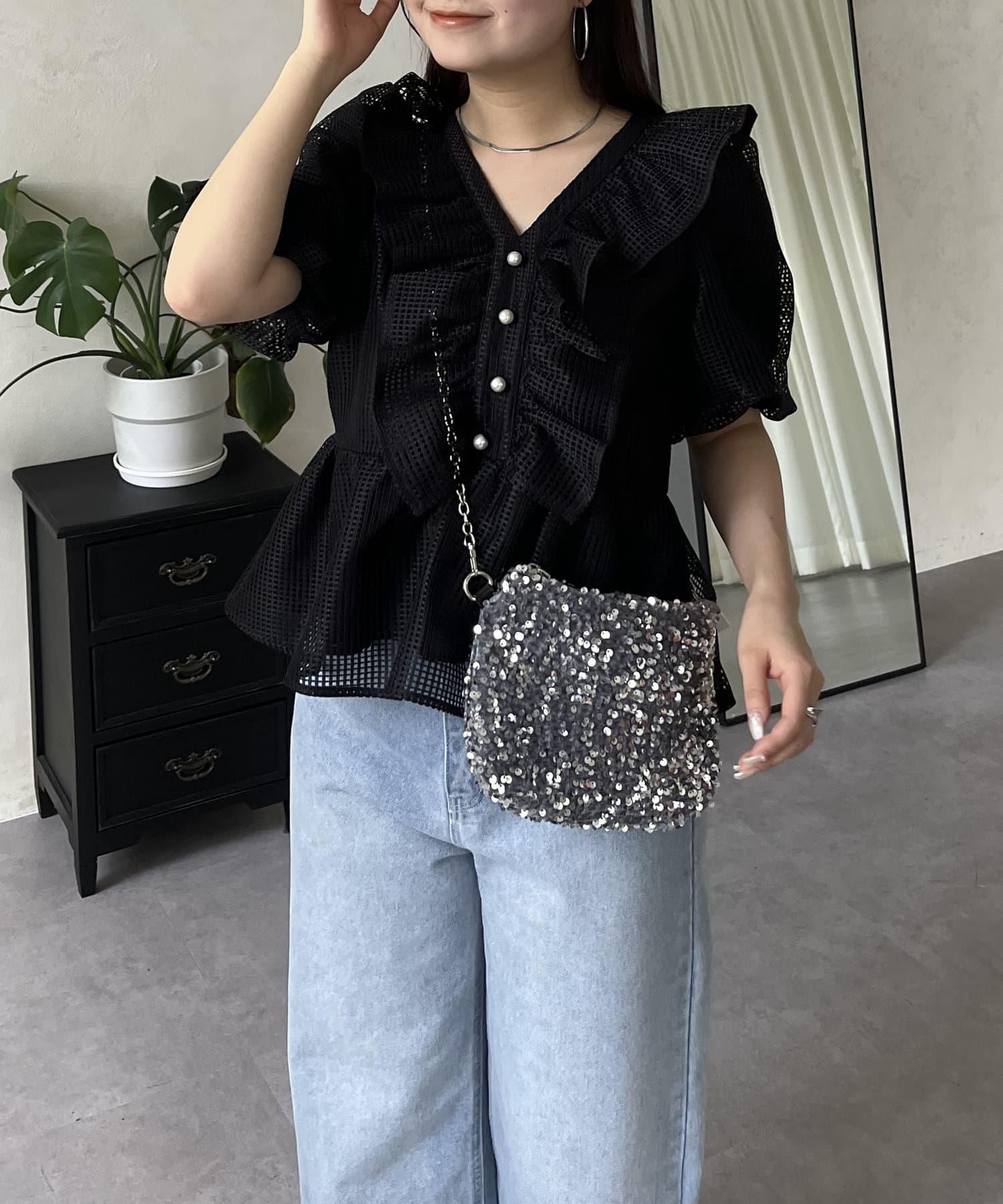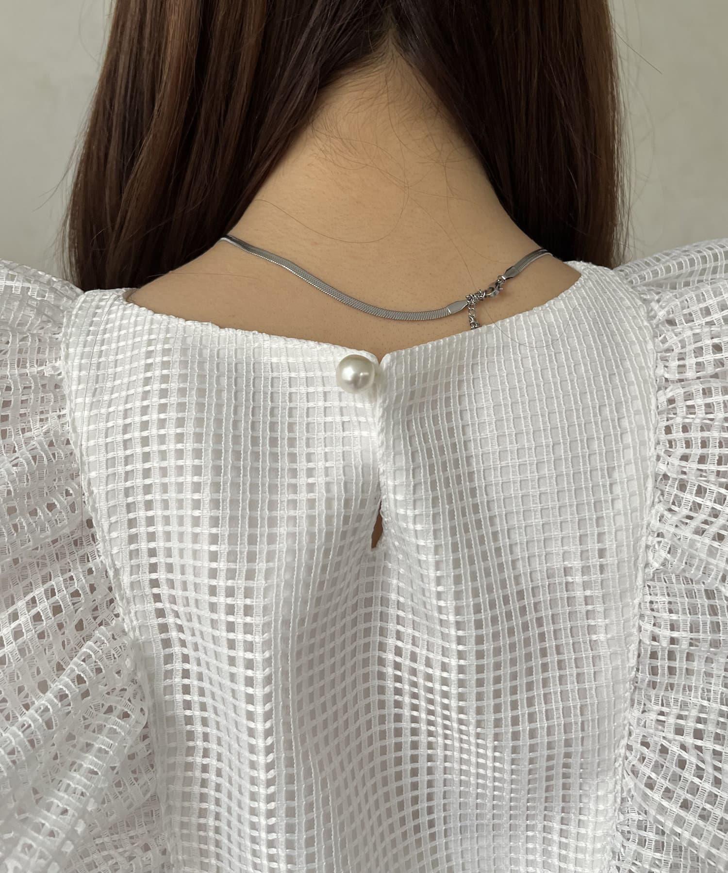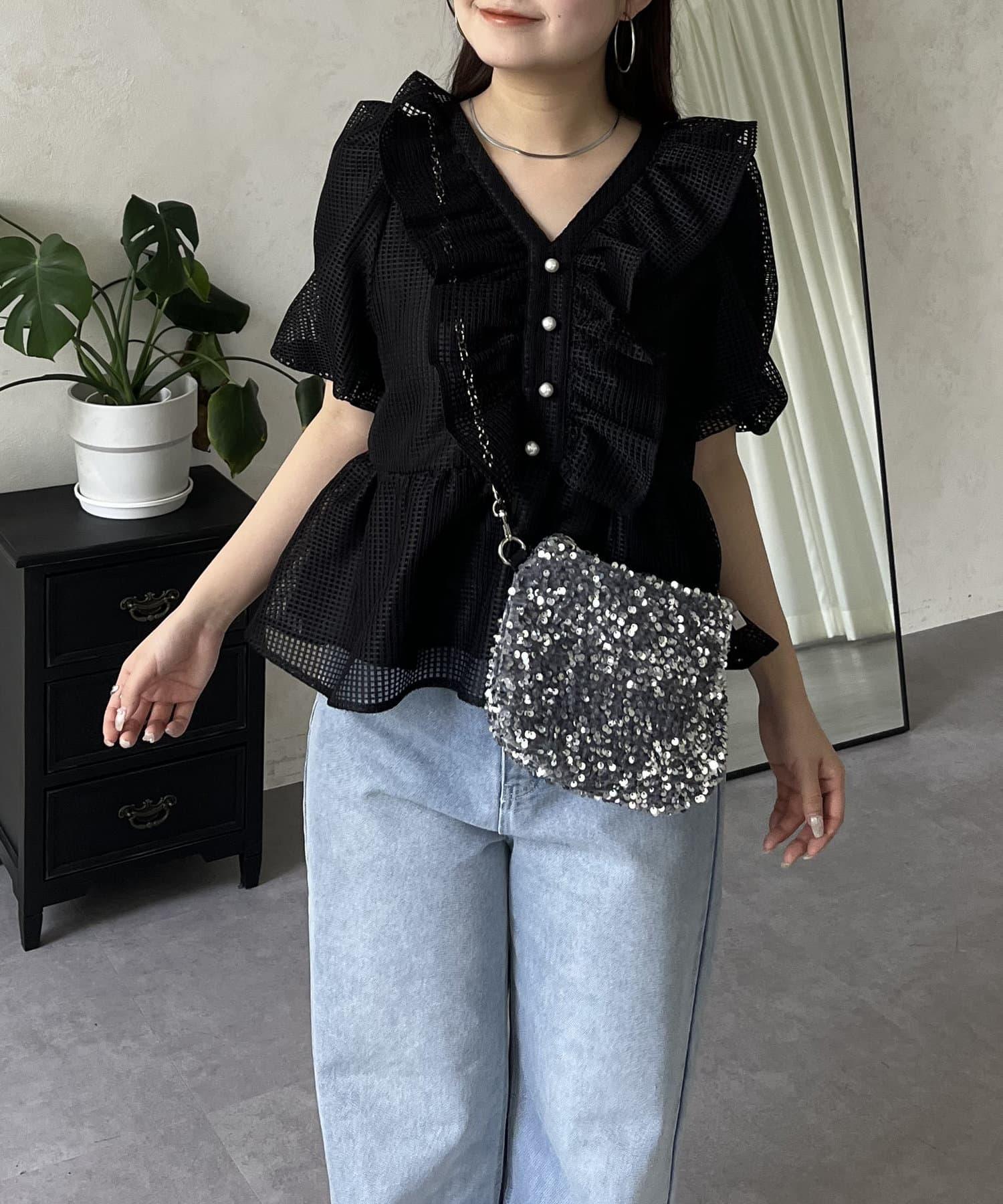 珍珠鈕釦網眷邊荷葉邊娃娃衫