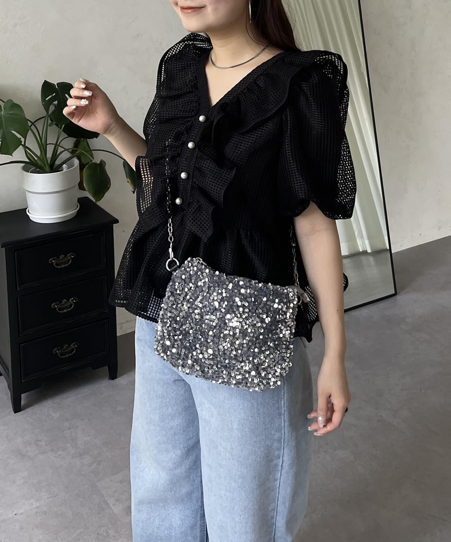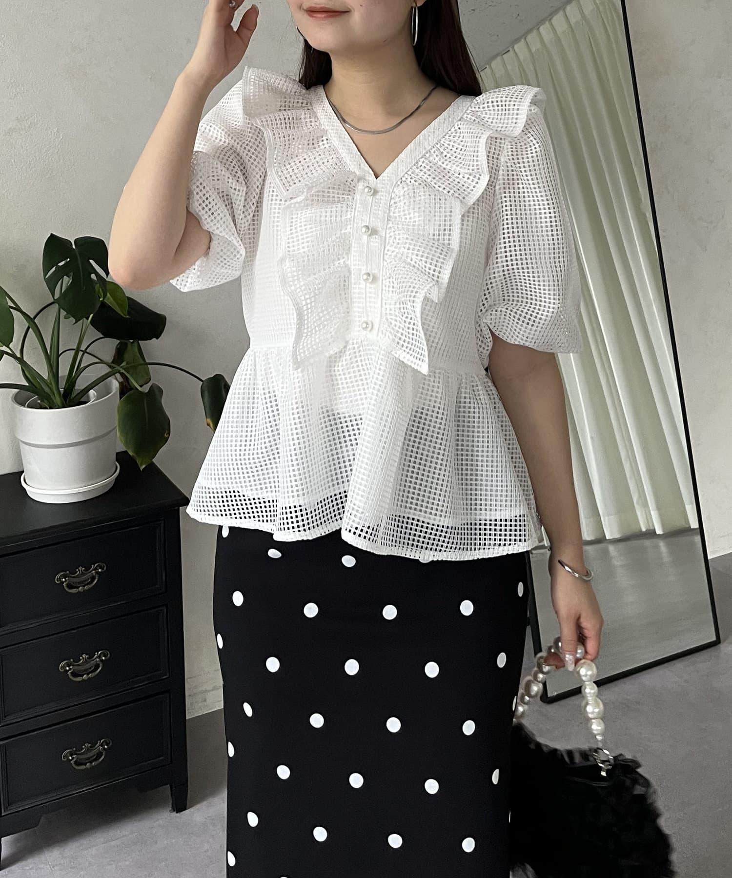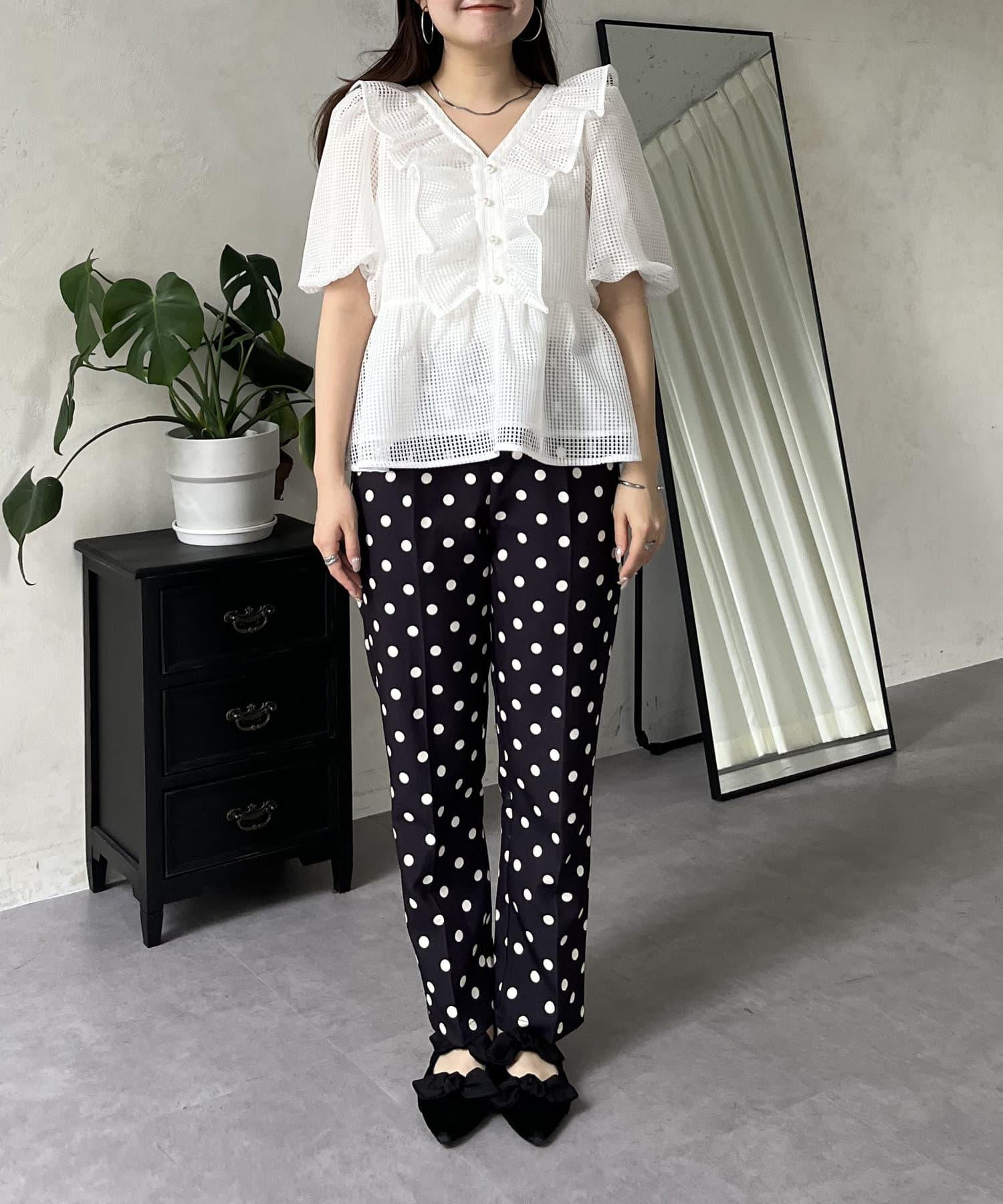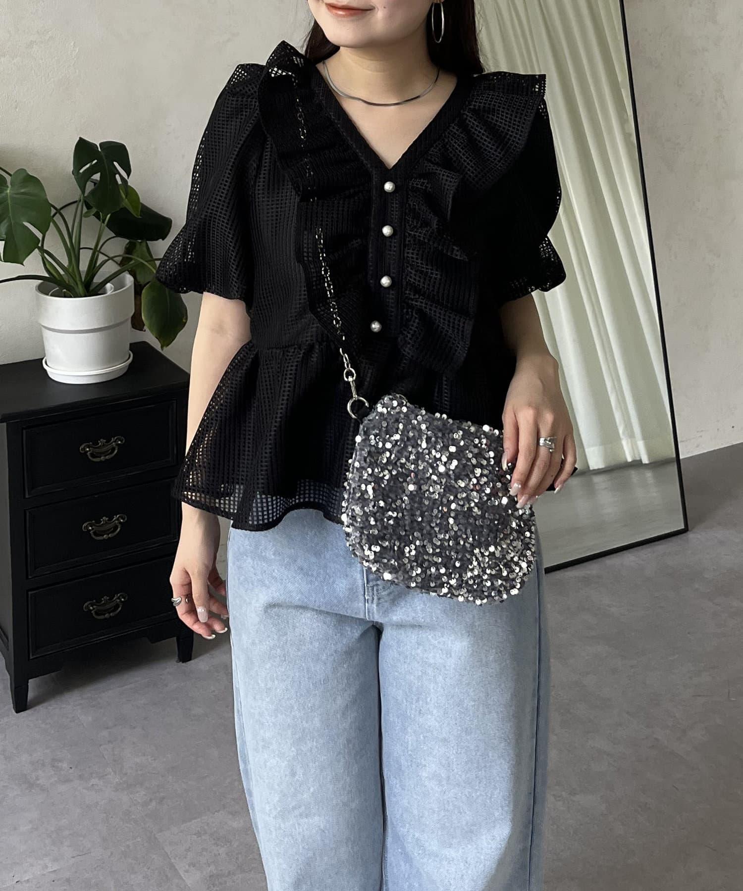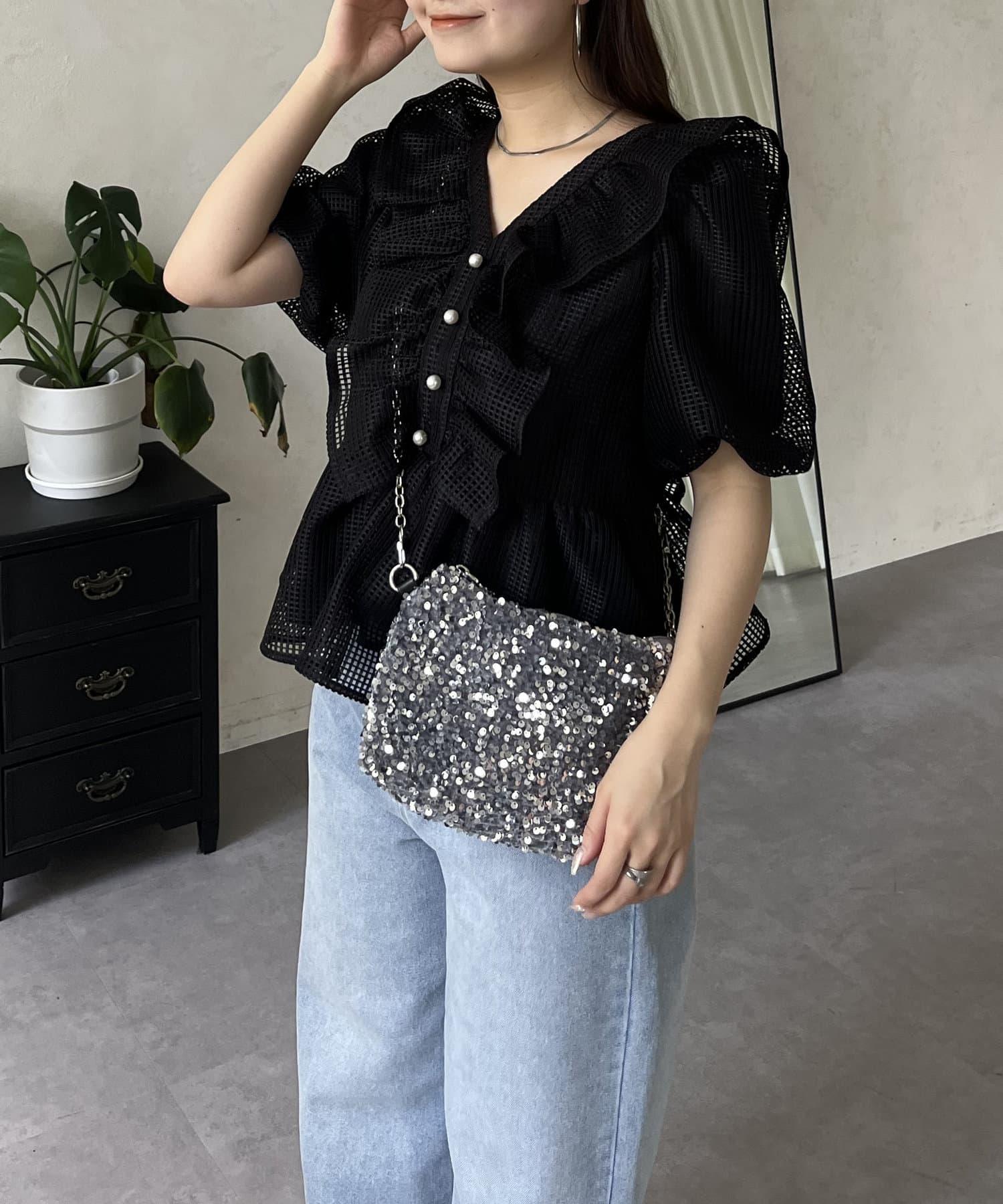 珍珠鈕釦網眷邊荷葉邊娃娃衫