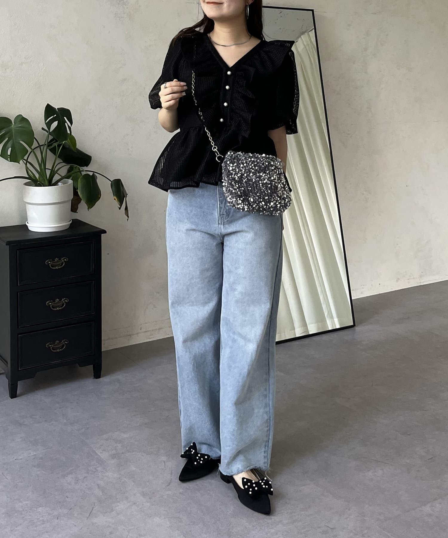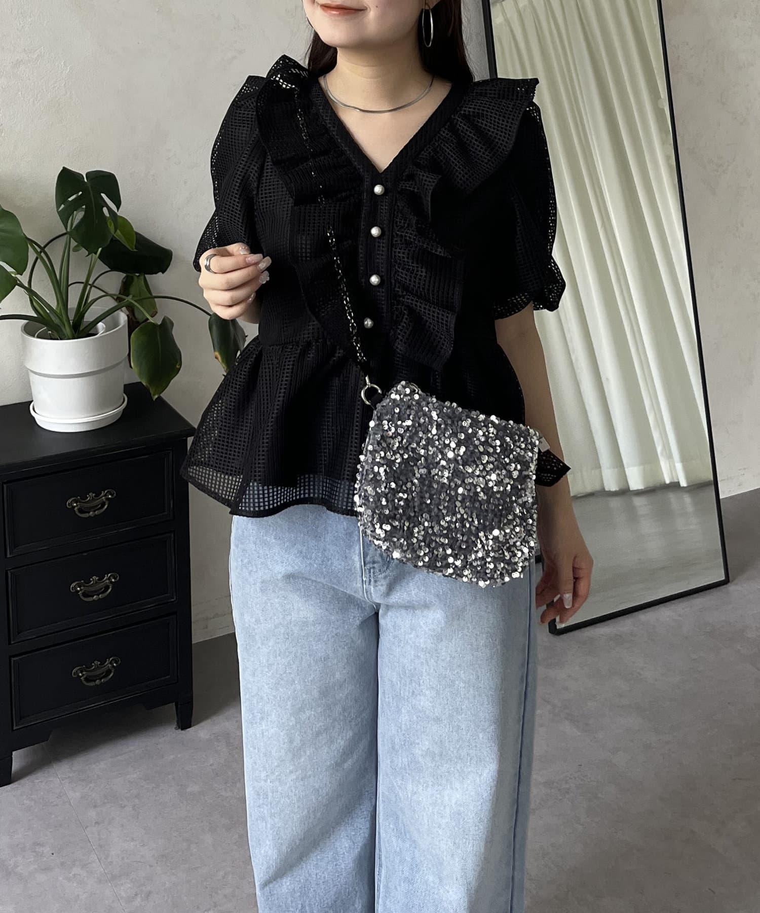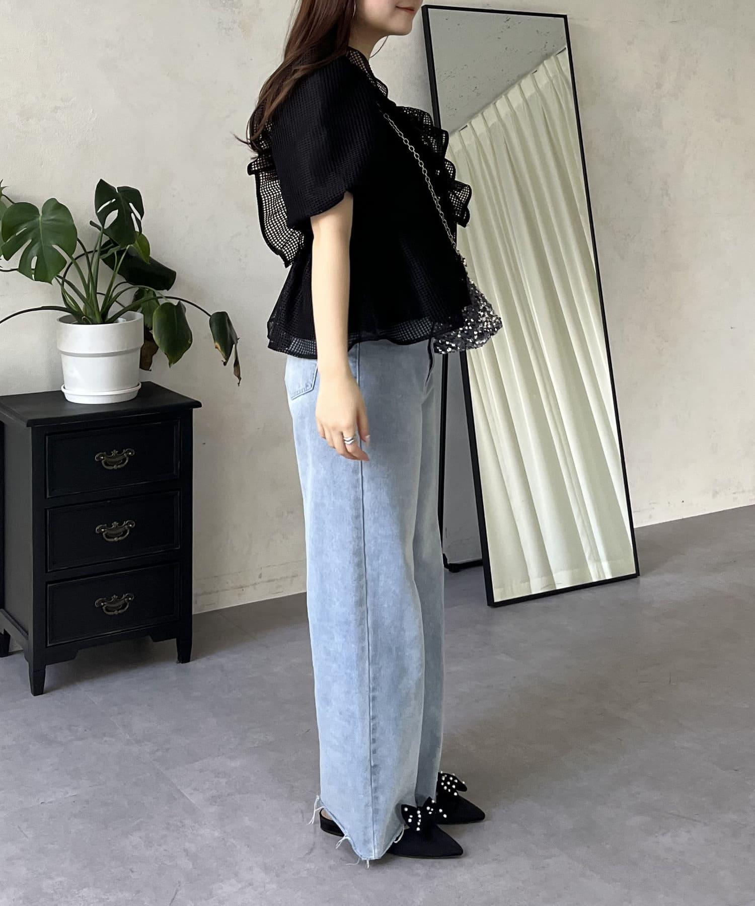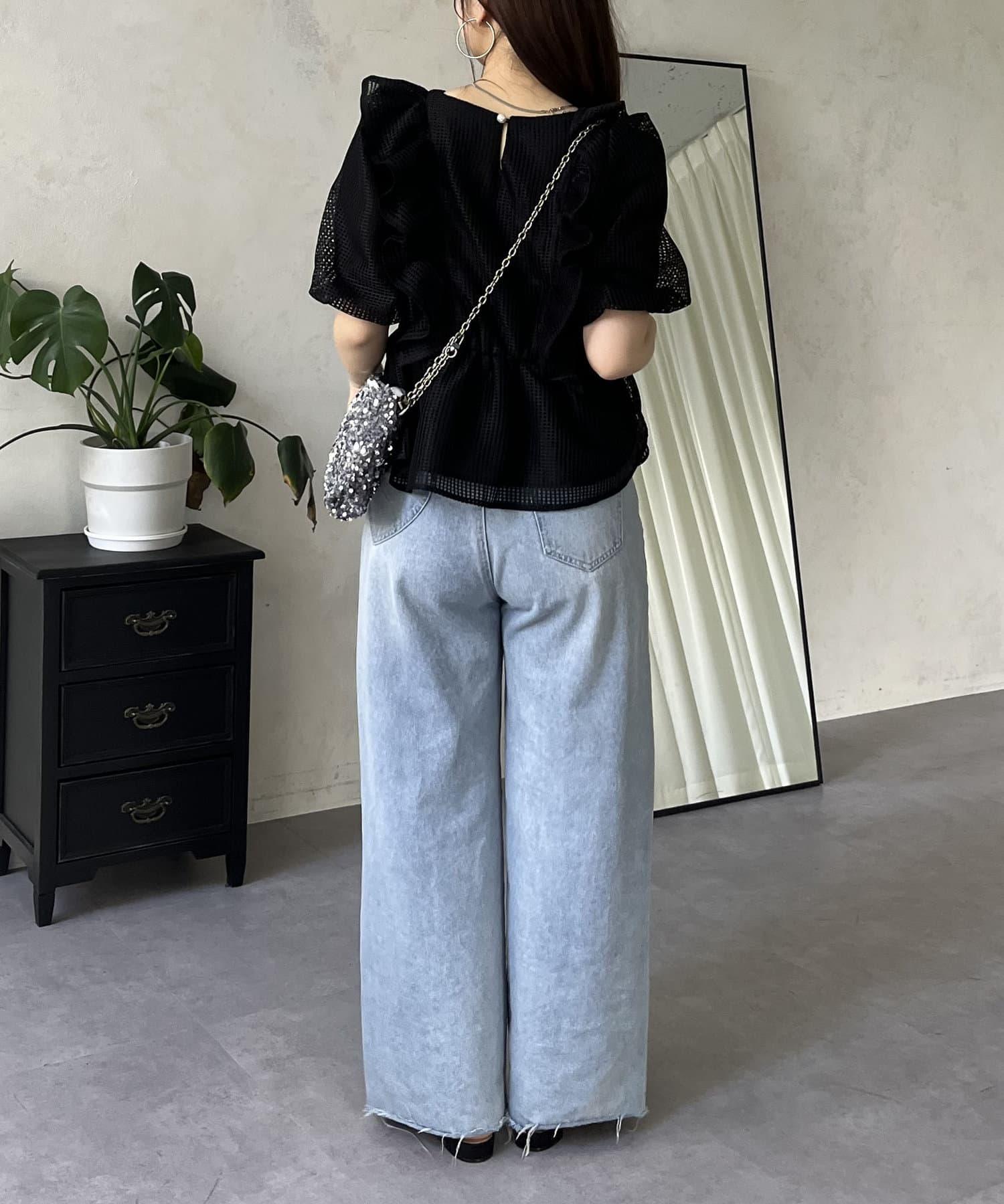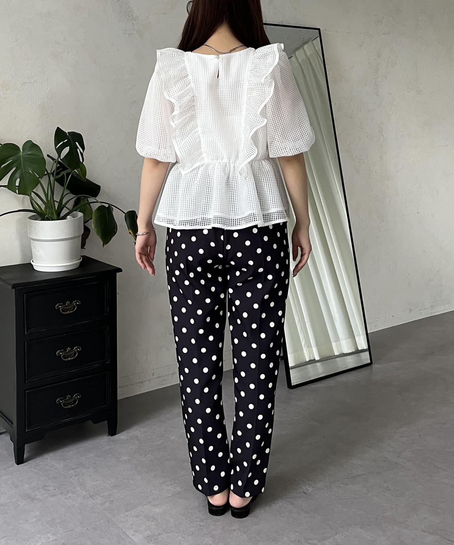珍珠鈕釦網眷邊荷葉邊娃娃衫