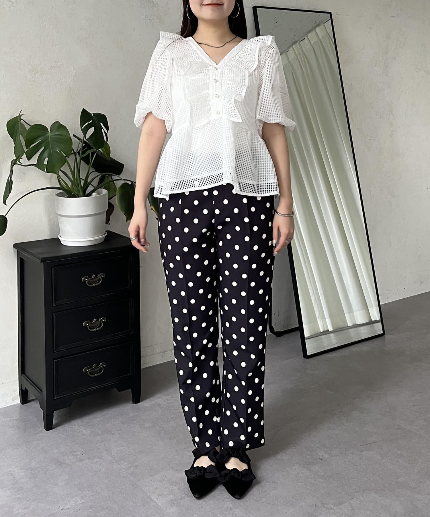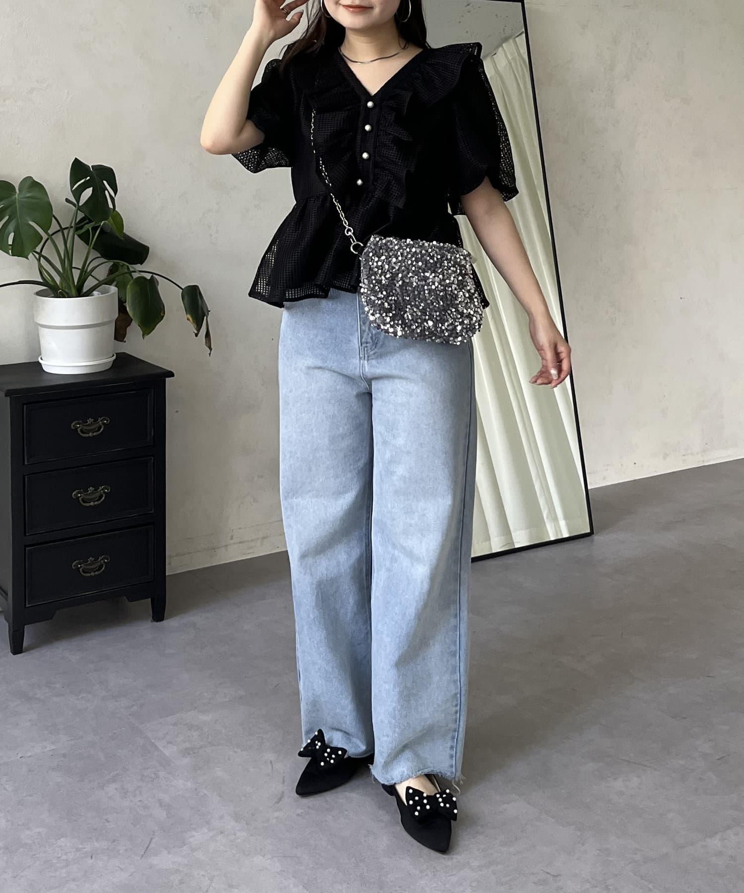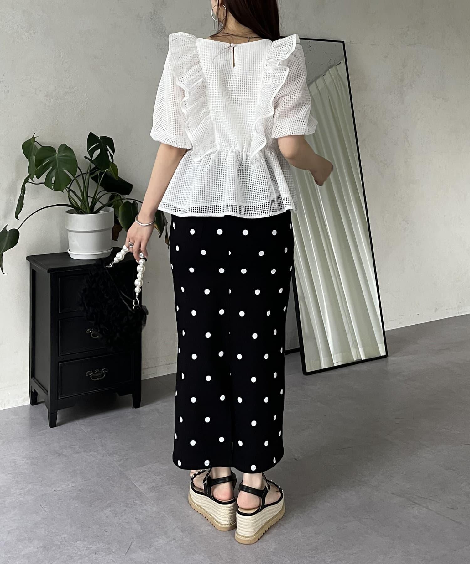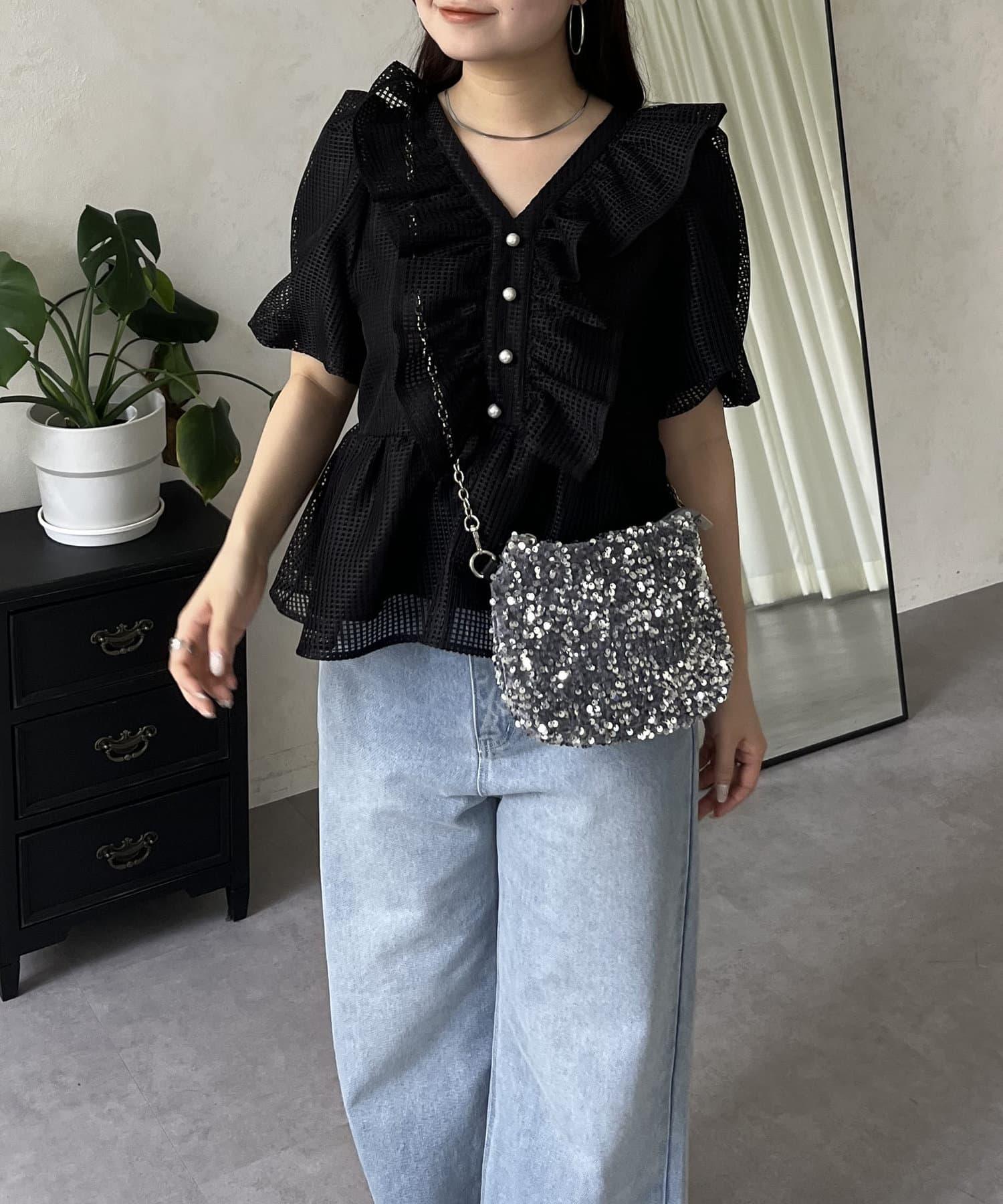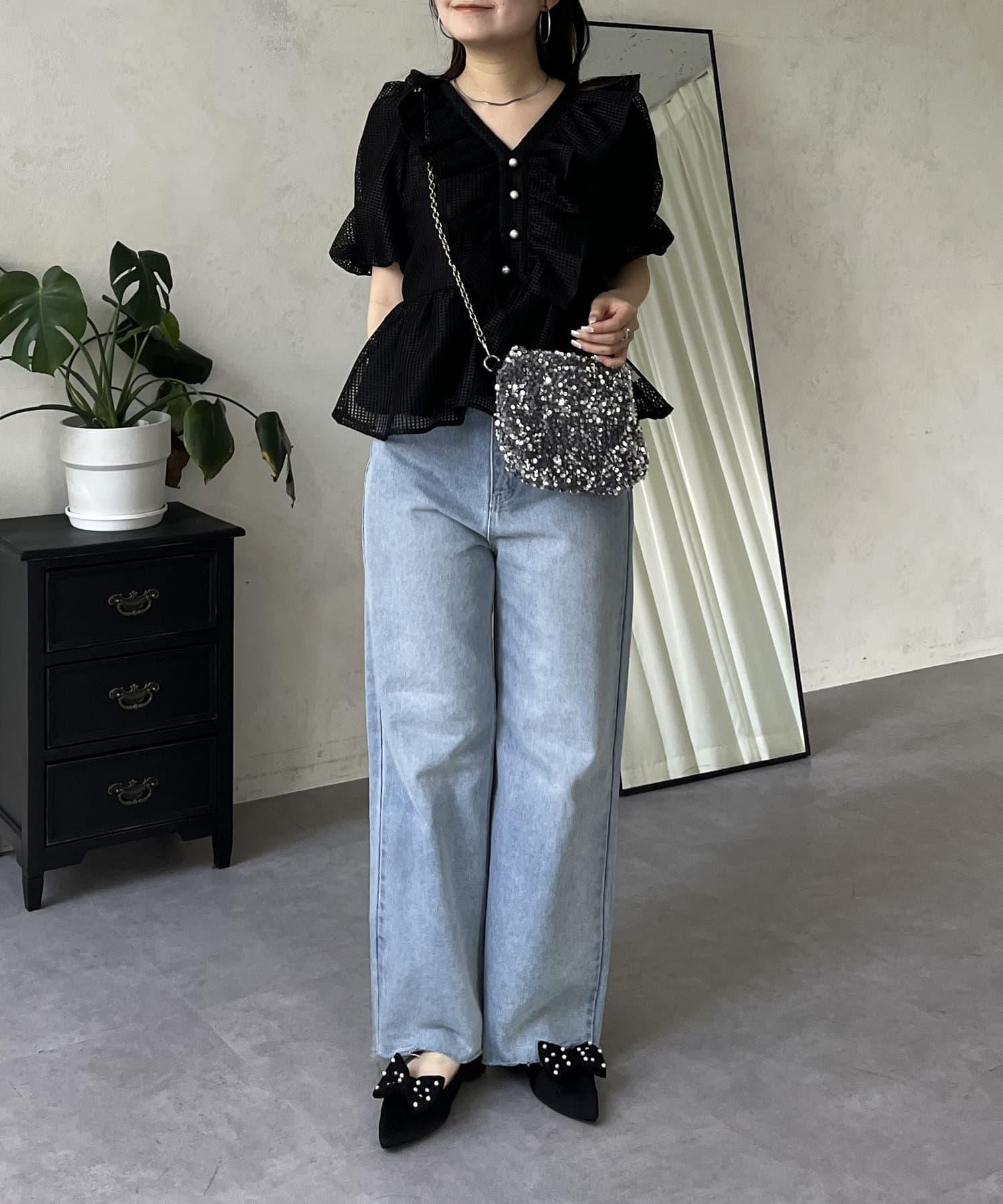 珍珠鈕釦網眷邊荷葉邊娃娃衫
