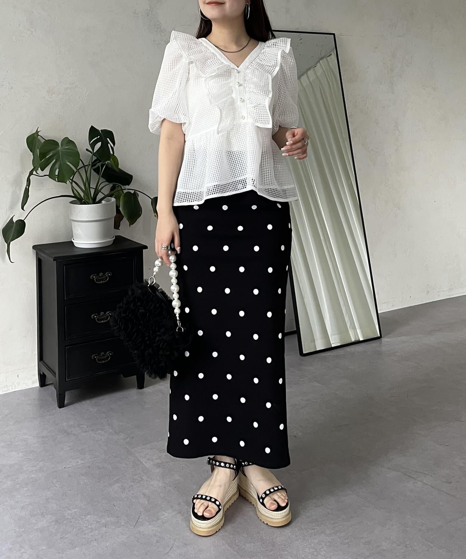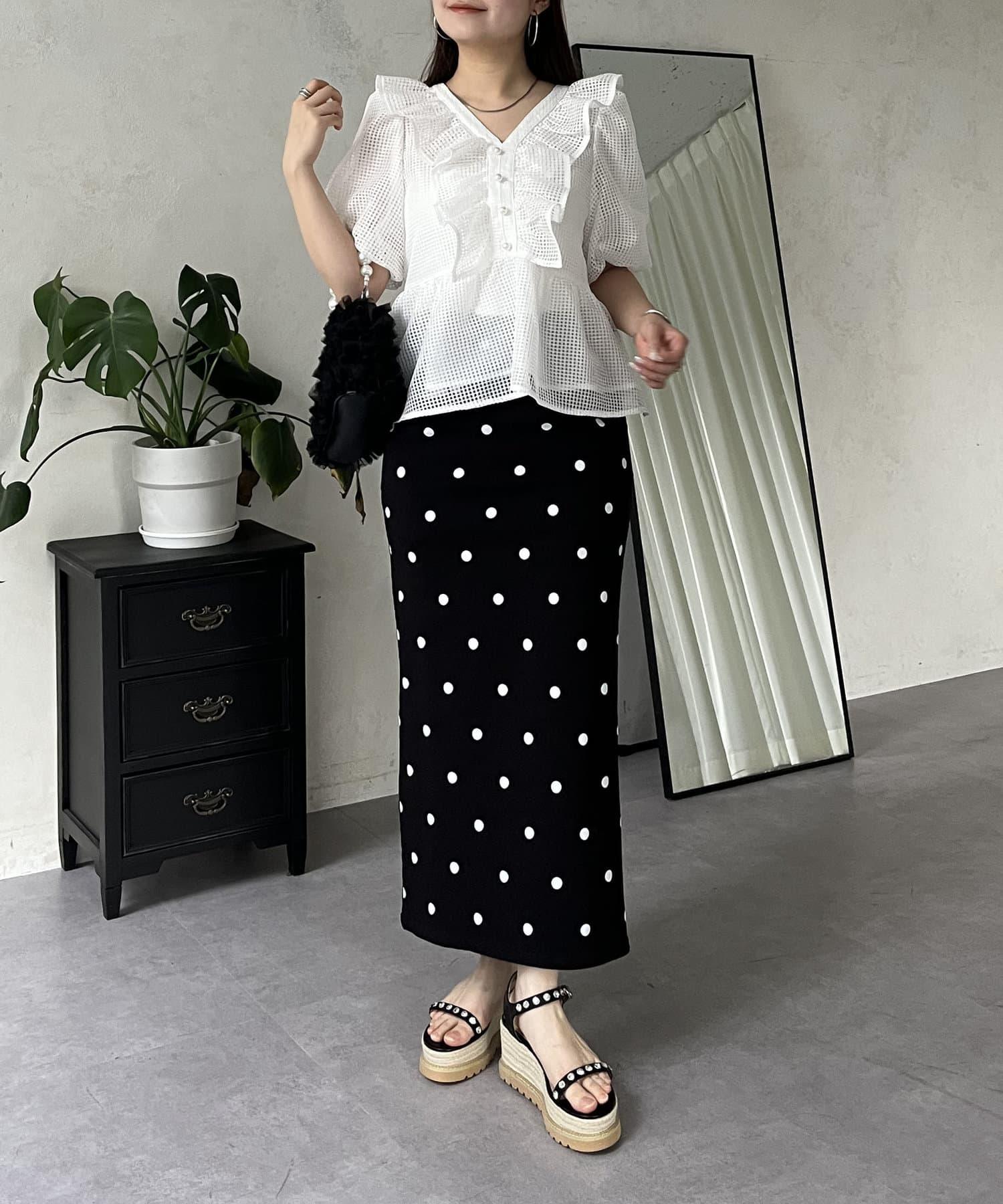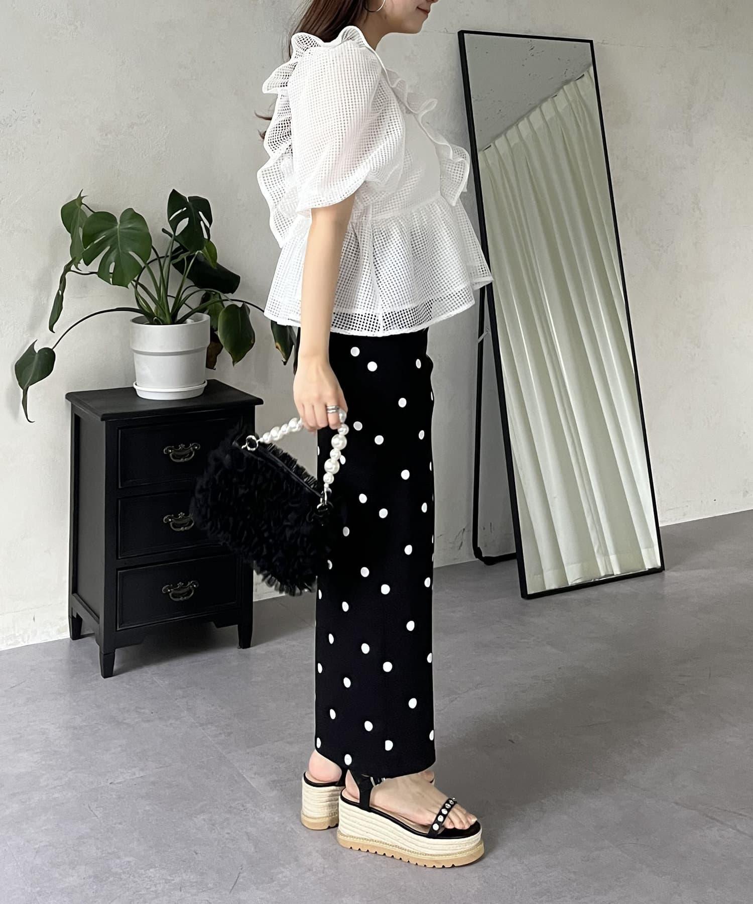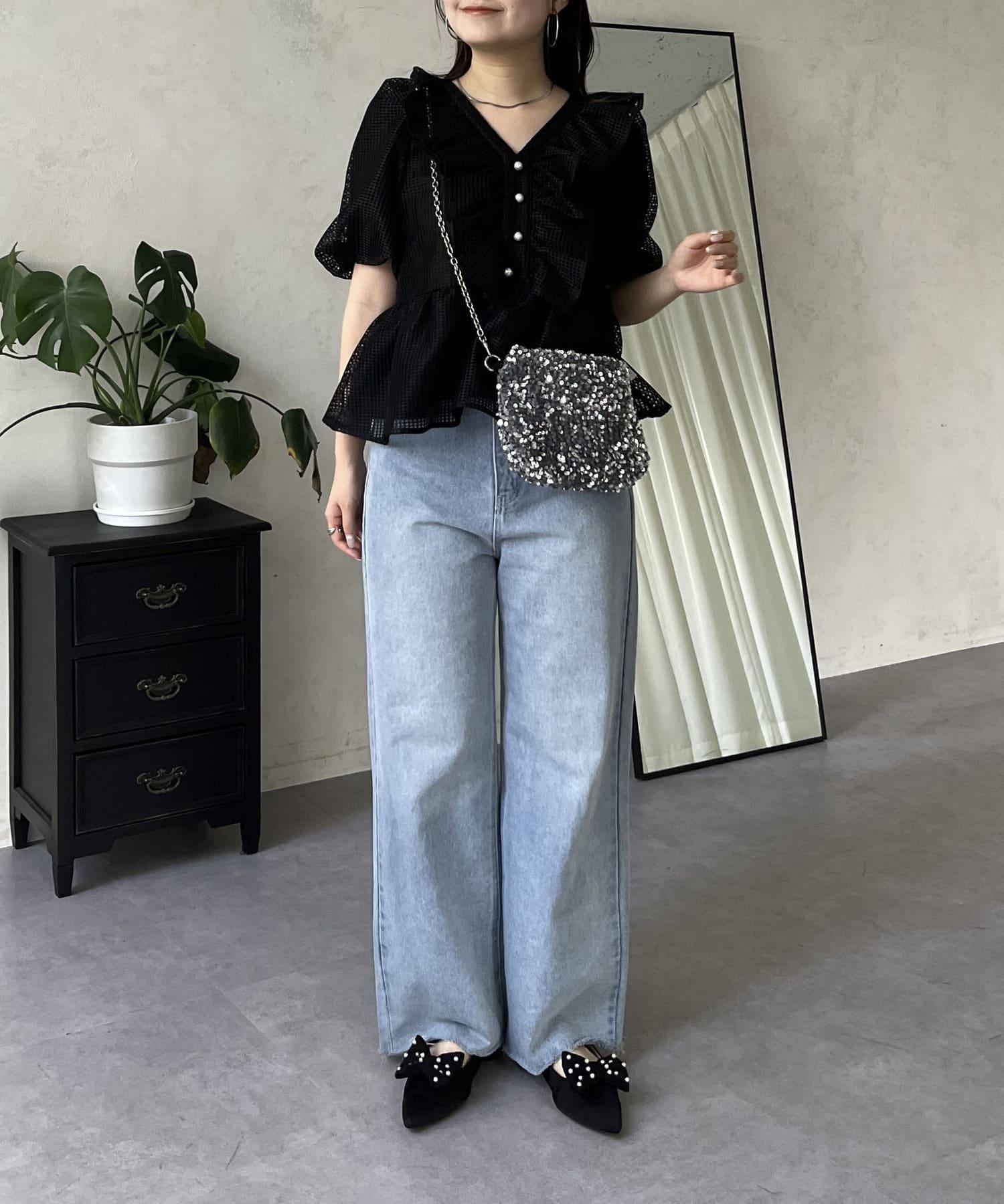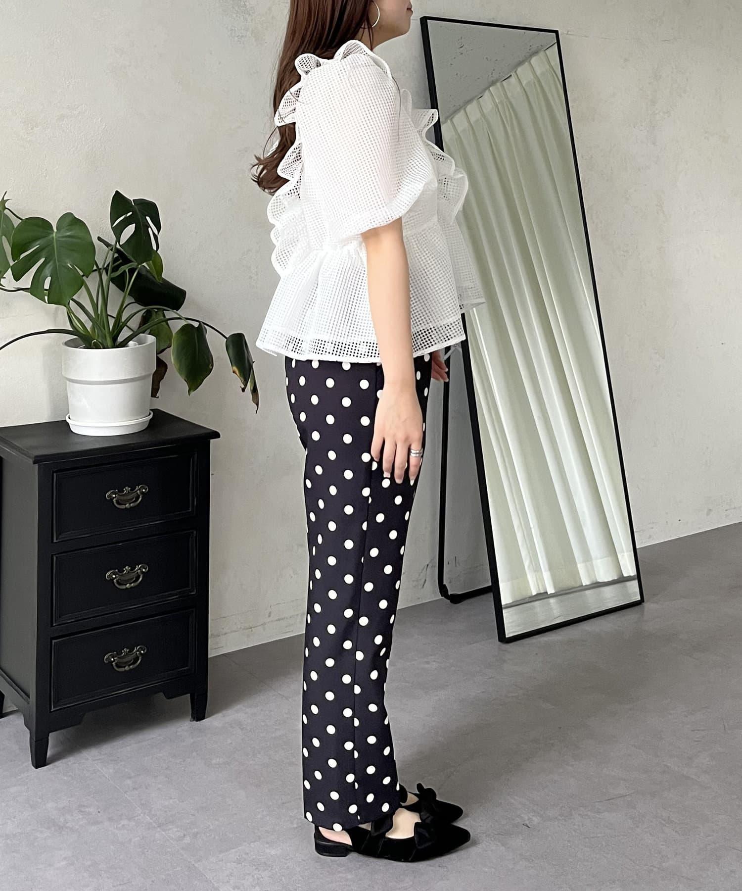 珍珠鈕釦網眷邊荷葉邊娃娃衫