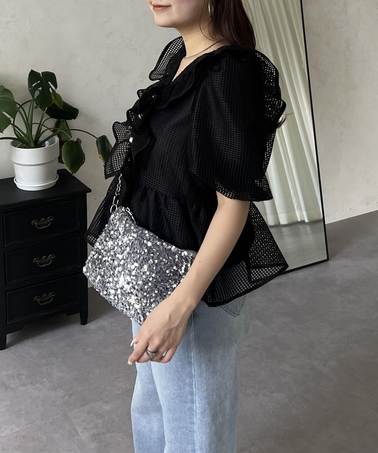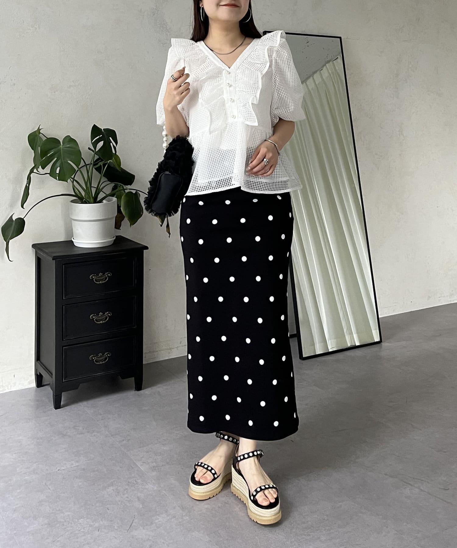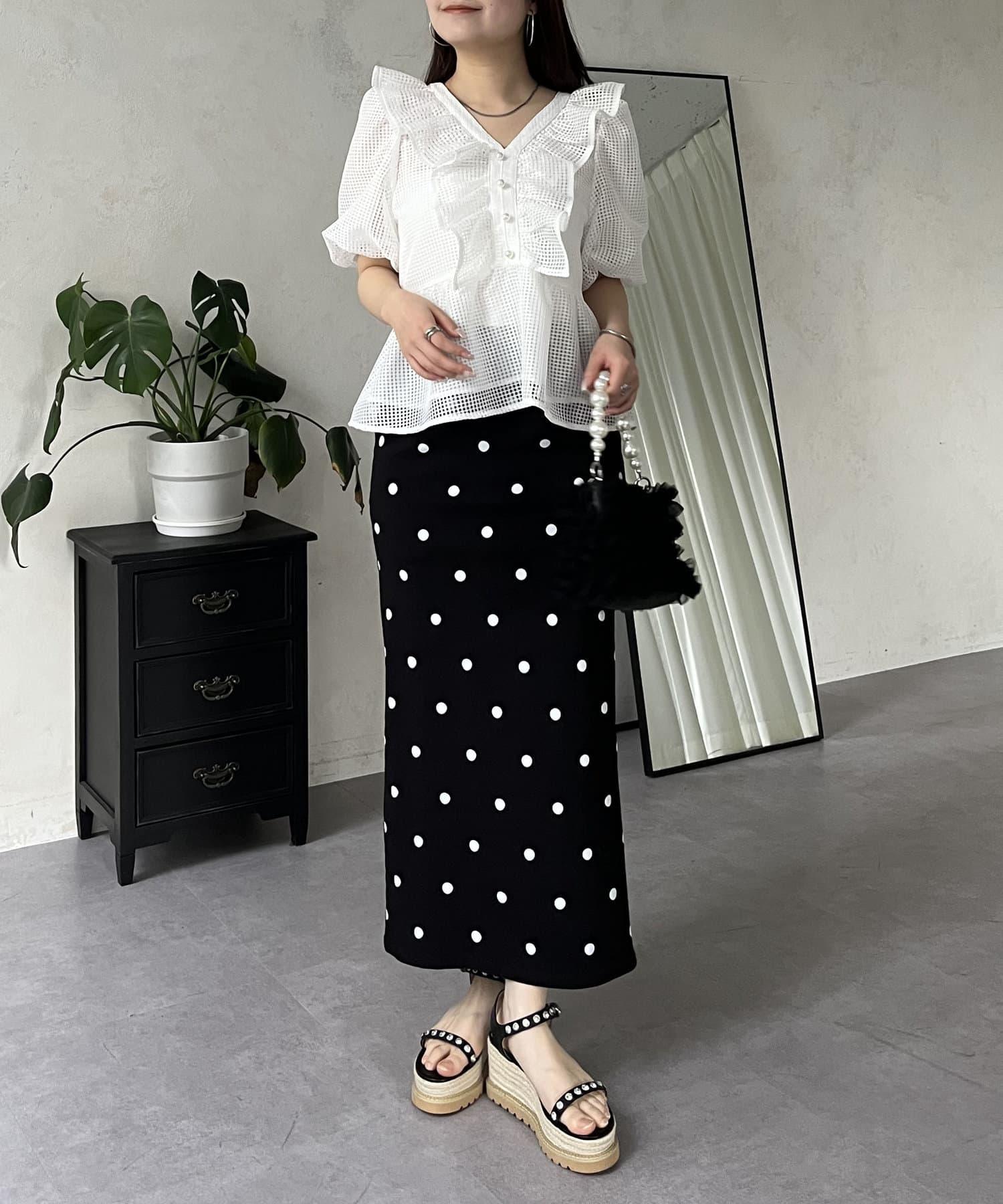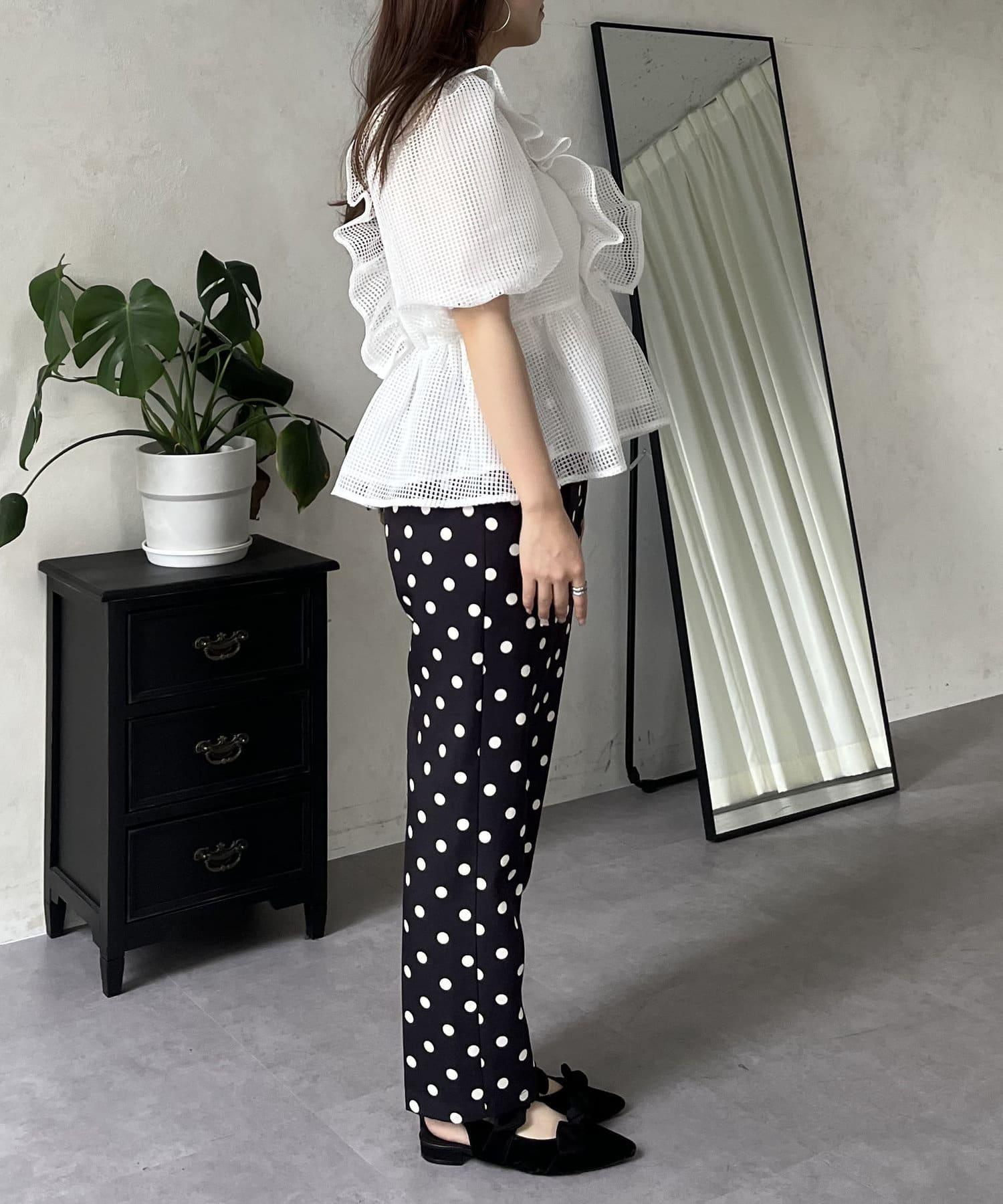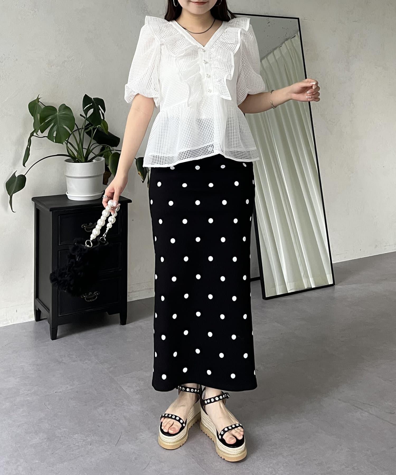 珍珠鈕釦網眷邊荷葉邊娃娃衫