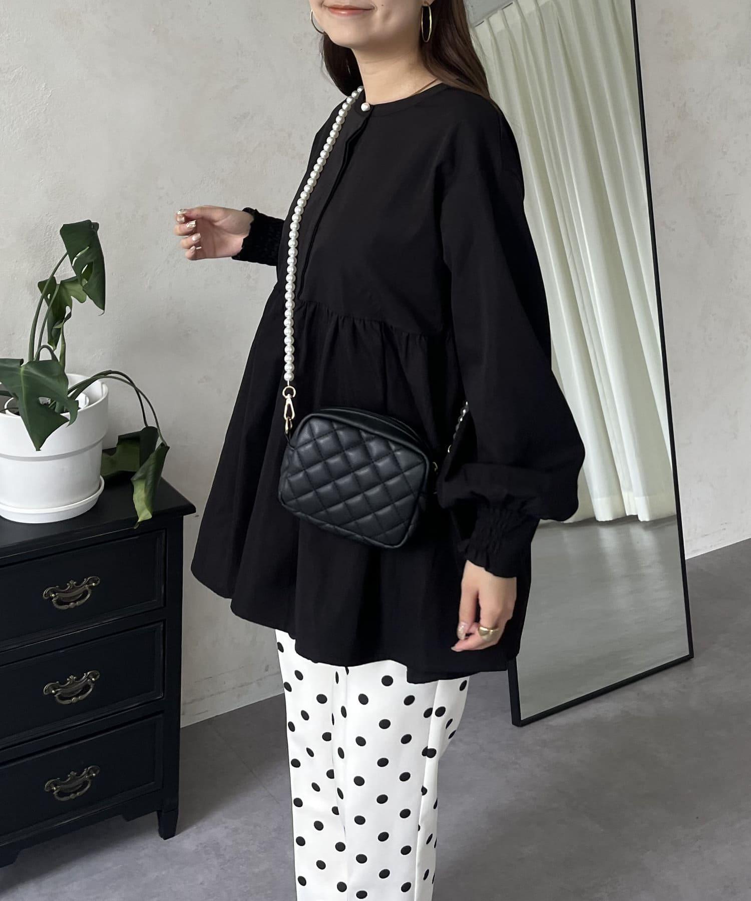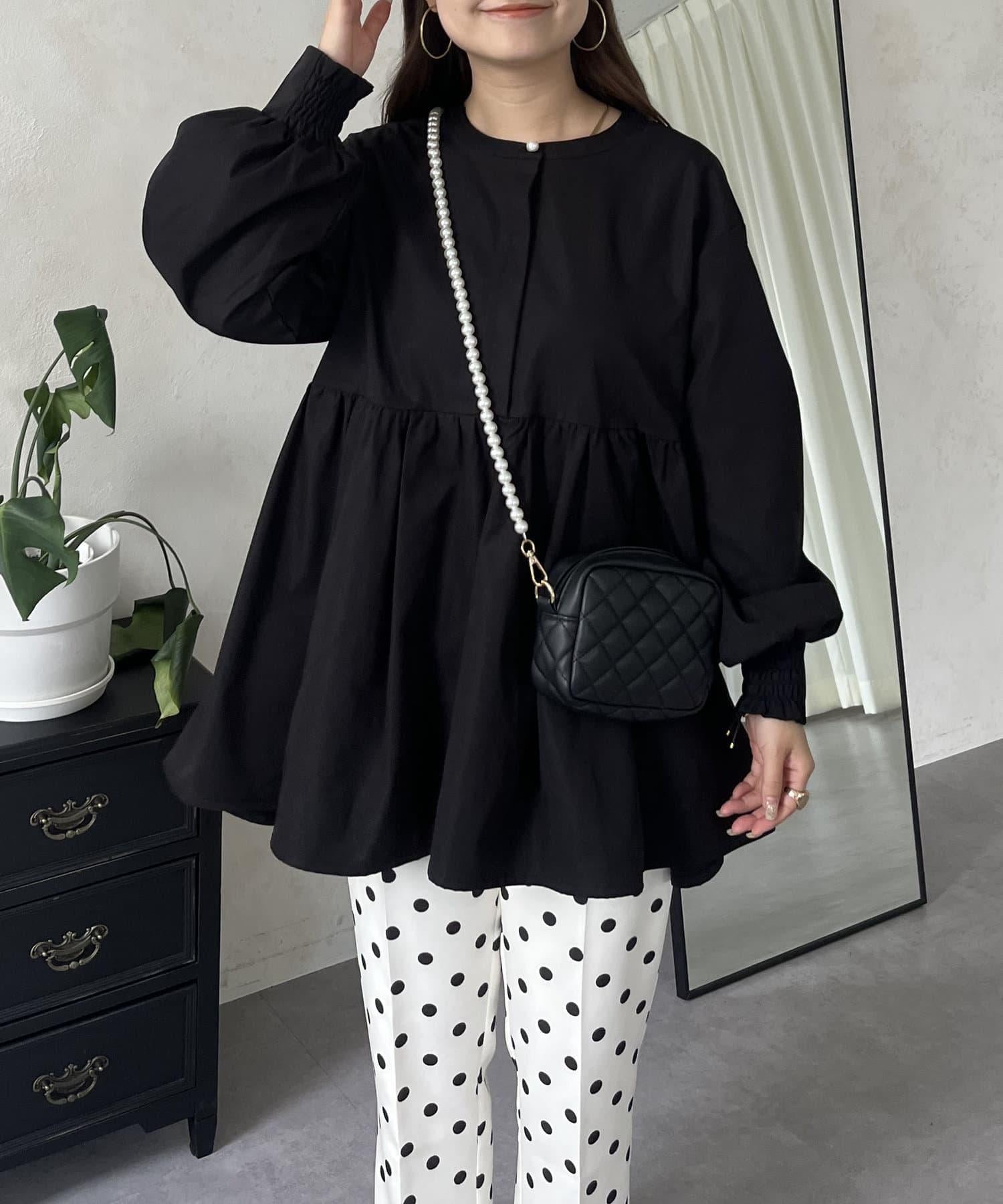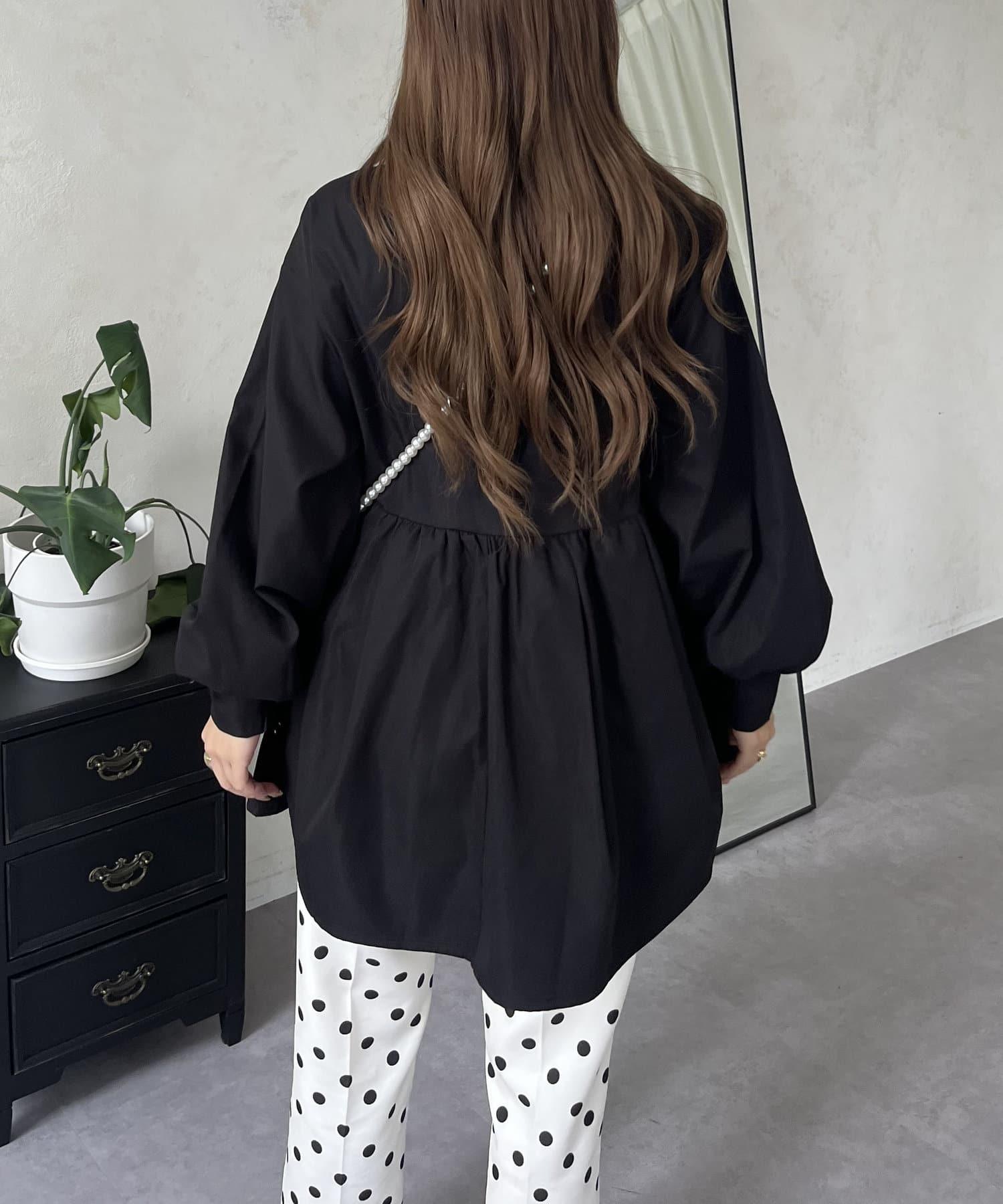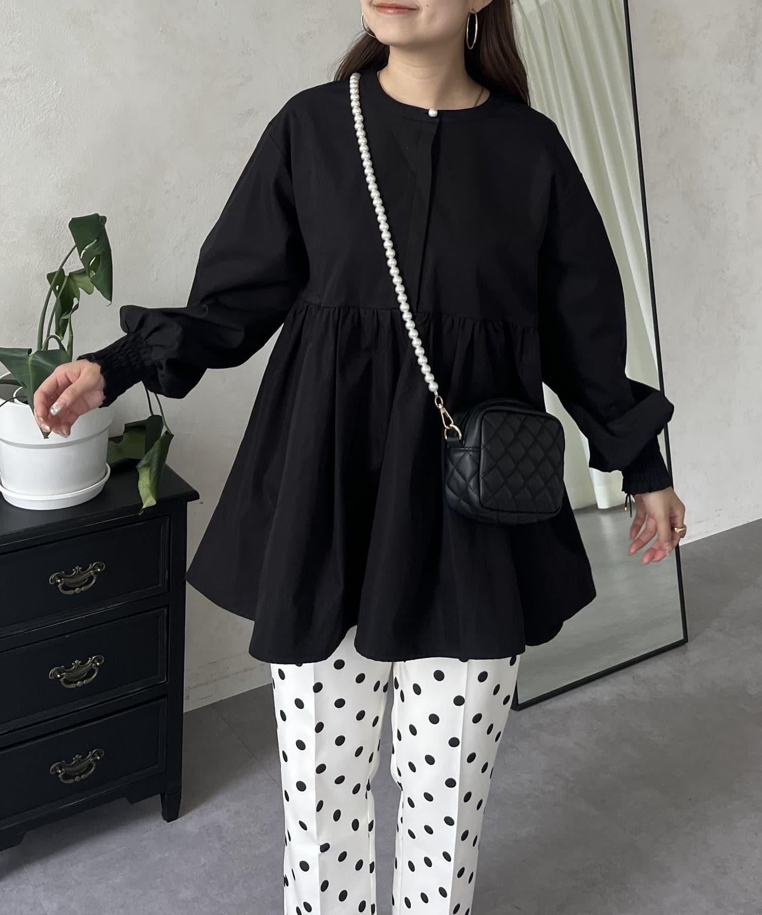 珍珠鈕釦褶皺荷葉邊上衣
