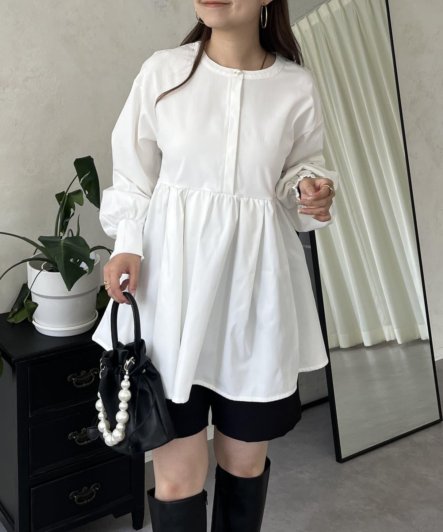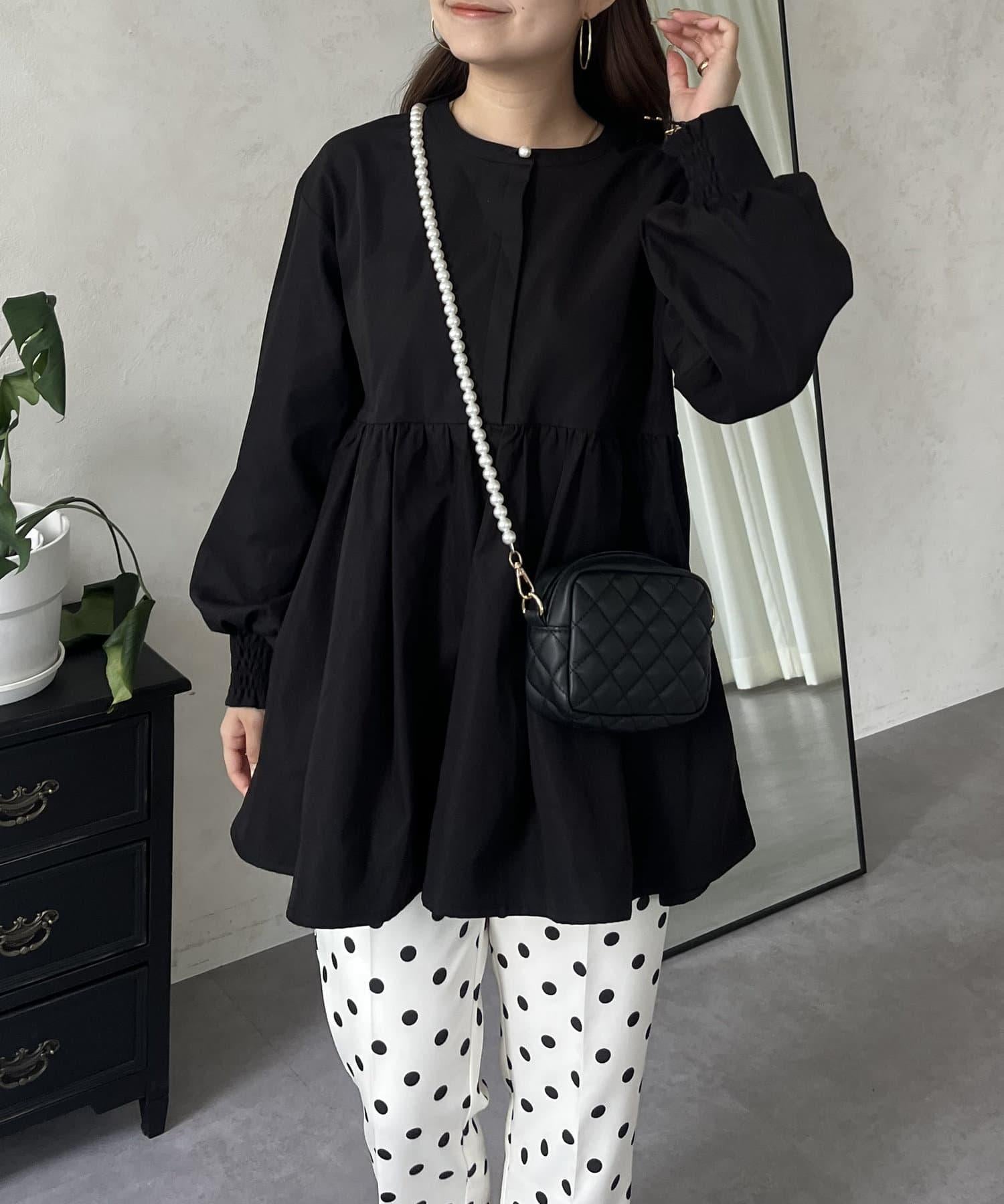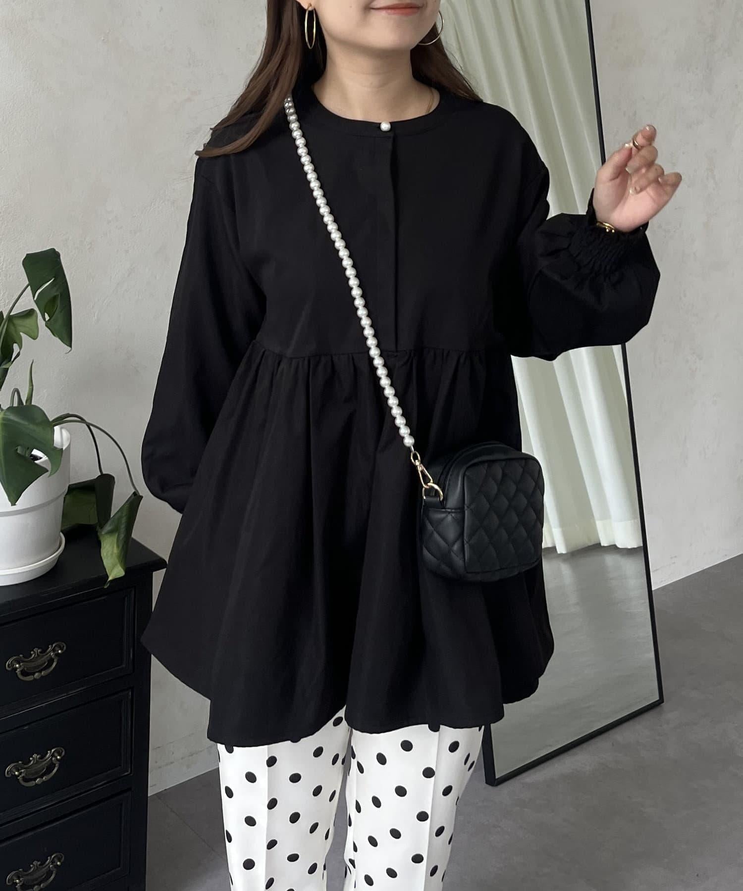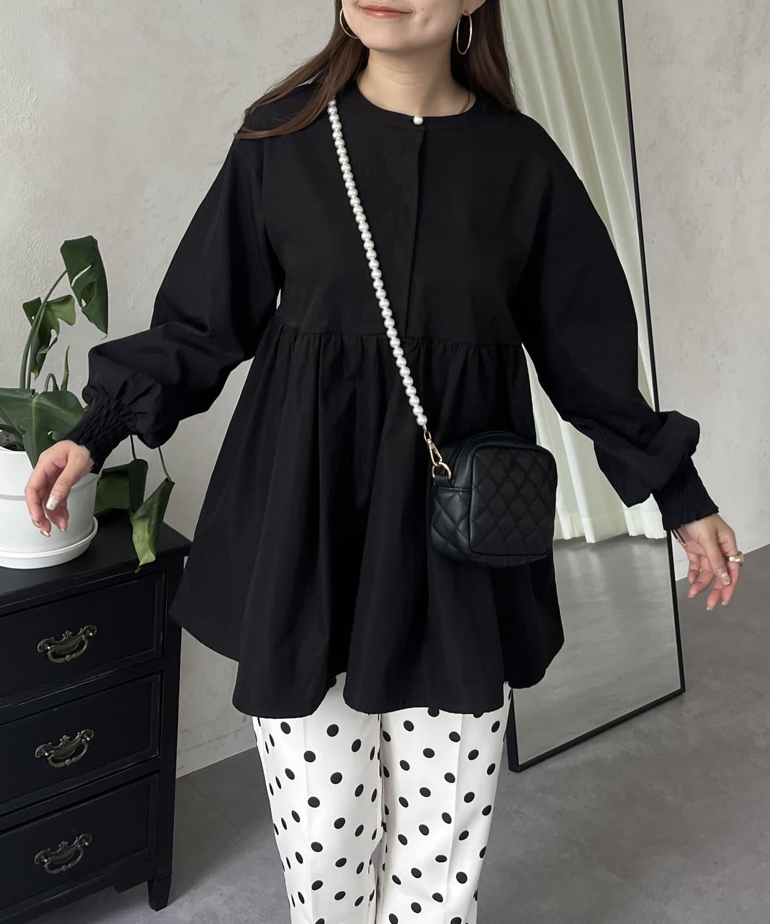 珍珠鈕釦褶皺荷葉邊上衣