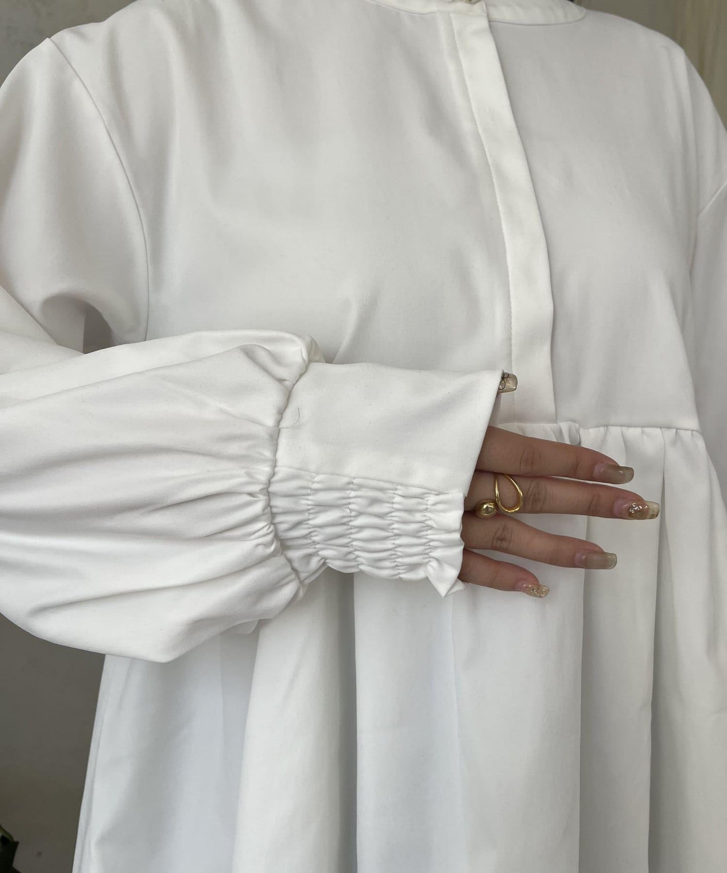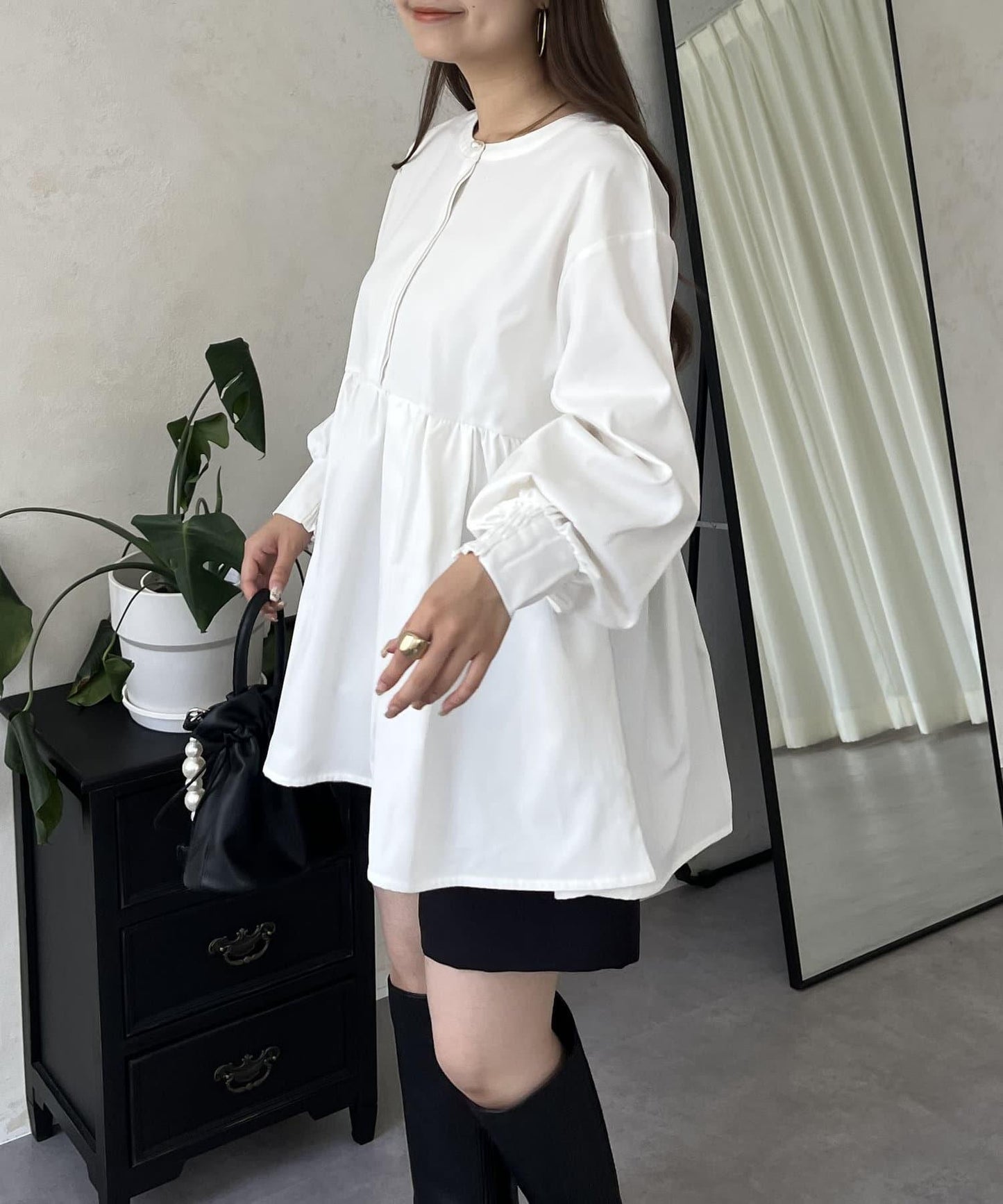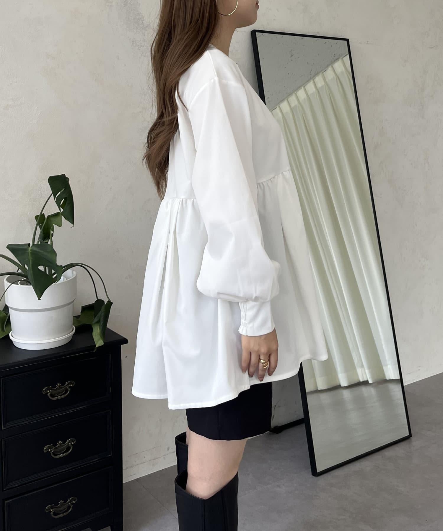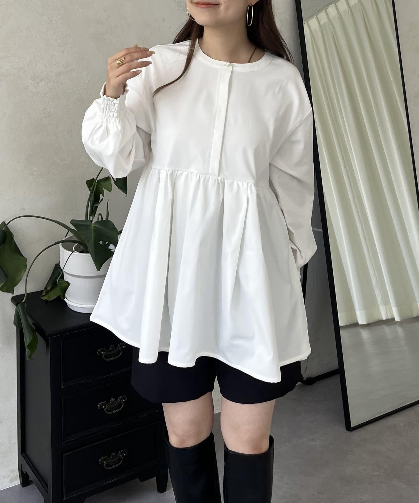 珍珠鈕釦褶皺荷葉邊上衣