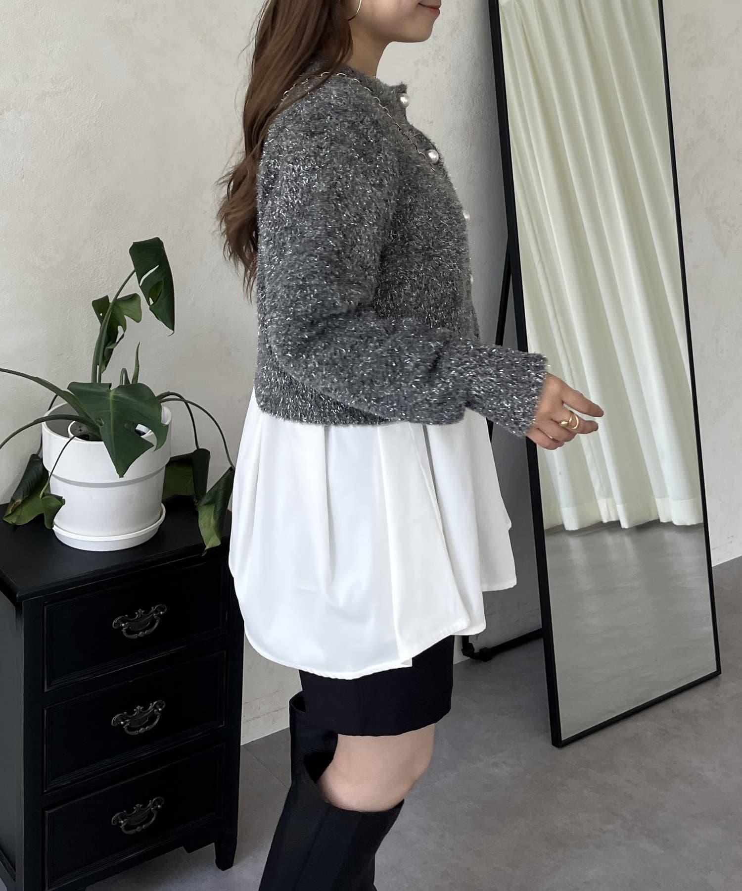 上衣以珍珠紐扣點綴。