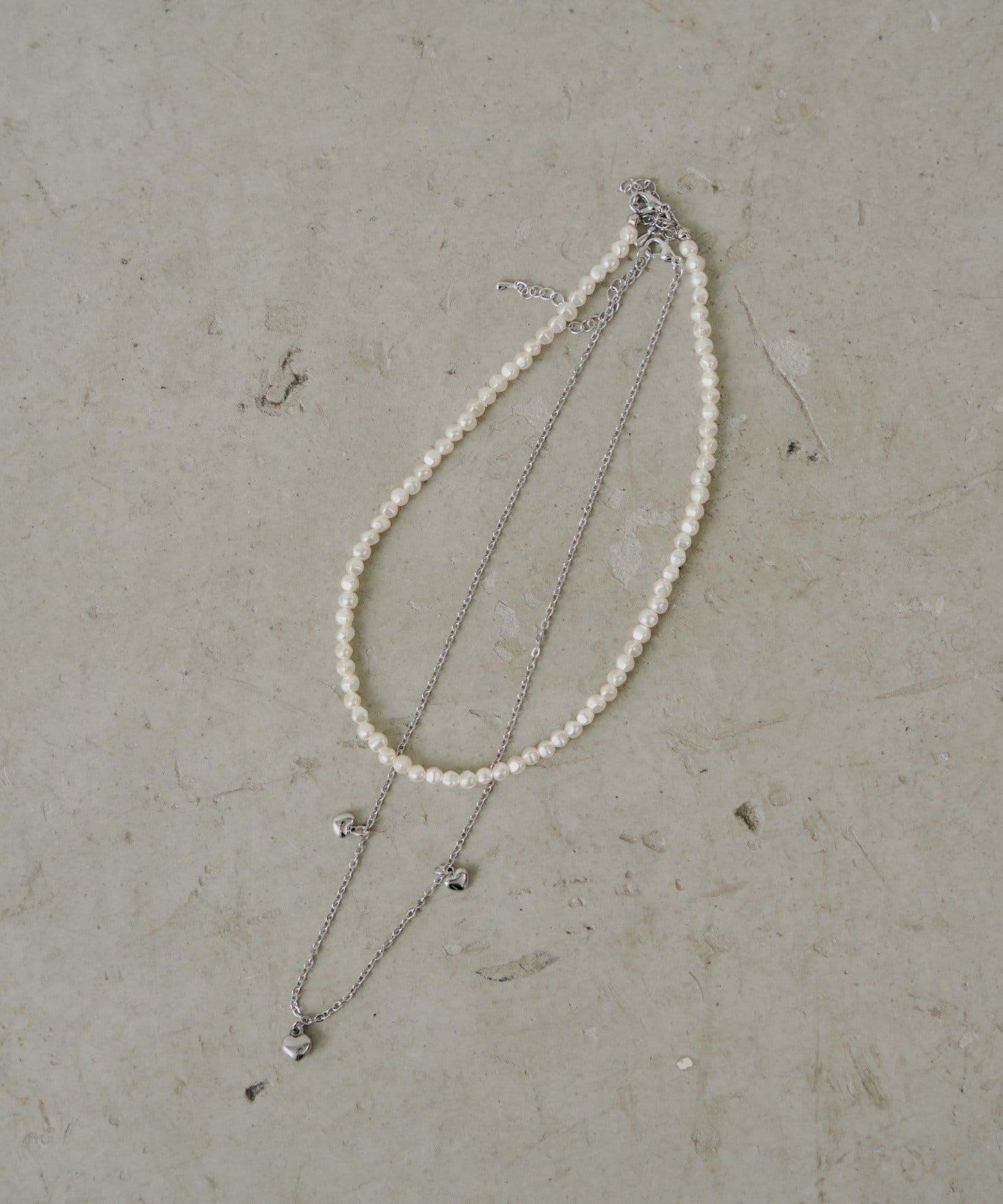 珍珠和心形吊飾的組合是一套可愛的項鍊。