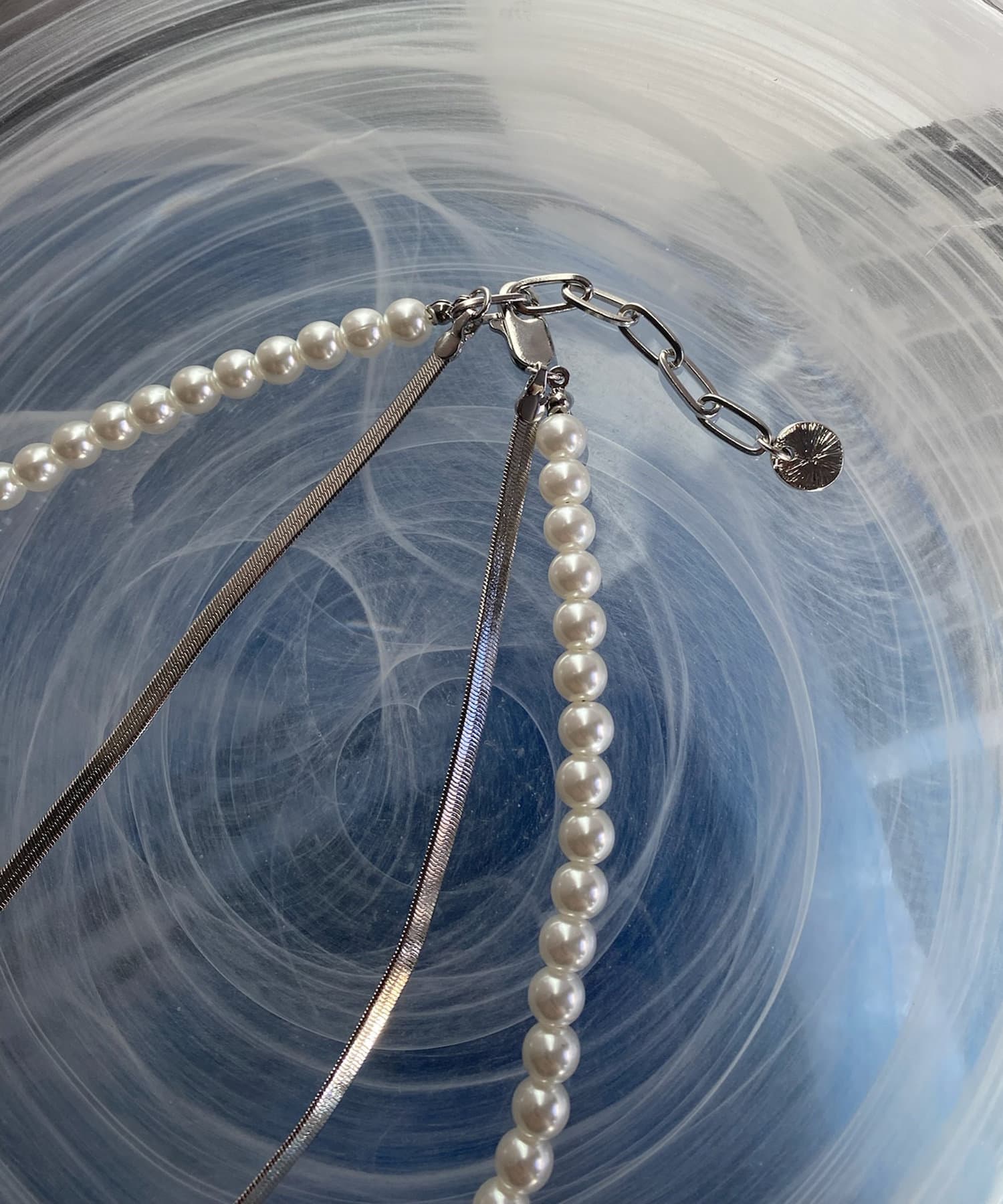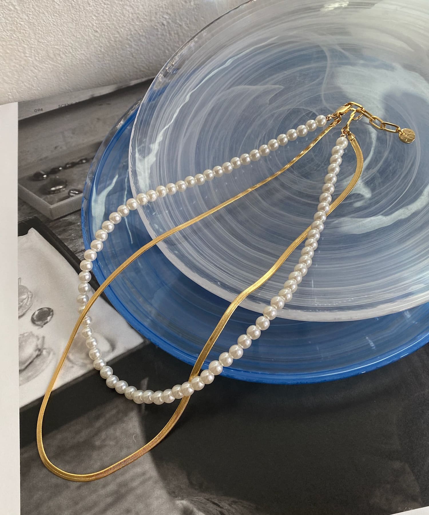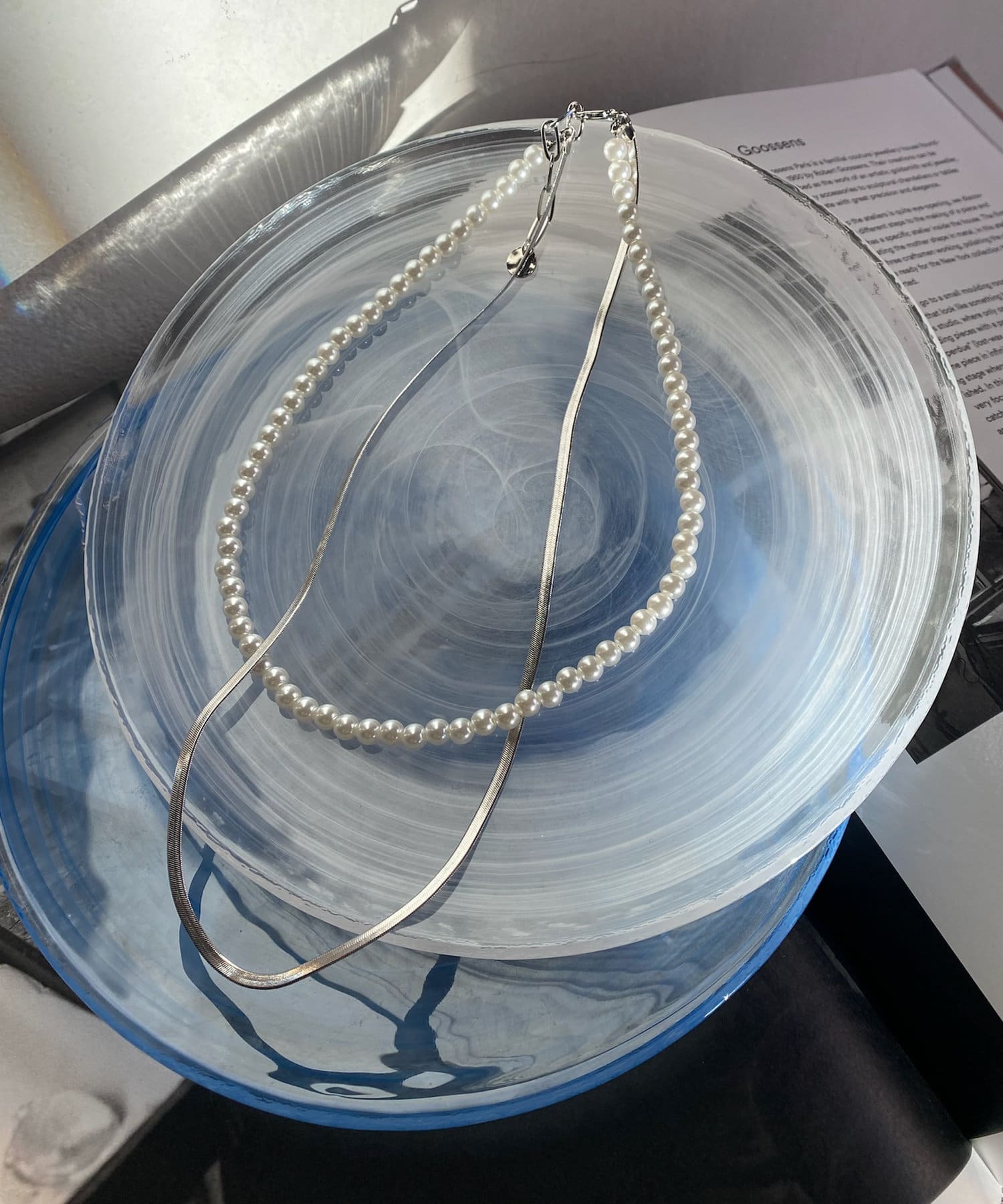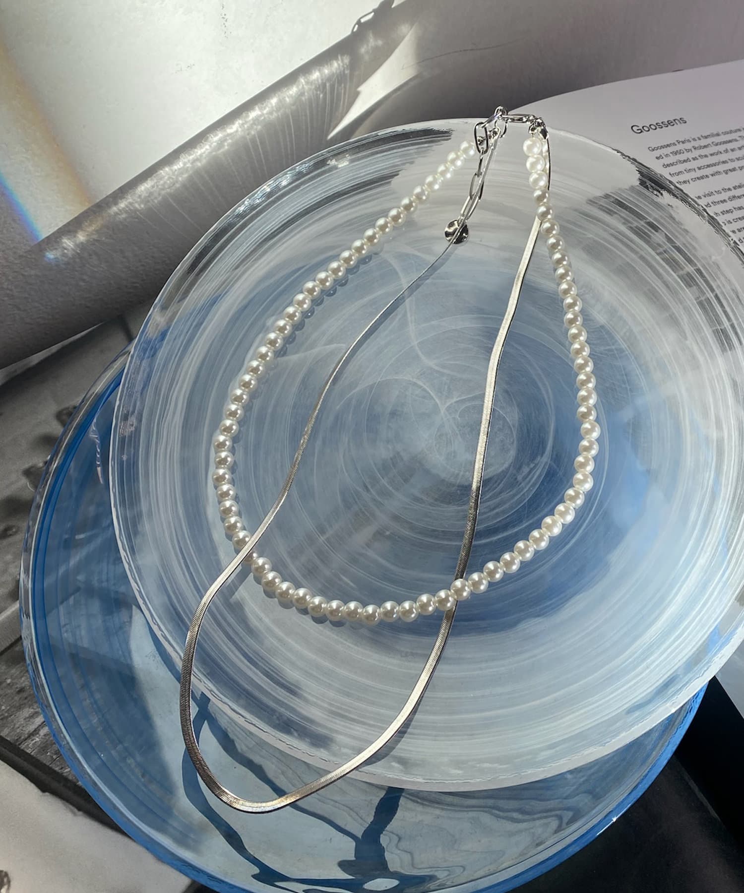 這條項鍊由兩串珍珠鏈和平蛇形鏈設計而成!