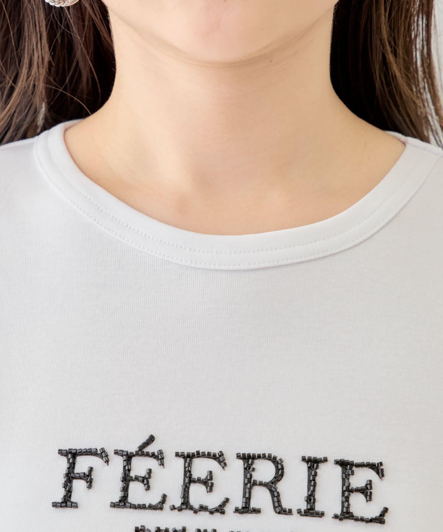 長款帥氣 T 恤,印有醒目的串珠徽標