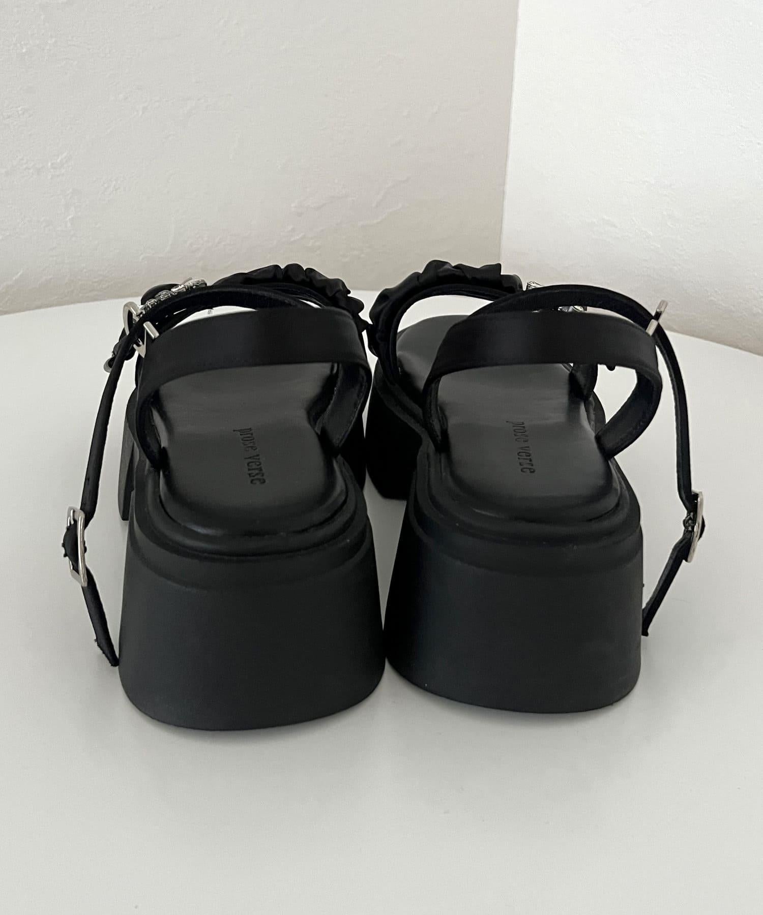 珠飾綁帶厚底涼鞋