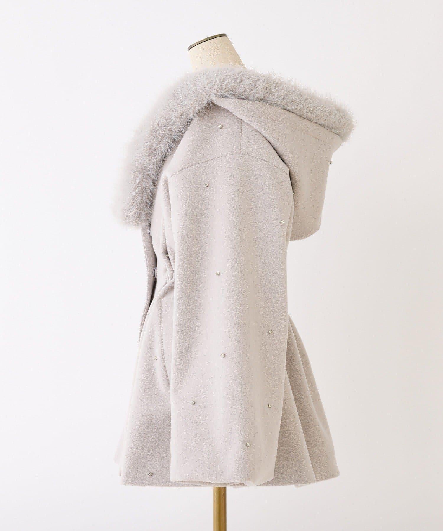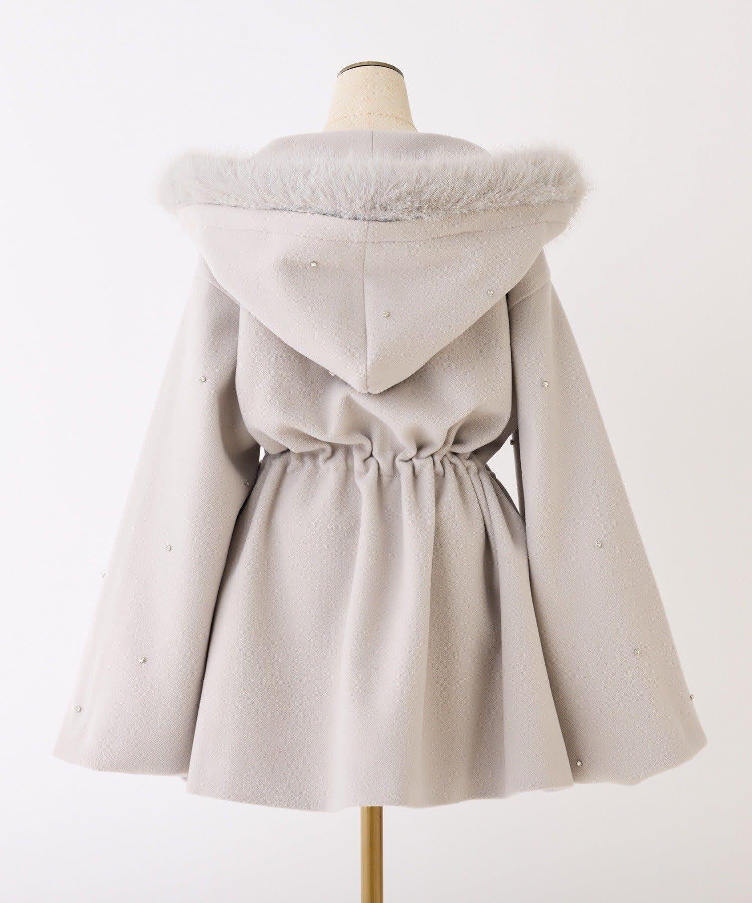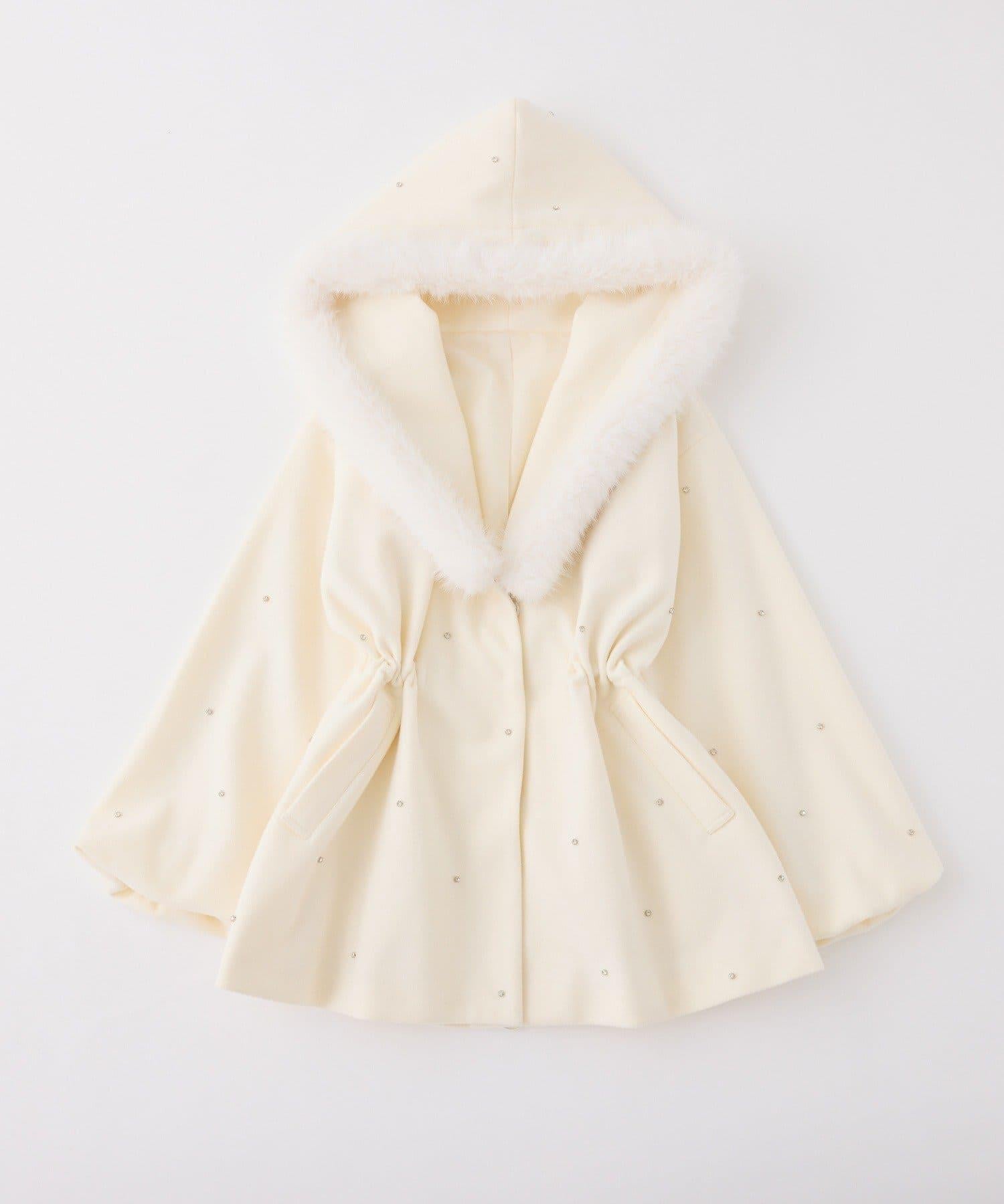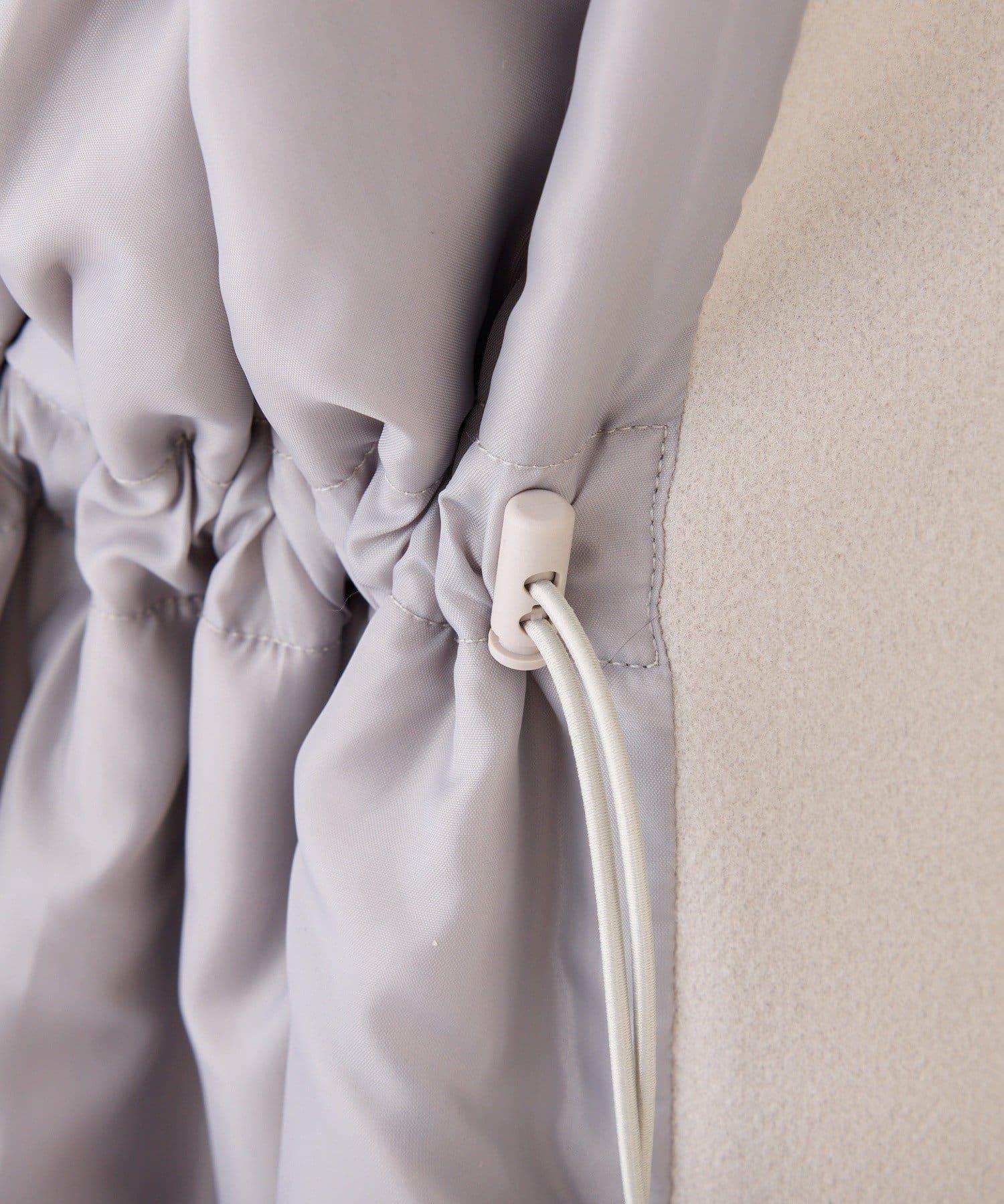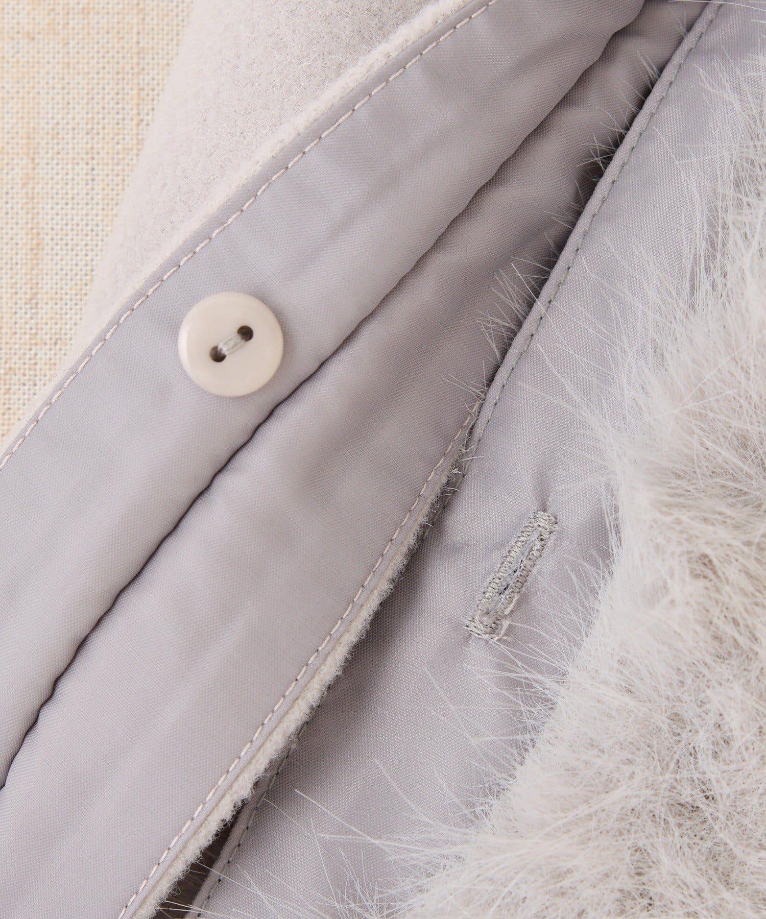連帽上的蓬鬆皮草為臉部增添了一絲魅力。