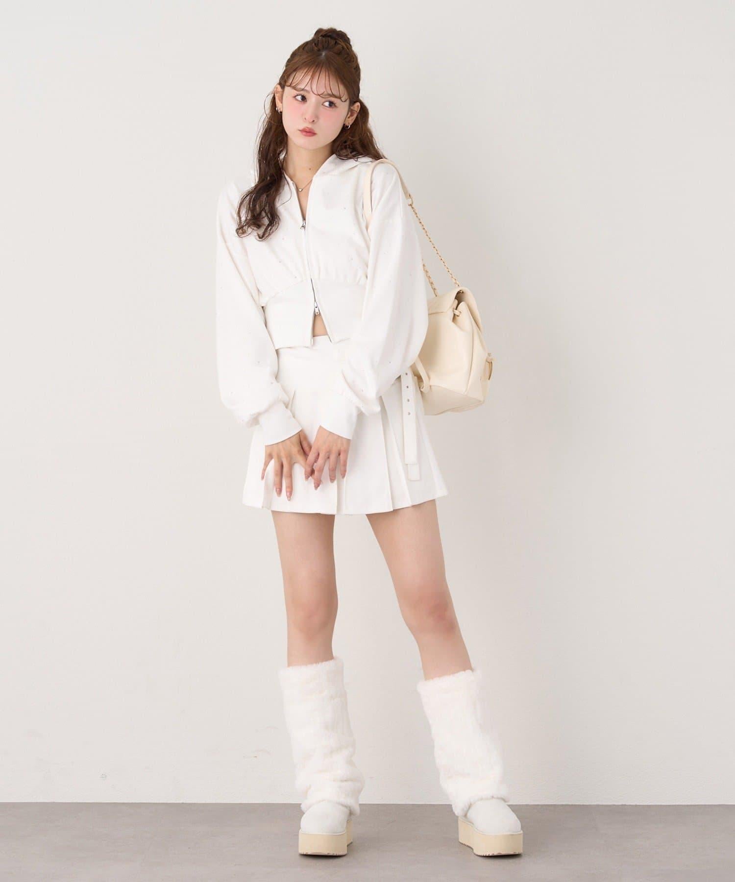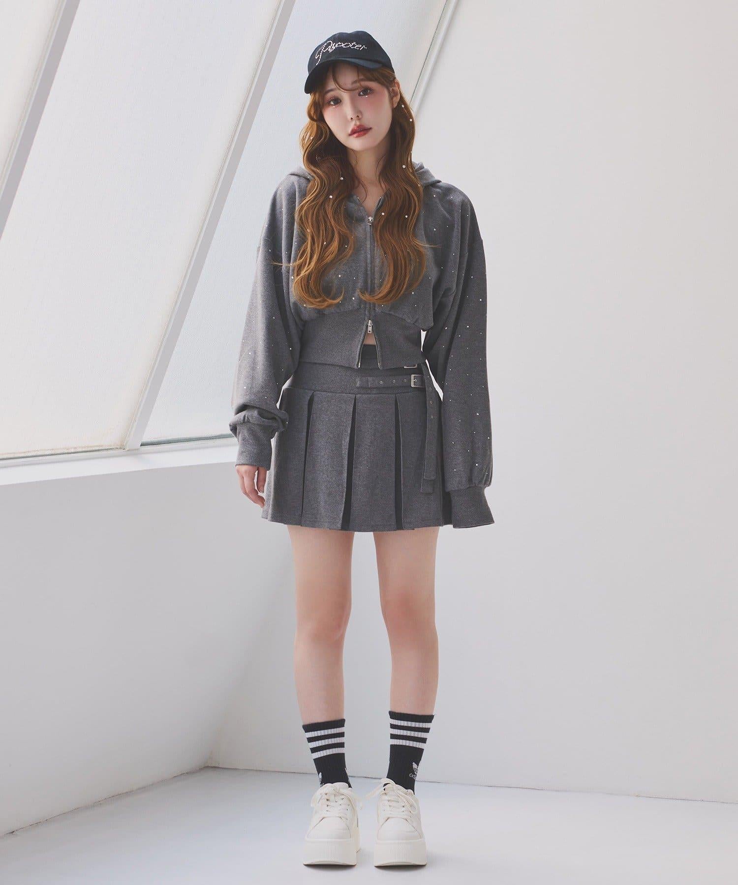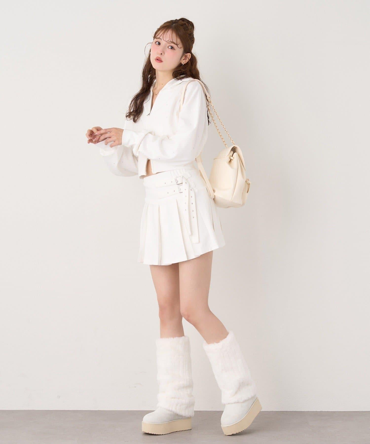 腳穿高筒襪和運動鞋,打造時髦造型。
