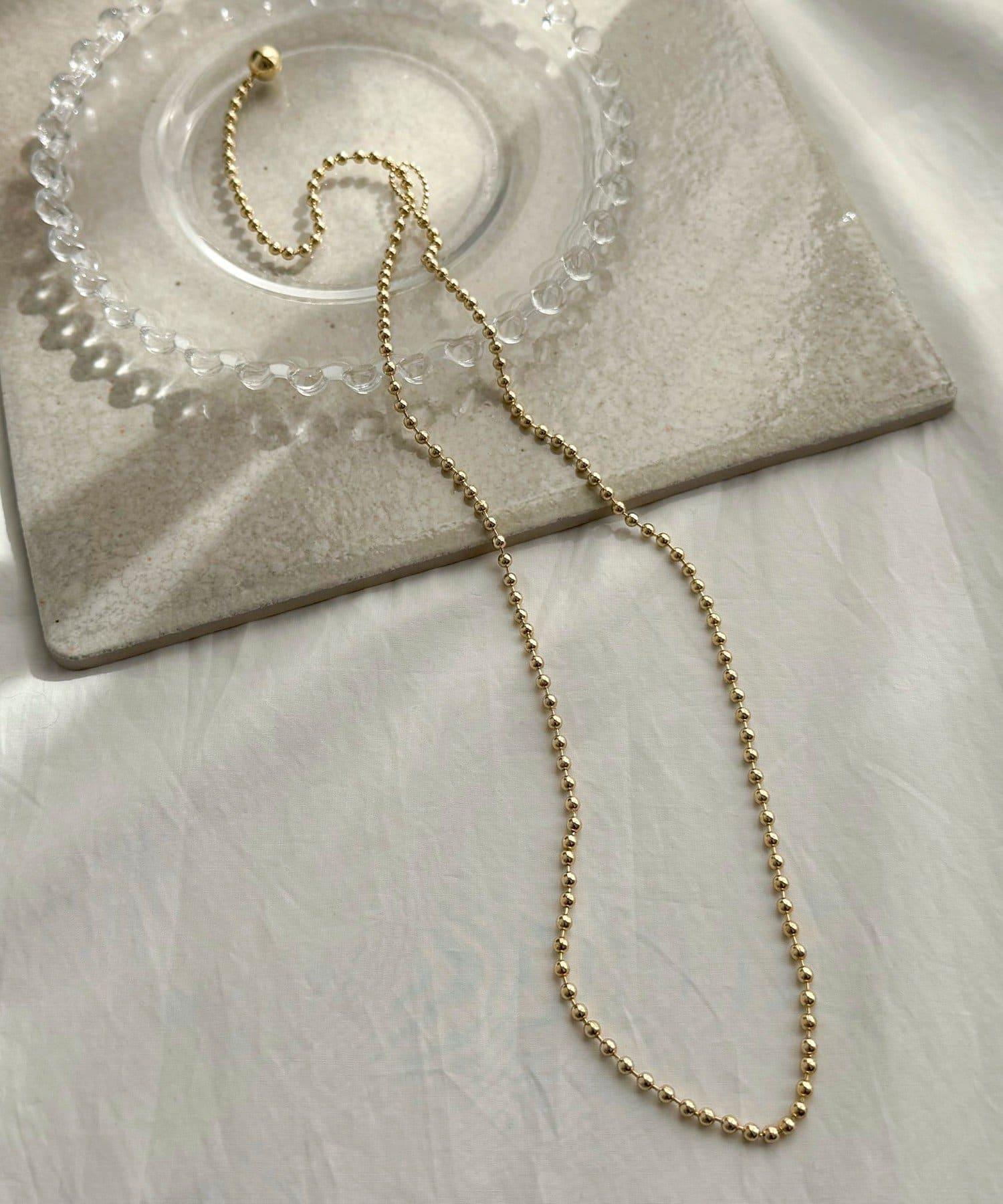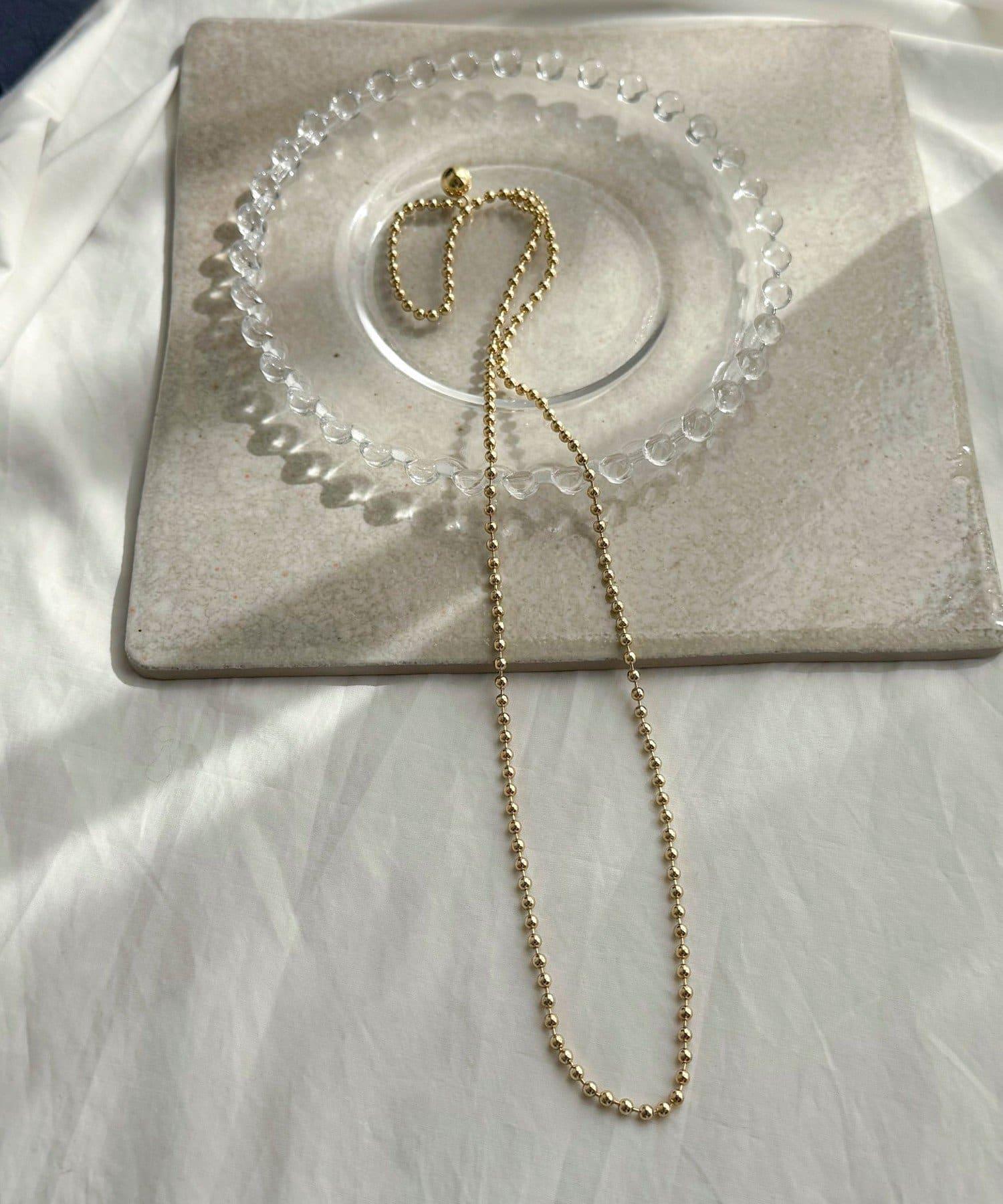 這款球鏈項鍊設計簡潔,可用於多種造型。