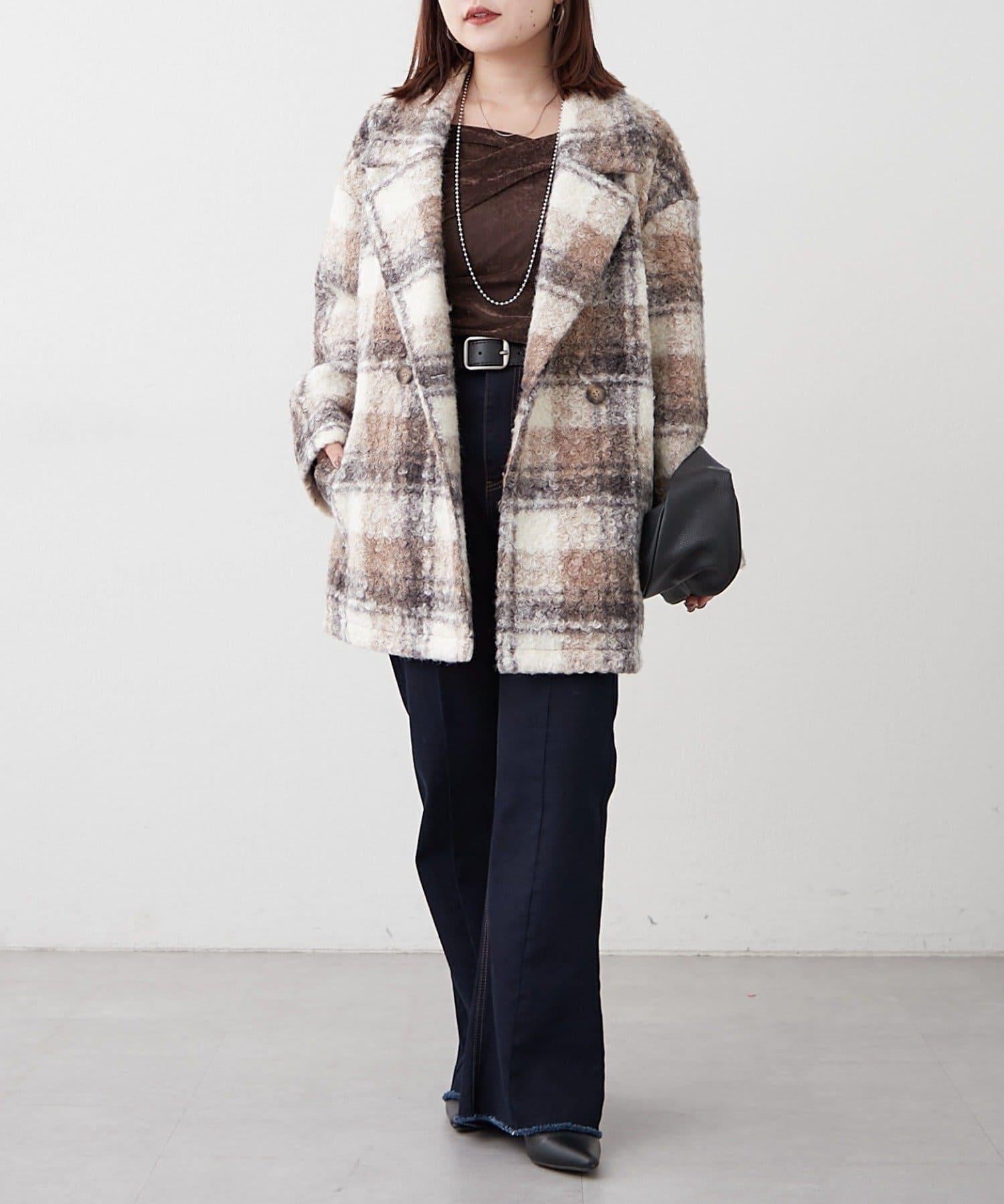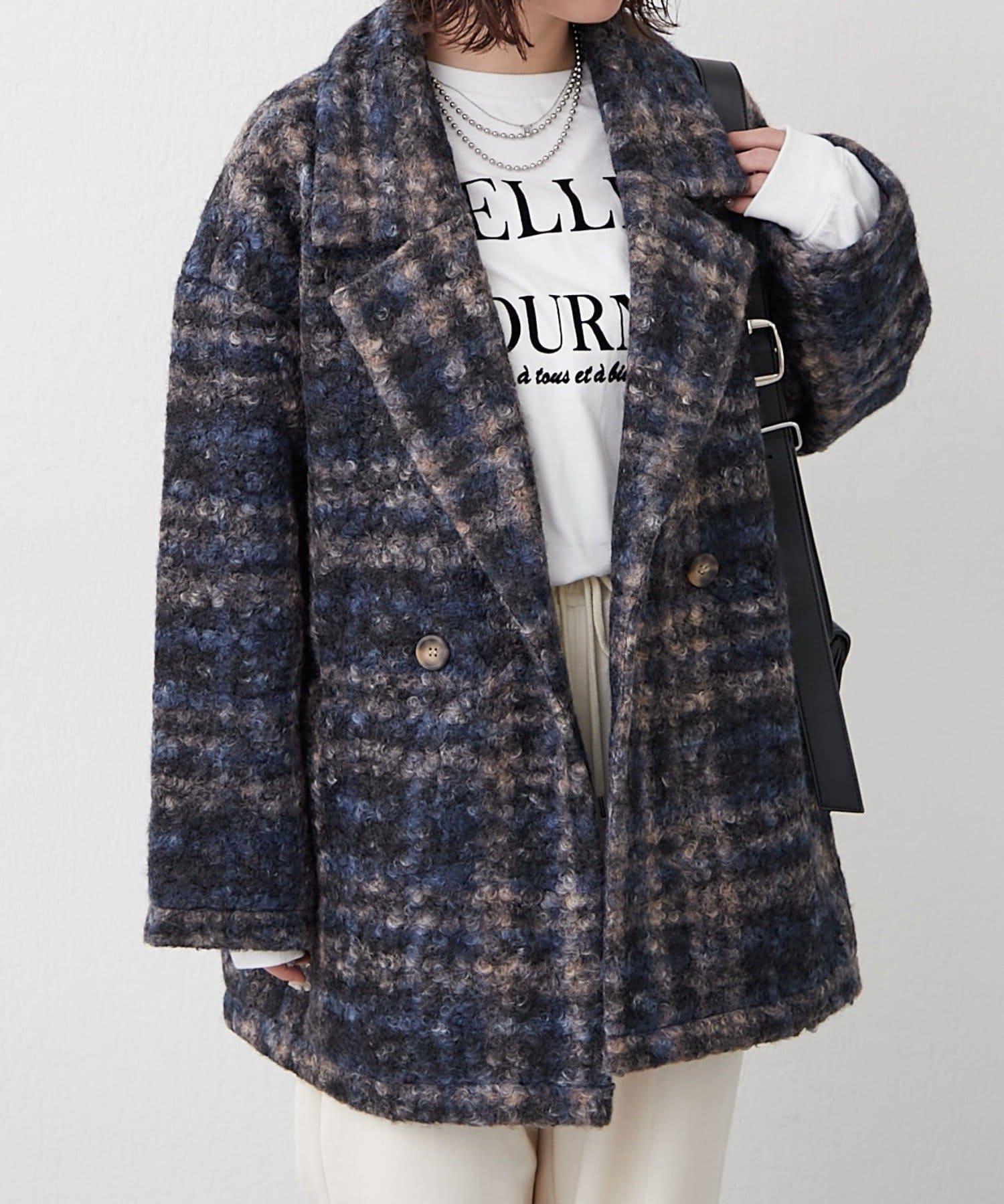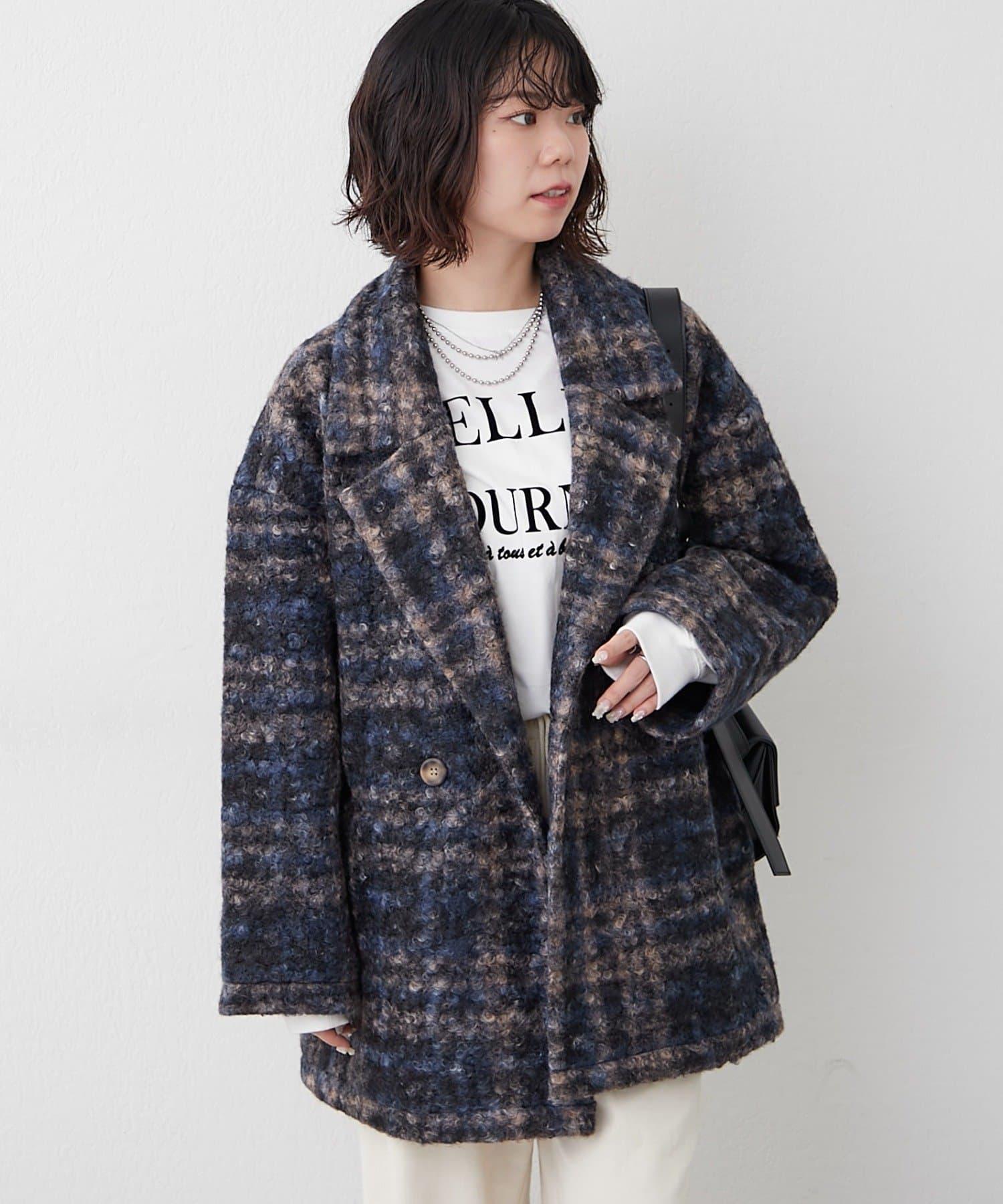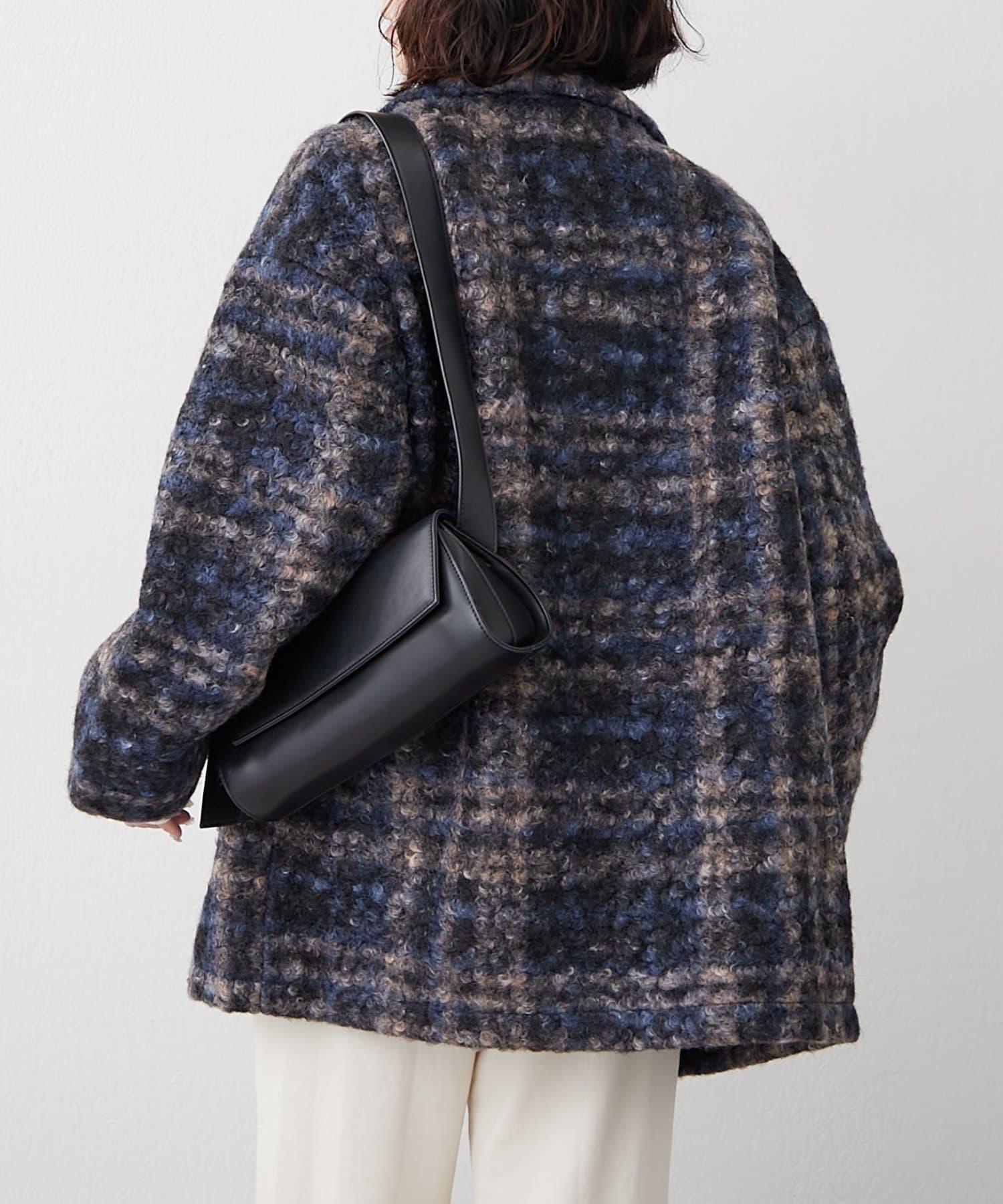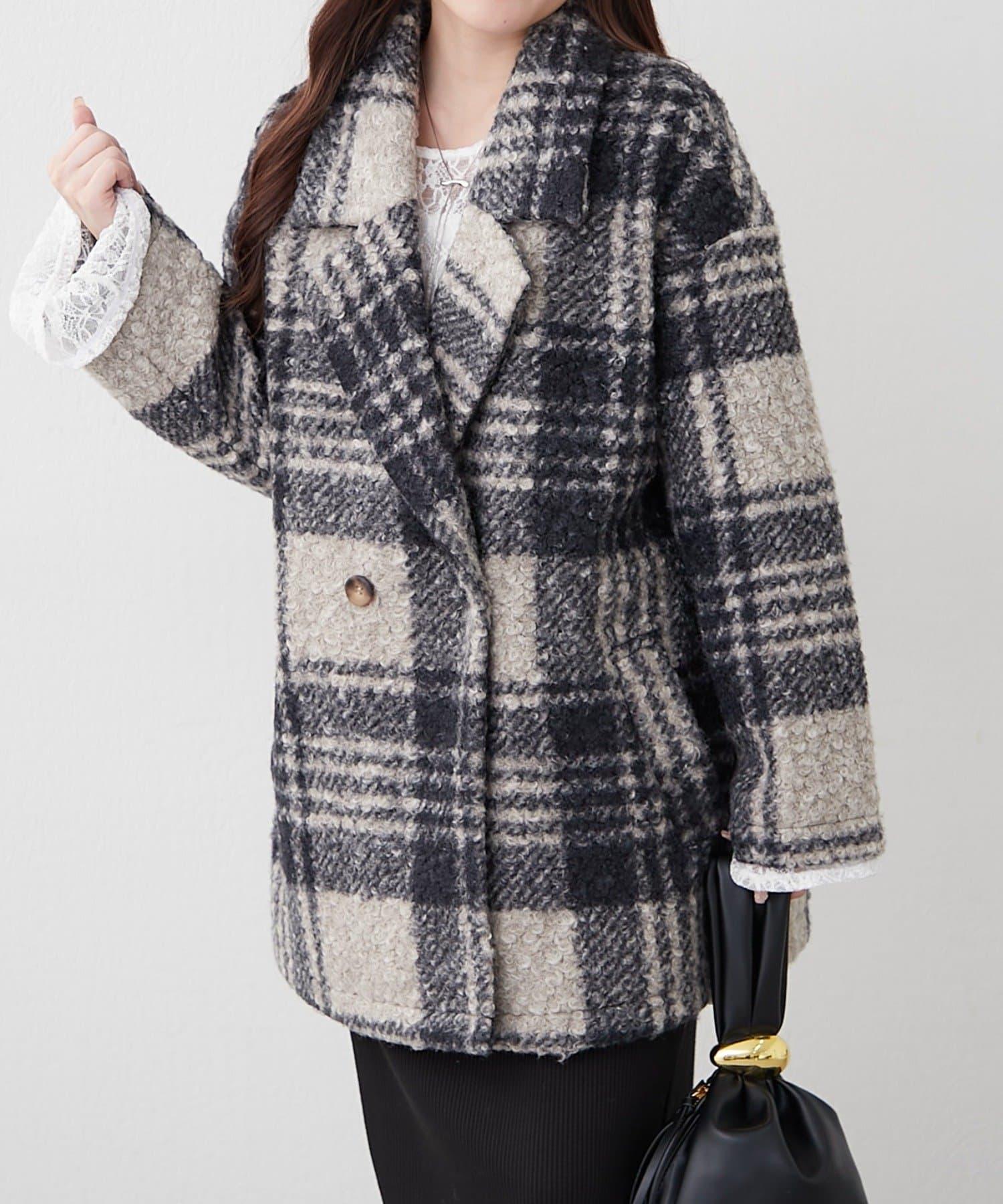 這款夾克採用捲曲的環狀羊毛面料製成,大面積的棋盤格圖案讓它成為全場的焦點。