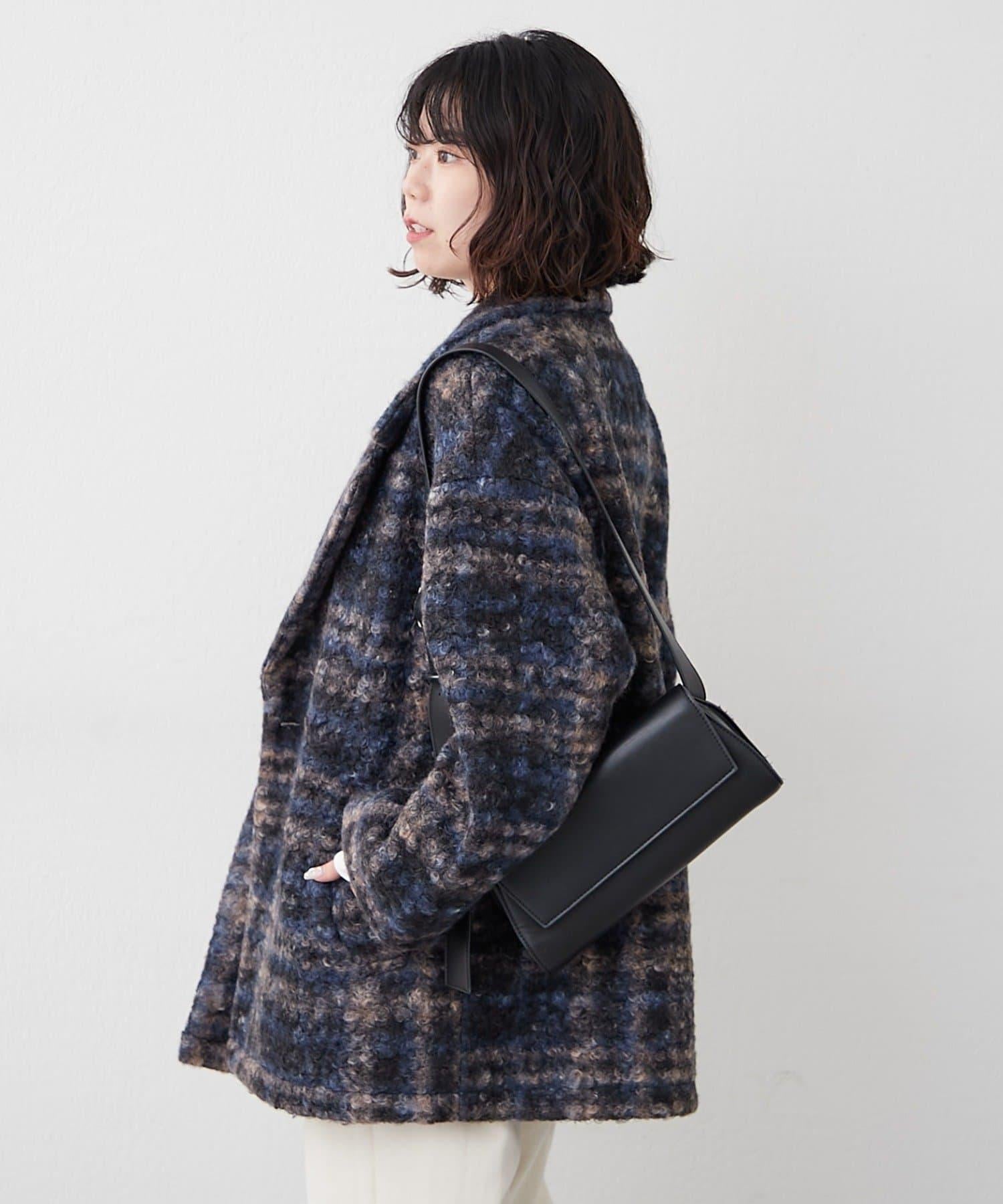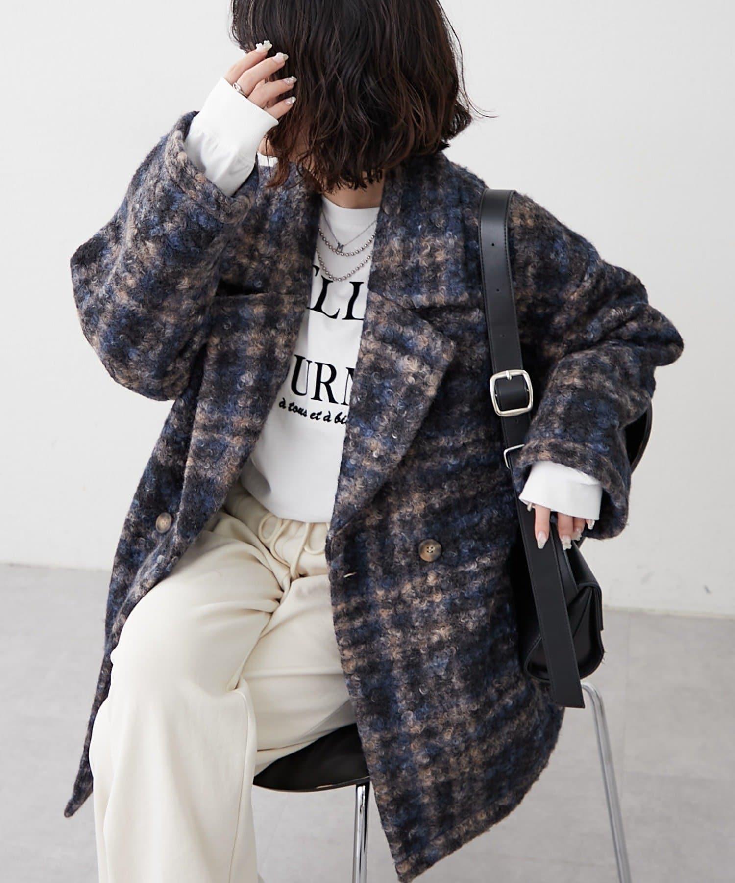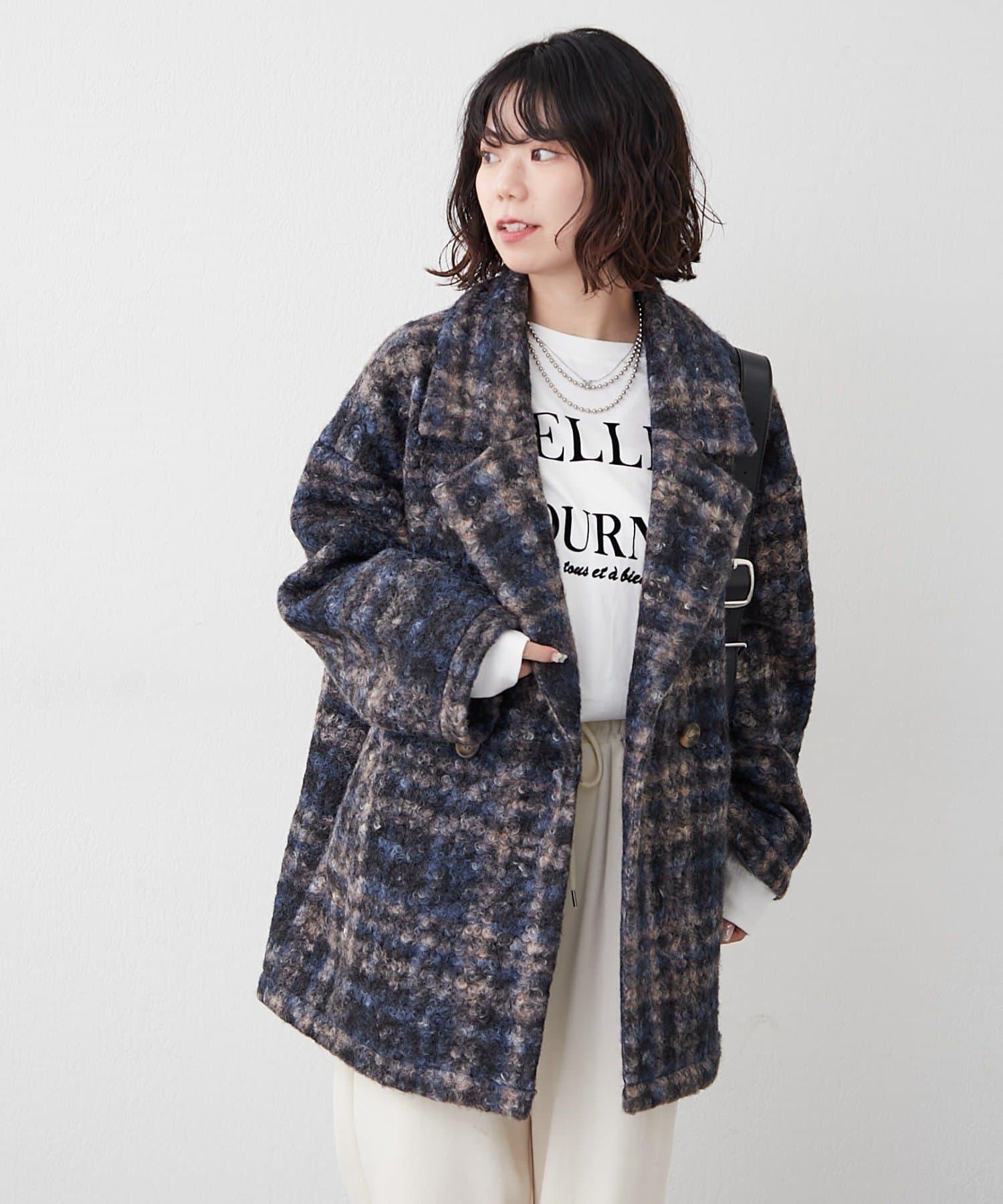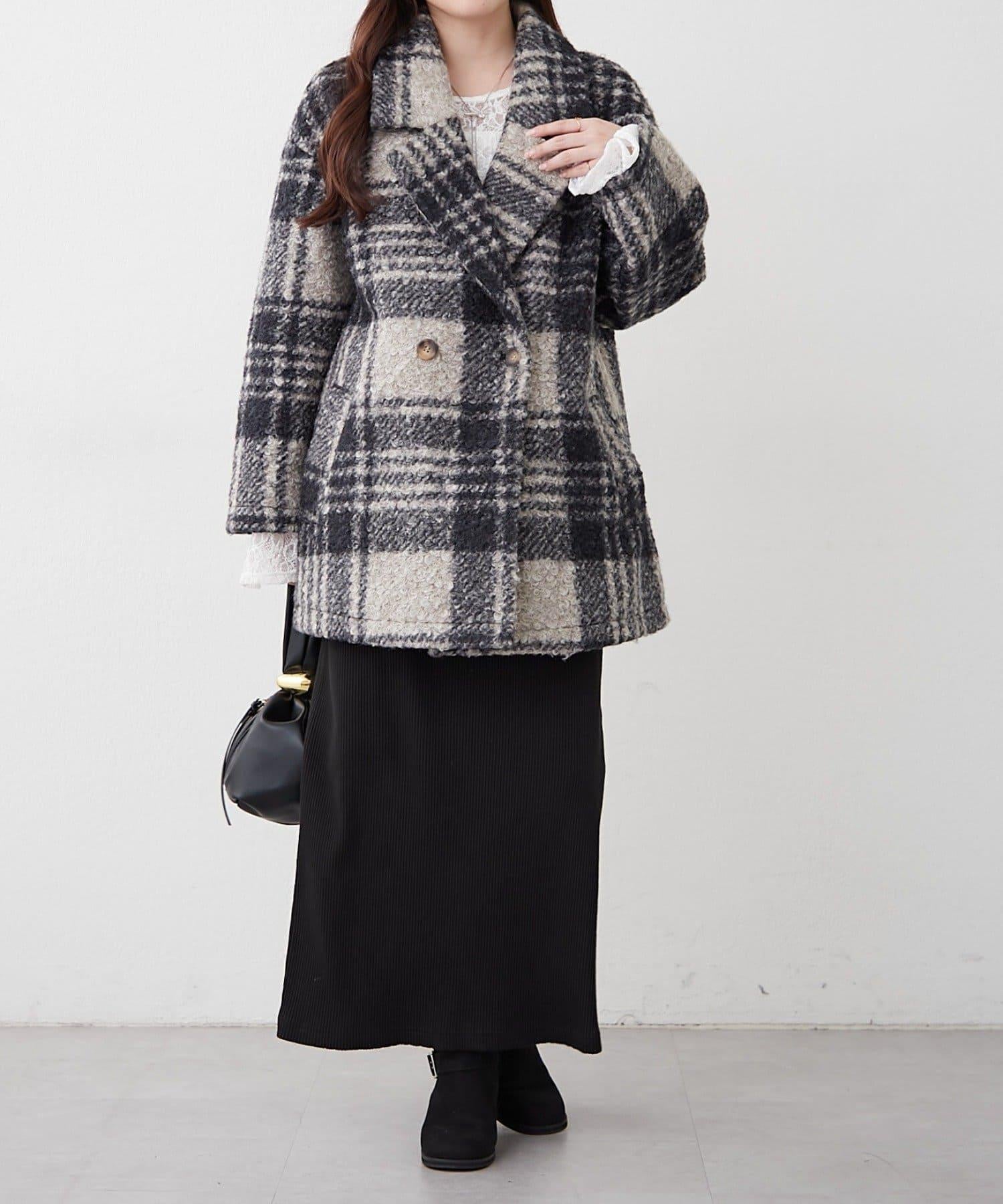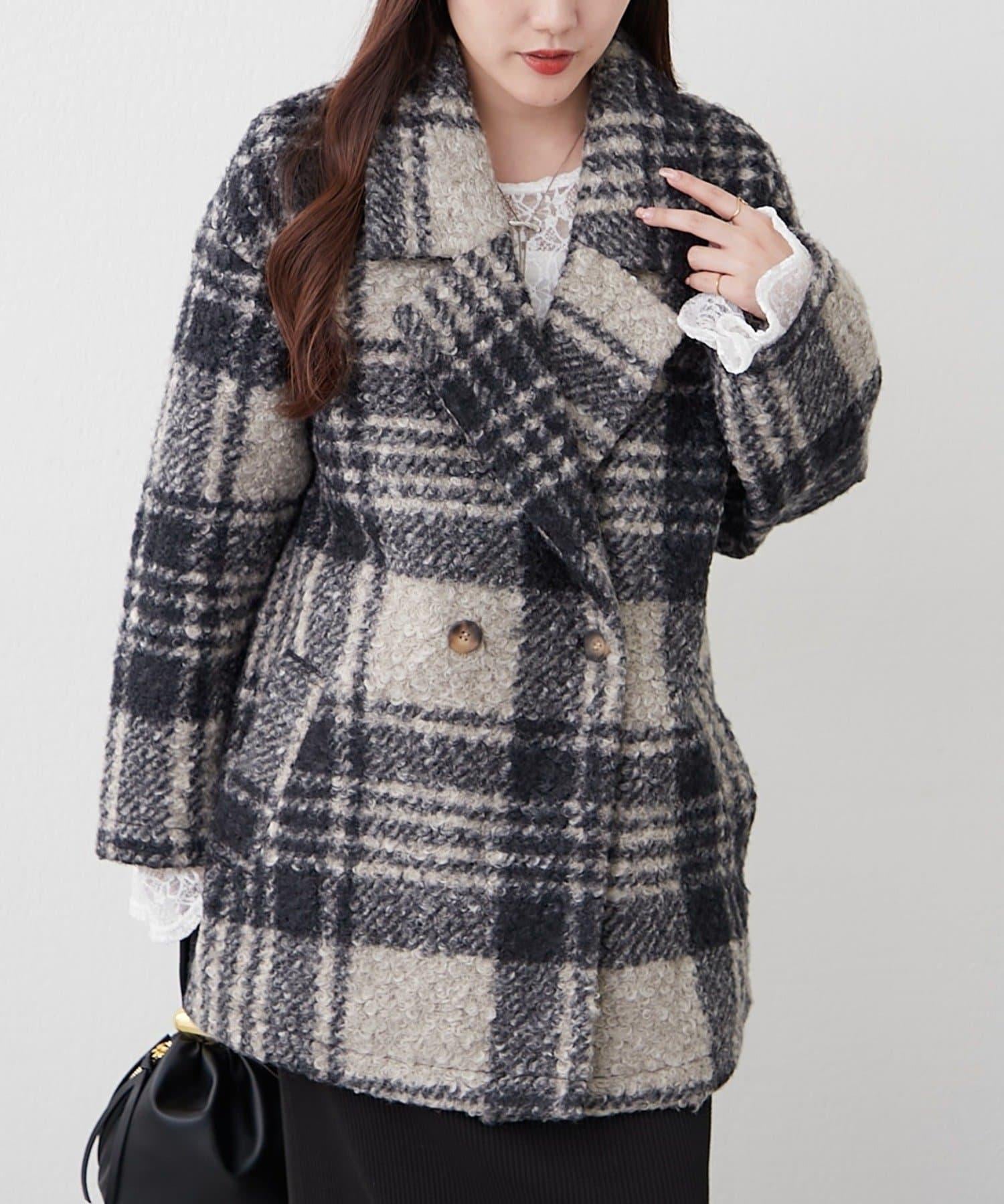 這款夾克採用捲曲的環狀羊毛面料製成,大面積的棋盤格圖案讓它成為全場的焦點。