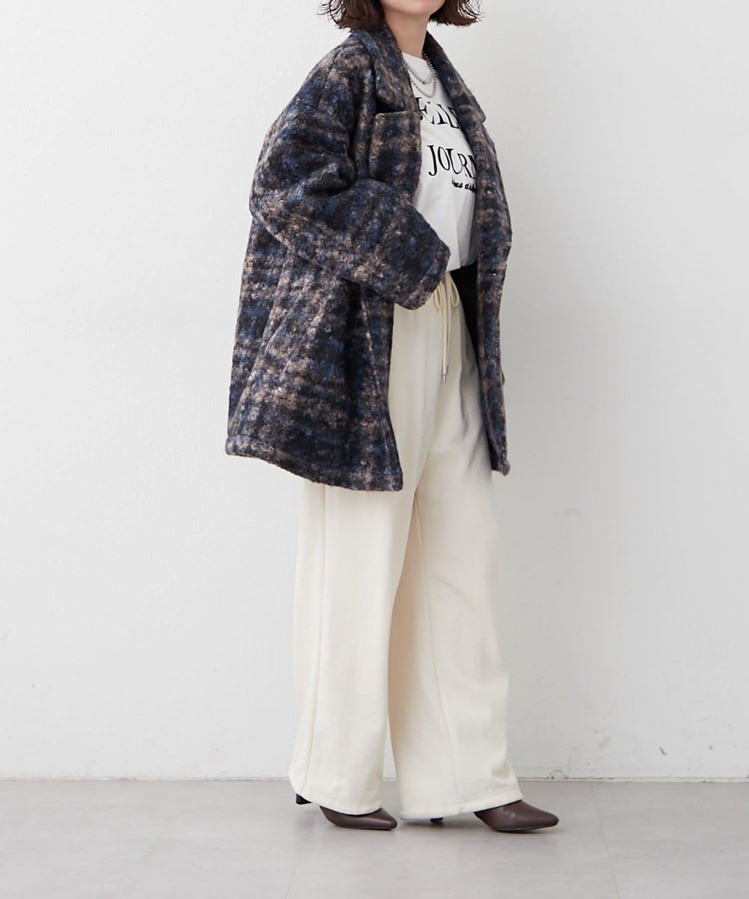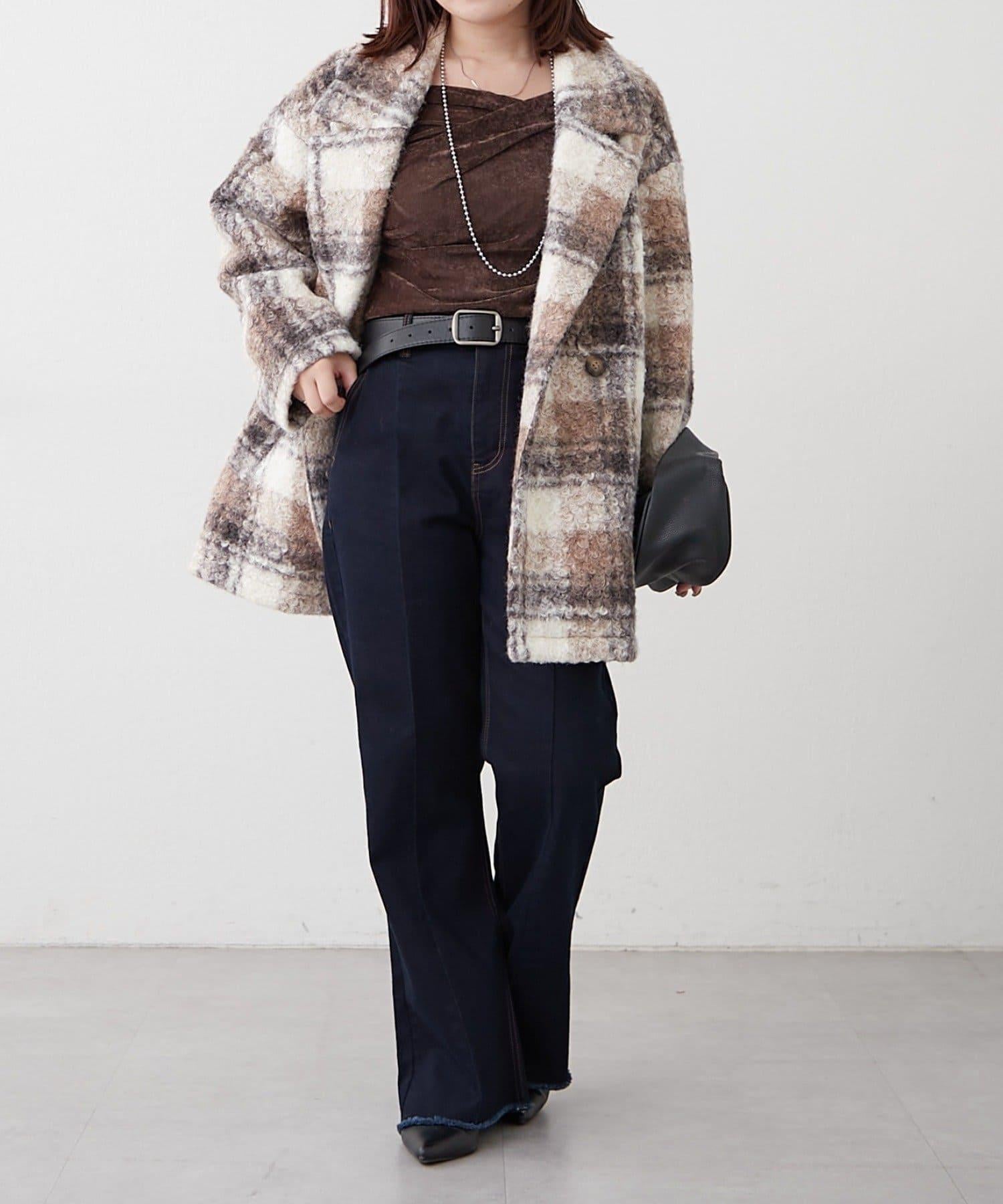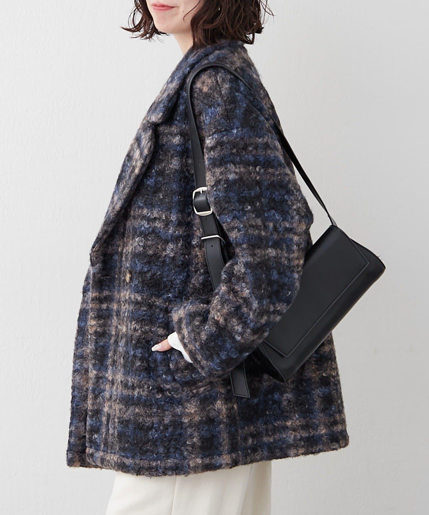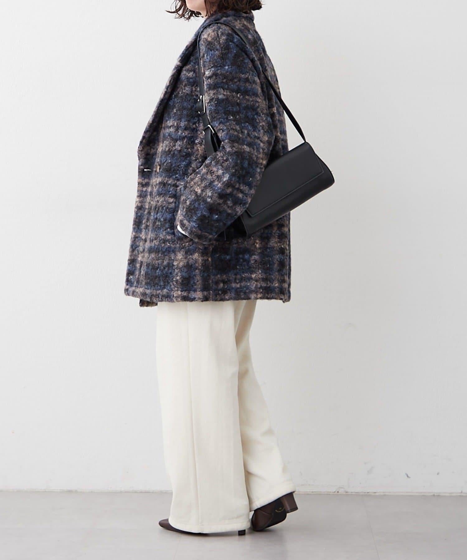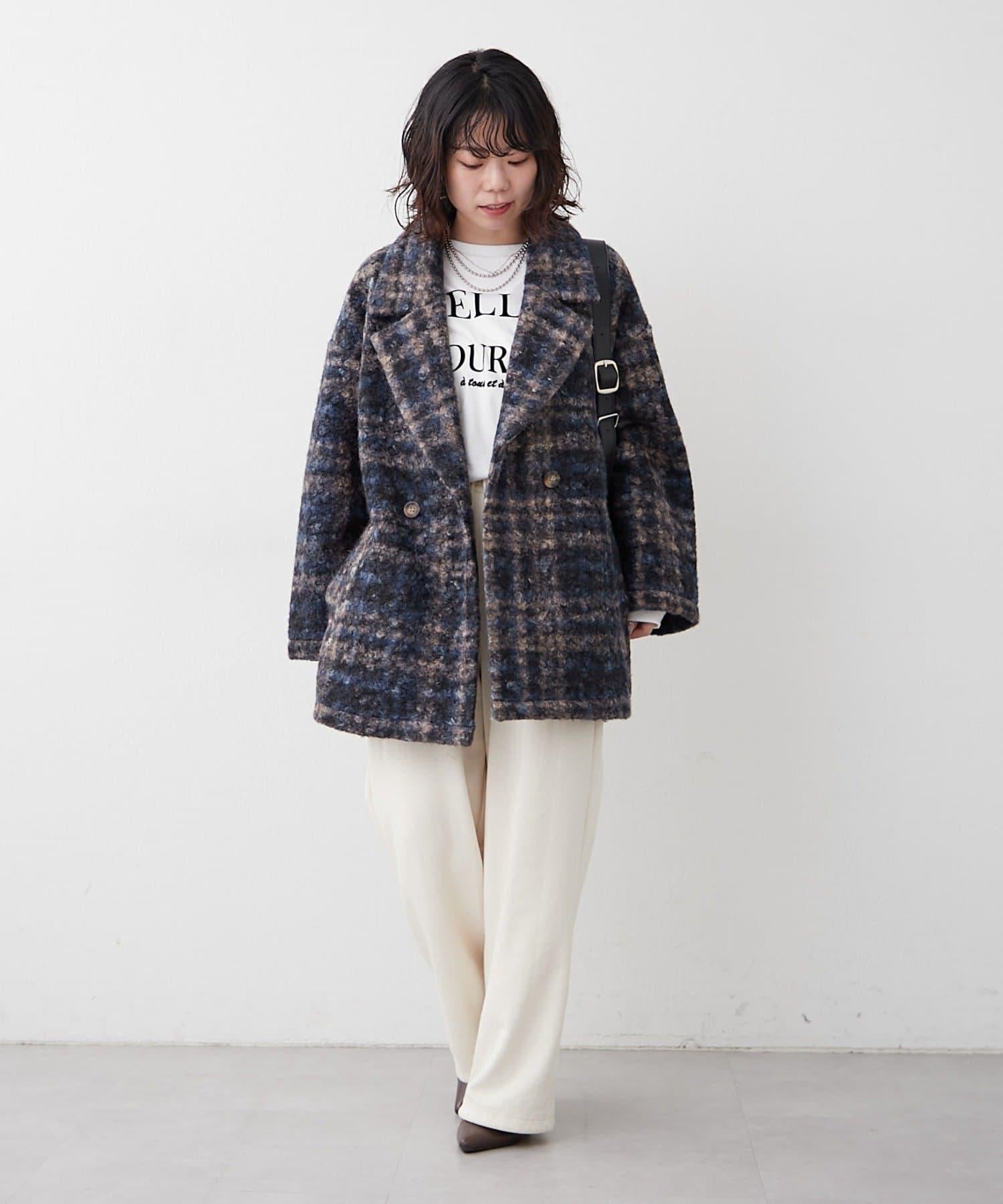 這款夾克採用捲曲的環狀羊毛面料製成,大面積的棋盤格圖案讓它成為全場的焦點。