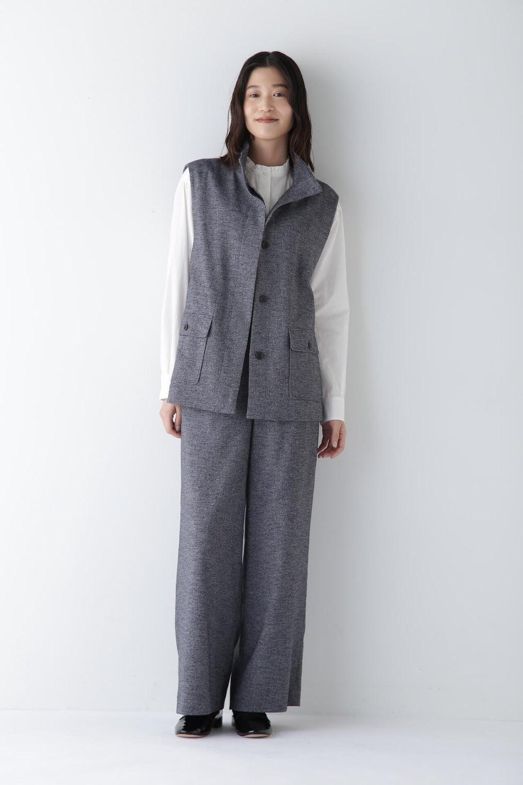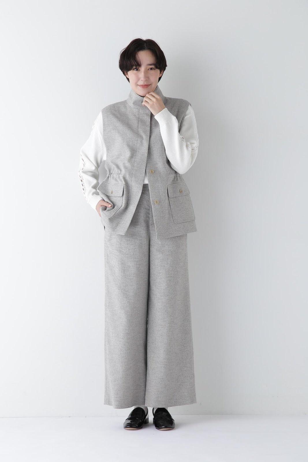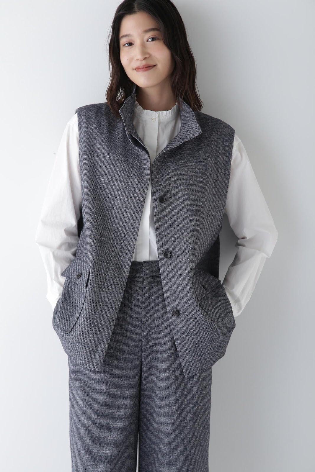 運動型揹帶褲 [設計特色] 粗花呢揹帶褲,帶有運動型揹帶褲細節。衣身後腰的雪松斜紋布帶可以拉開,打造不同的輪廓。使用的面料是 TR 粗花呢,其色彩平衡優雅,環線的不均勻度恰到好處,外觀呈混色。面料採用乾爽觸感處理,儘管外觀酷似斜紋軟呢,卻給人一種輕盈涼爽的感覺。建議搭配:運動風格搭配休閒下裝。也可與相同材質的長褲搭配。