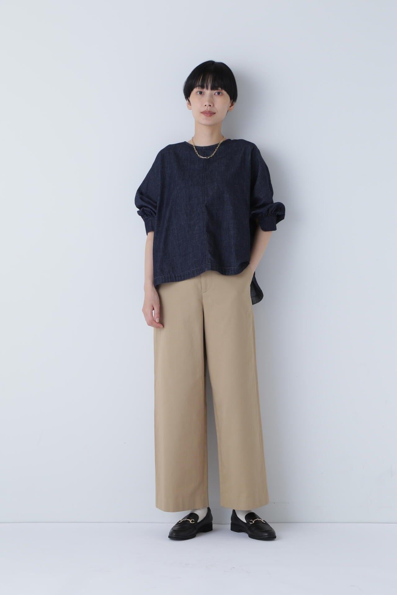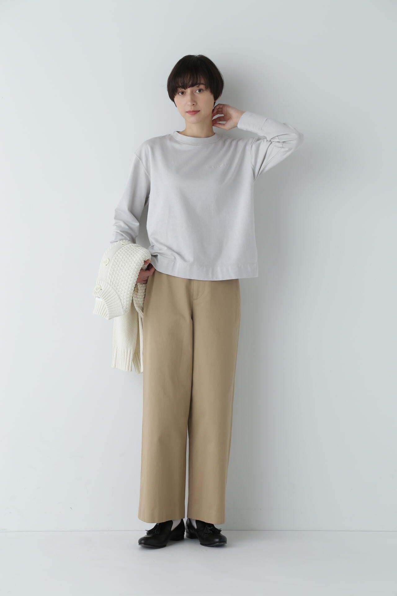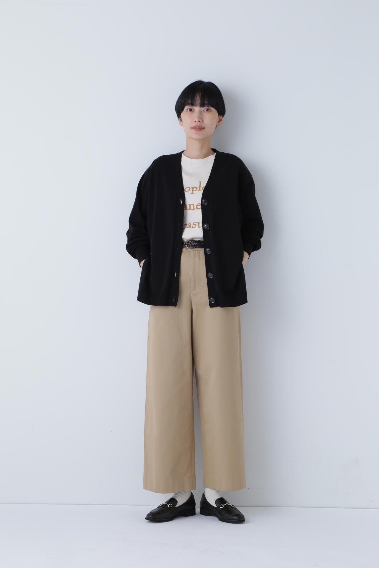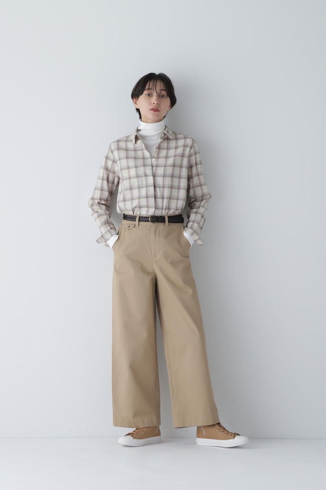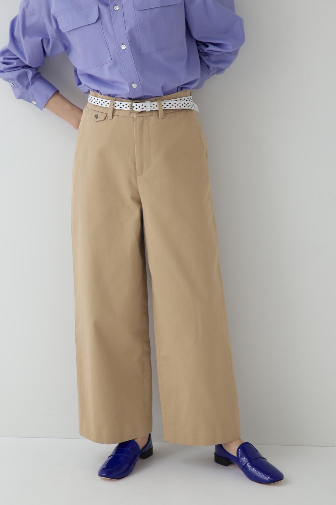 帥氣大氣的奇諾長褲 [設計要點] 正宗的奇諾長褲。腰部採用了類似奇諾長褲的男式腰身,腰部翻邊採用大理石紋腰帶剪裁。腰部飾有大理石花紋腰帶。斜紋面料由前有機棉製成。前有機棉是指種植時不使用殺蟲劑的棉花,在獲得有機棉認證前三年收穫。腰圍比去年的 chinos 稍大,給人一種停在腰部的感覺。腰圍比去年的長褲略大,有收腰的感覺。