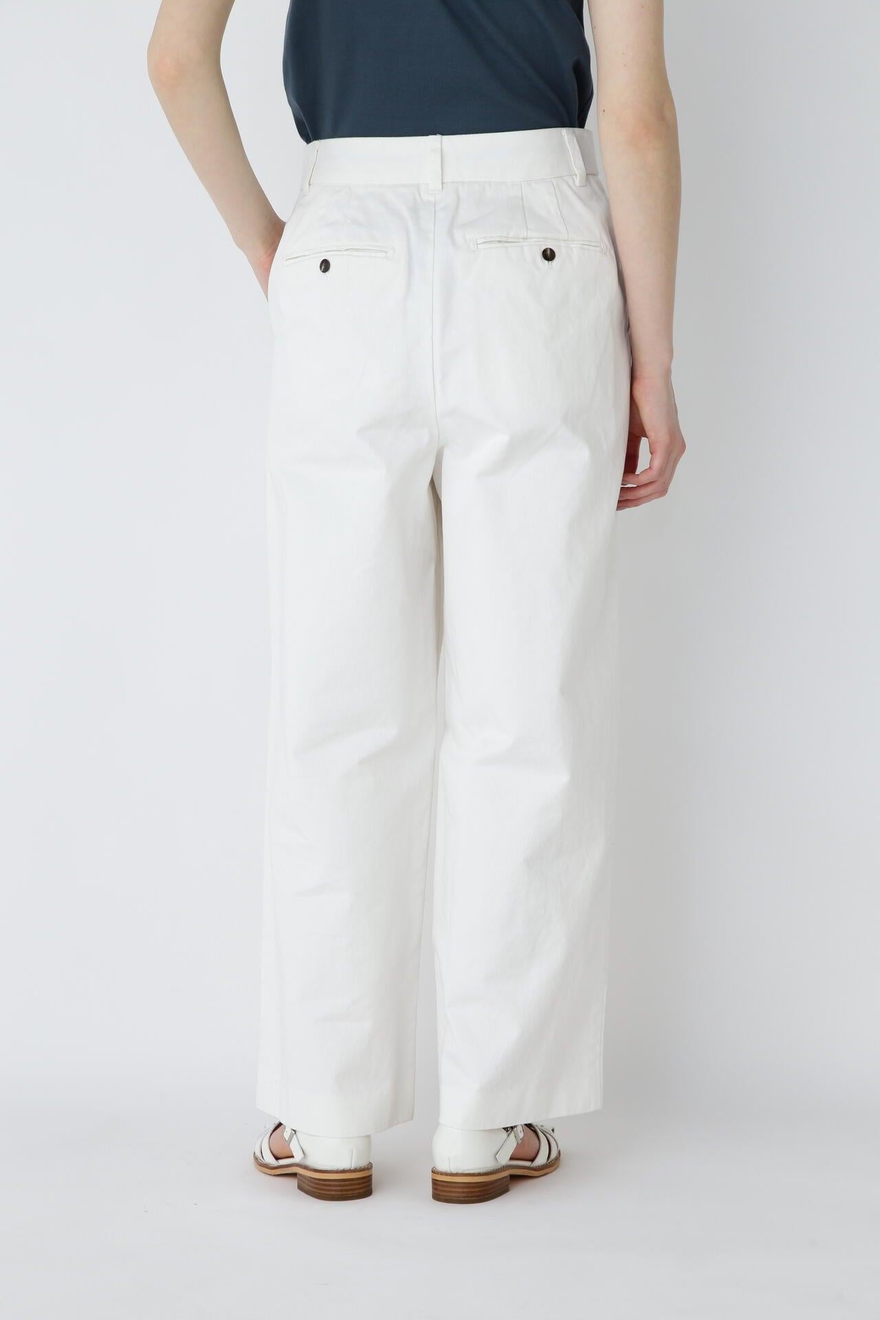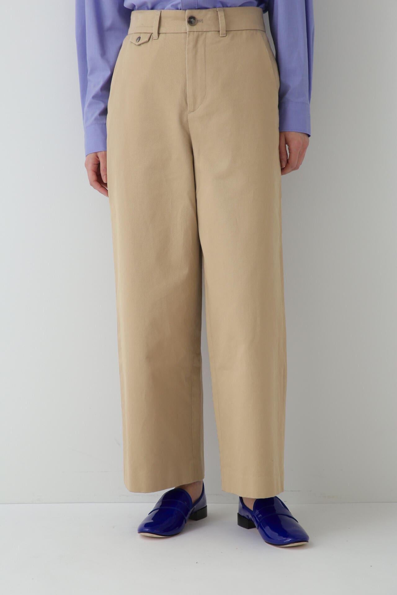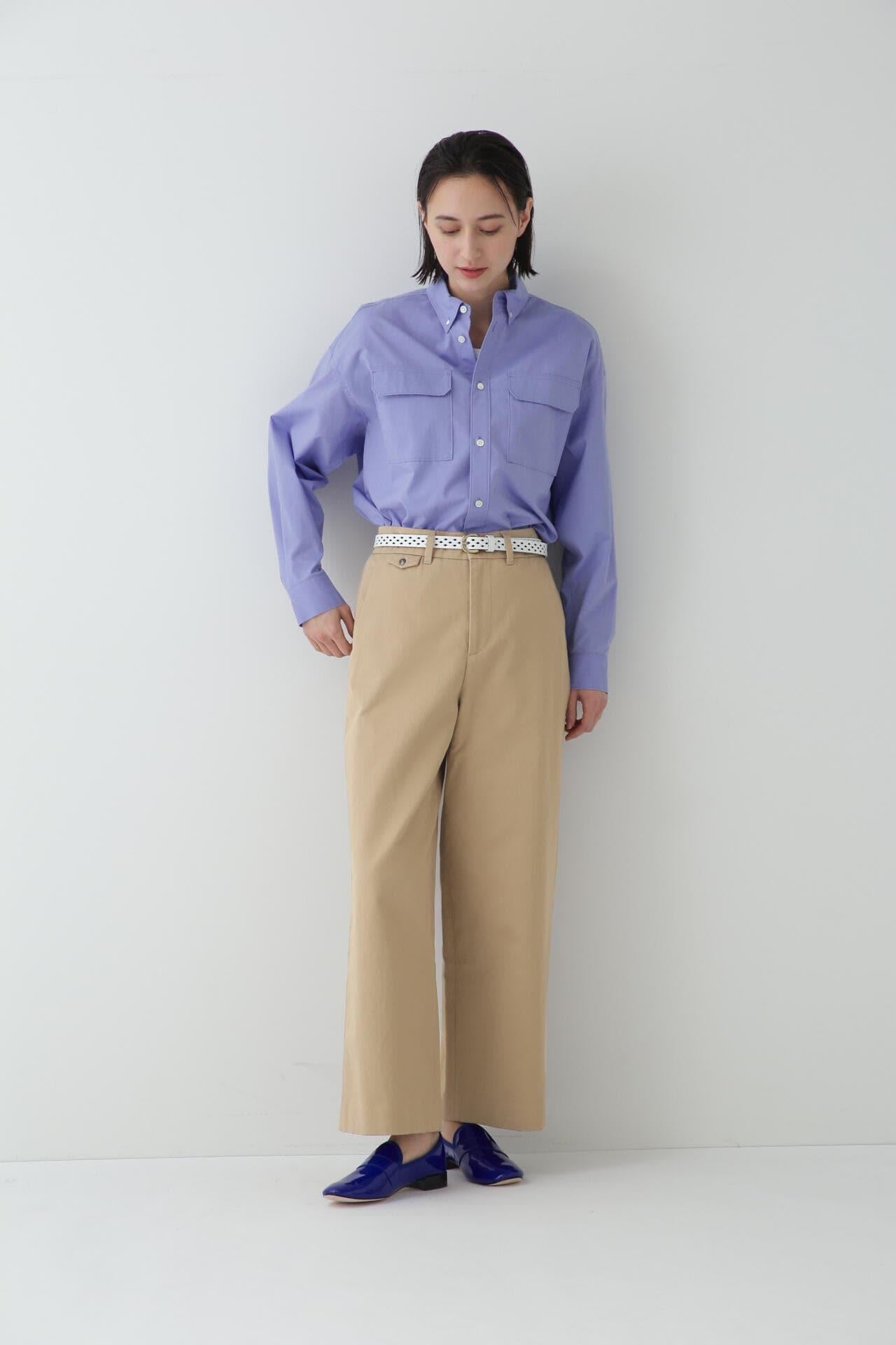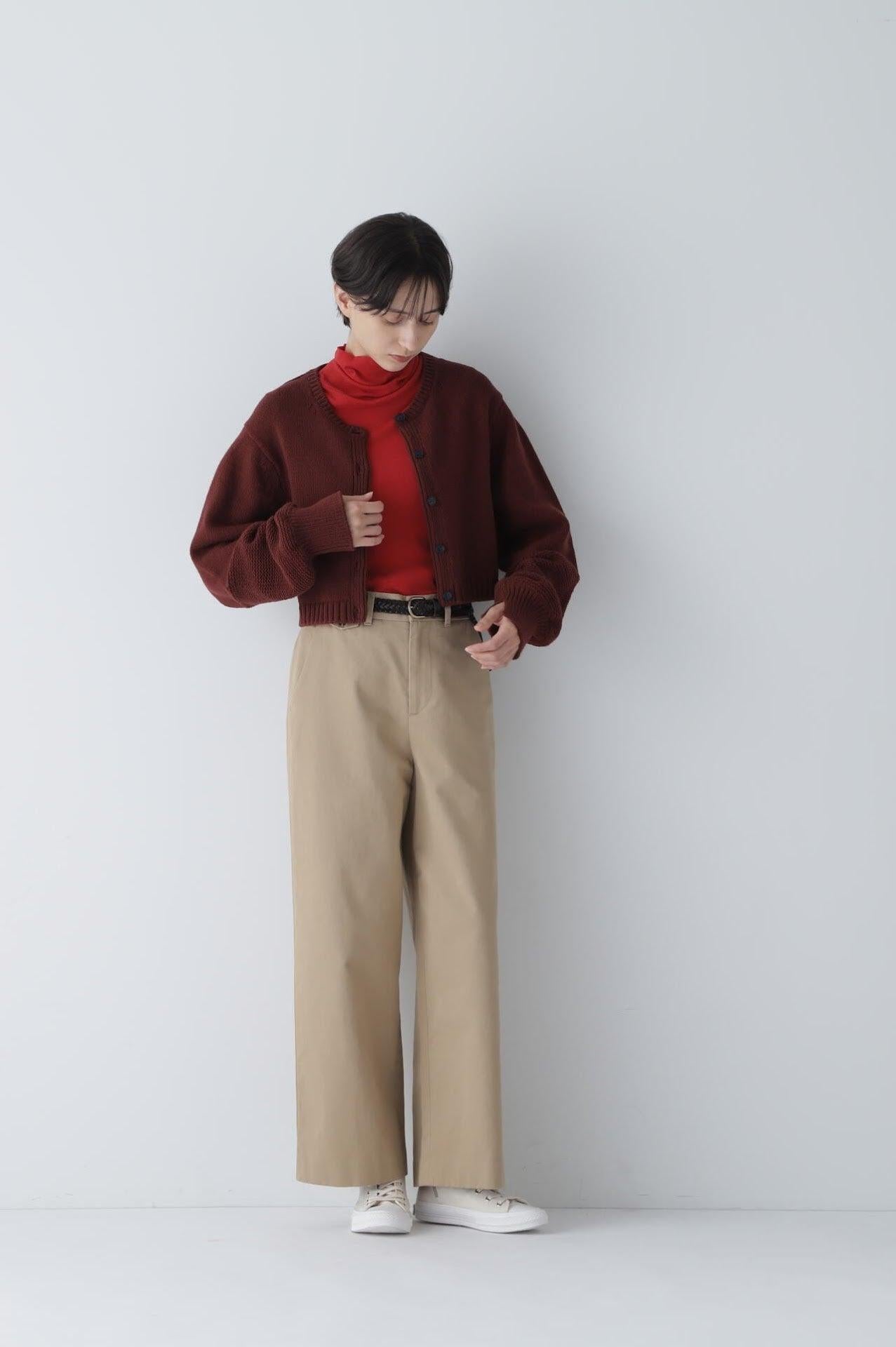 帥氣大氣的奇諾長褲 [設計要點] 正宗的奇諾長褲。腰部採用了類似奇諾長褲的男式腰身,腰部翻邊採用大理石紋腰帶剪裁。腰部飾有大理石花紋腰帶。斜紋面料由前有機棉製成。前有機棉是指種植時不使用殺蟲劑的棉花,在獲得有機棉認證前三年收穫。腰圍比去年的 chinos 稍大,給人一種停在腰部的感覺。腰圍比去年的長褲略大,有收腰的感覺。