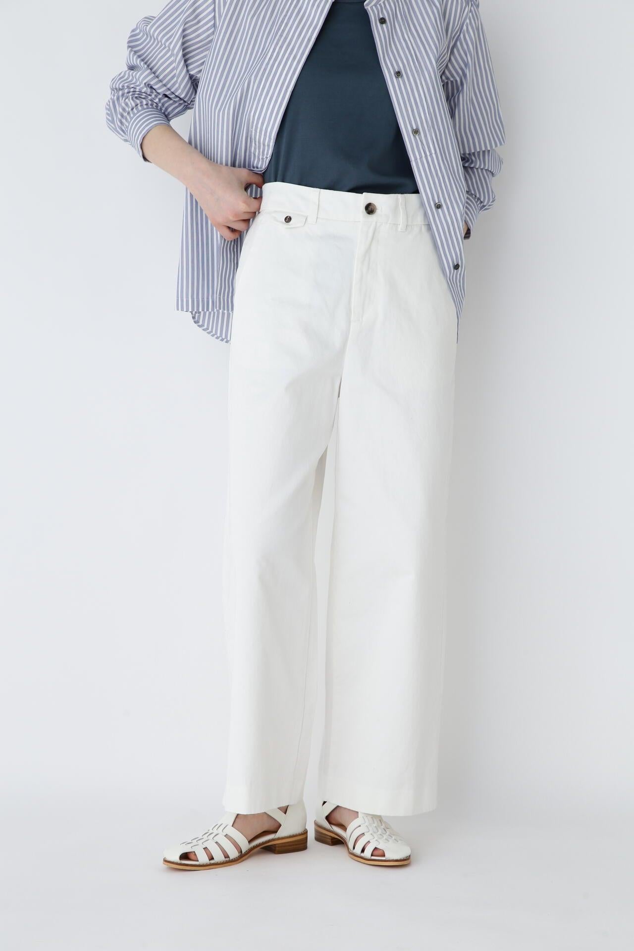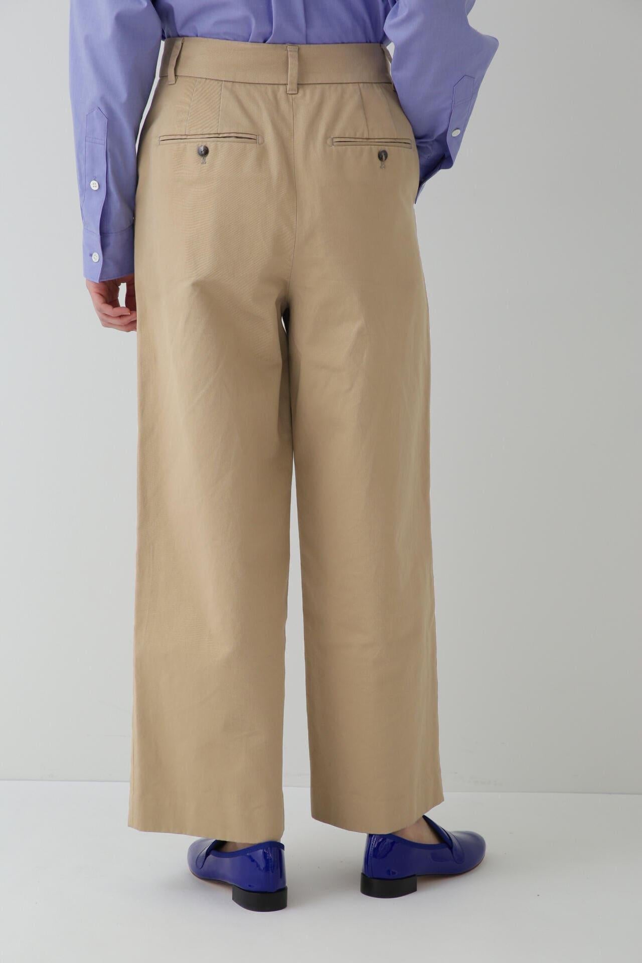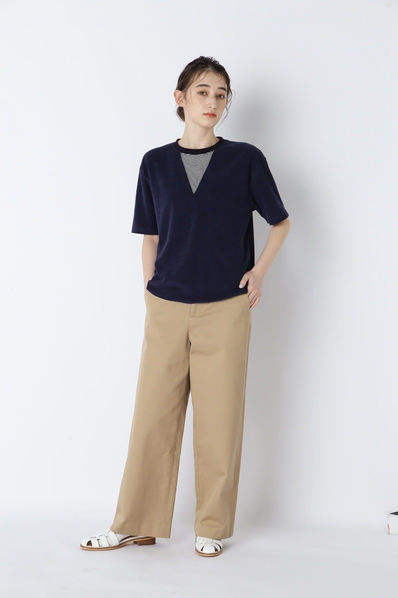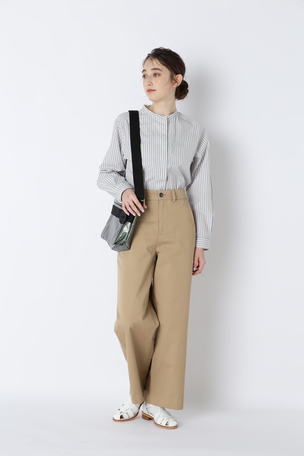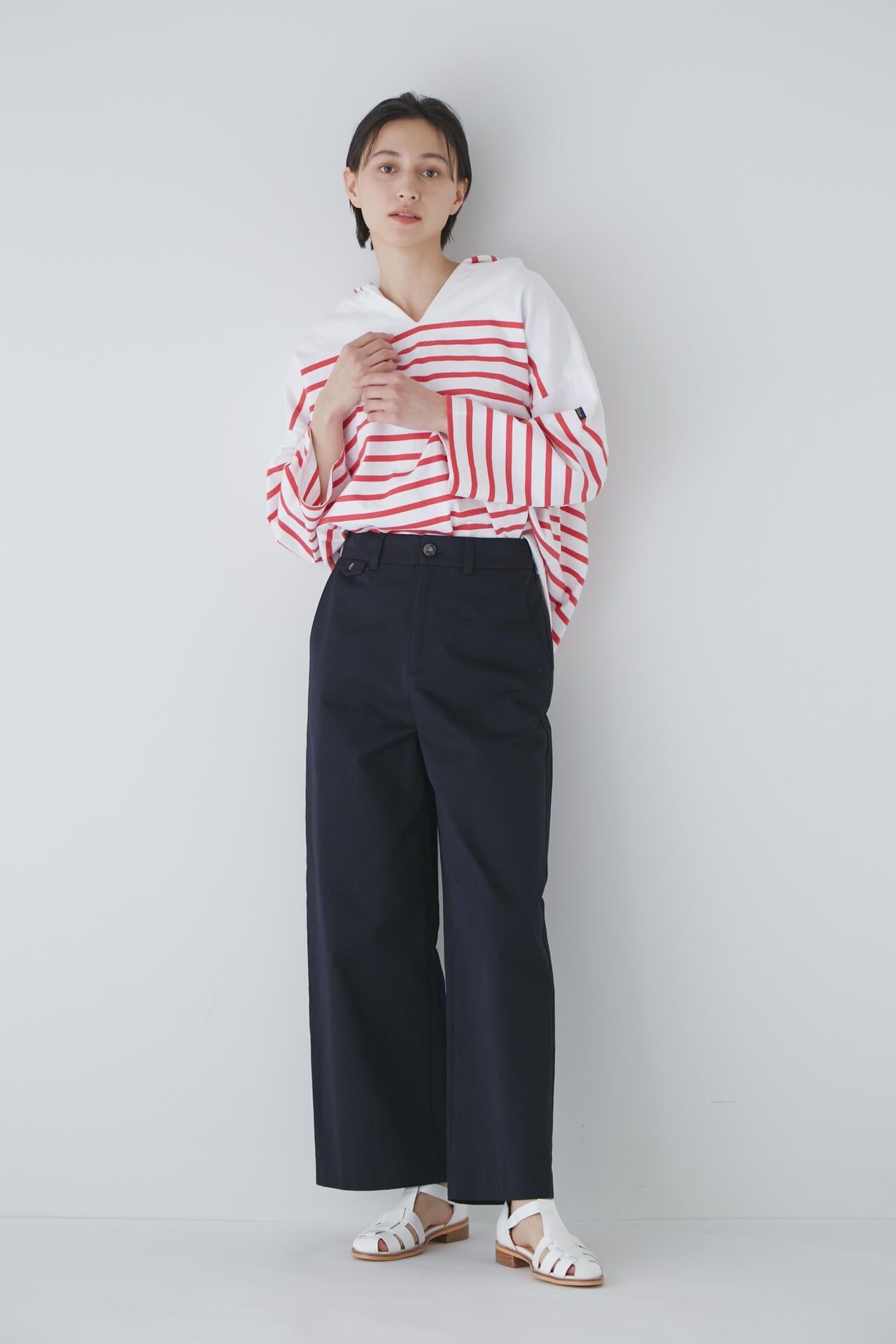 帥氣大氣的奇諾長褲 [設計要點] 正宗的奇諾長褲。腰部採用了類似奇諾長褲的男式腰身,腰部翻邊採用大理石紋腰帶剪裁。腰部飾有大理石花紋腰帶。斜紋面料由前有機棉製成。前有機棉是指種植時不使用殺蟲劑的棉花,在獲得有機棉認證前三年收穫。腰圍比去年的 chinos 稍大,給人一種停在腰部的感覺。腰圍比去年的長褲略大,有收腰的感覺。