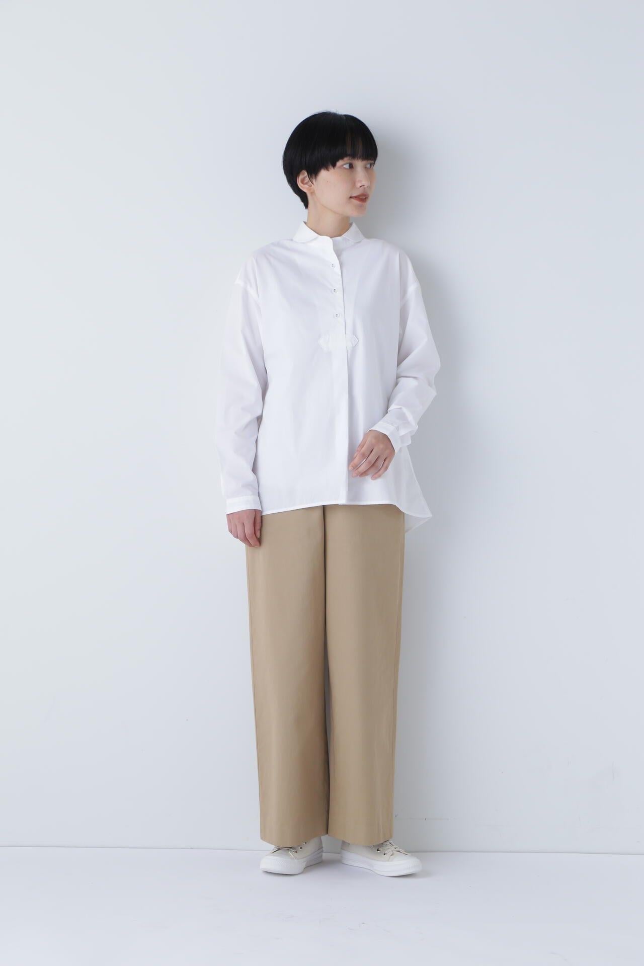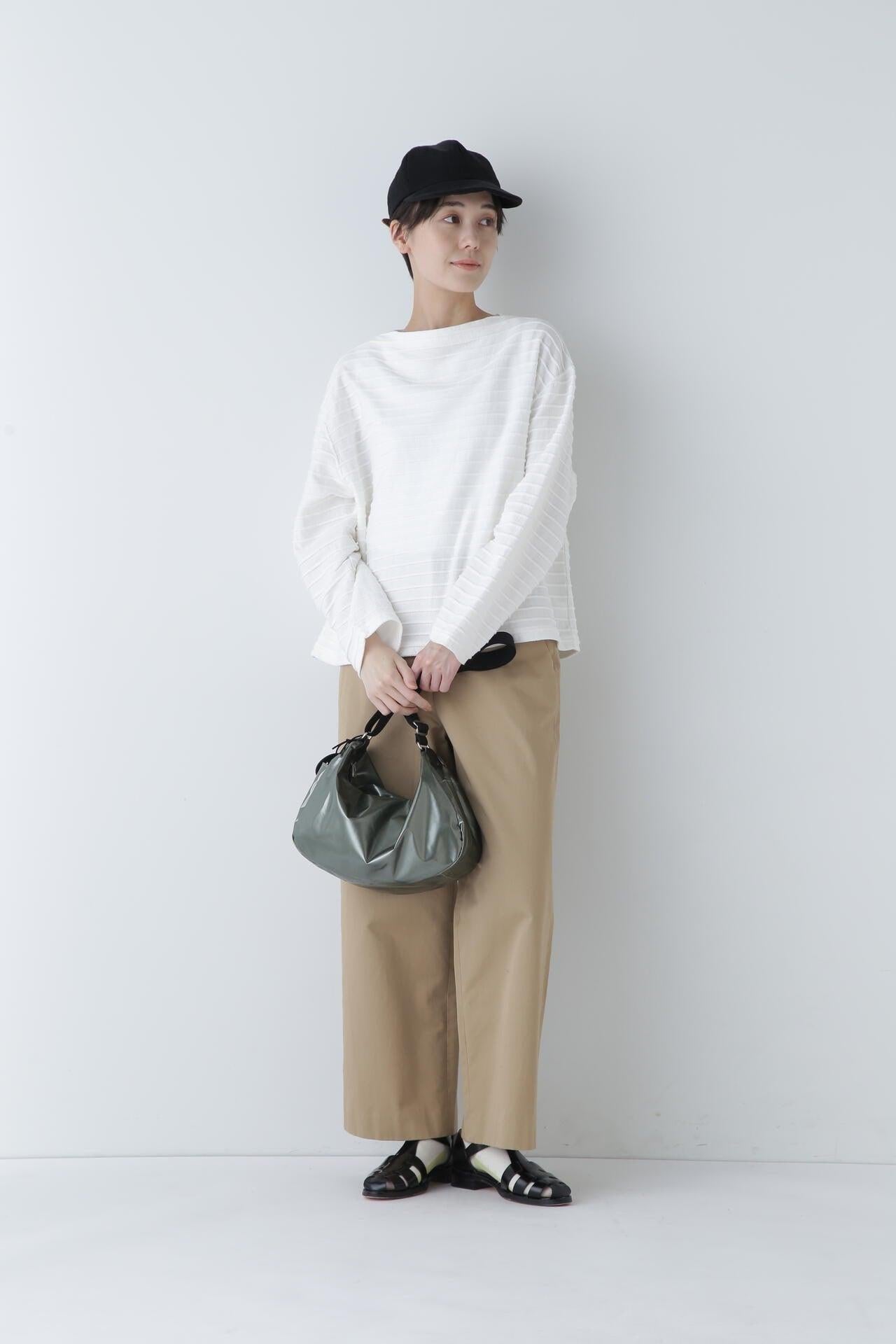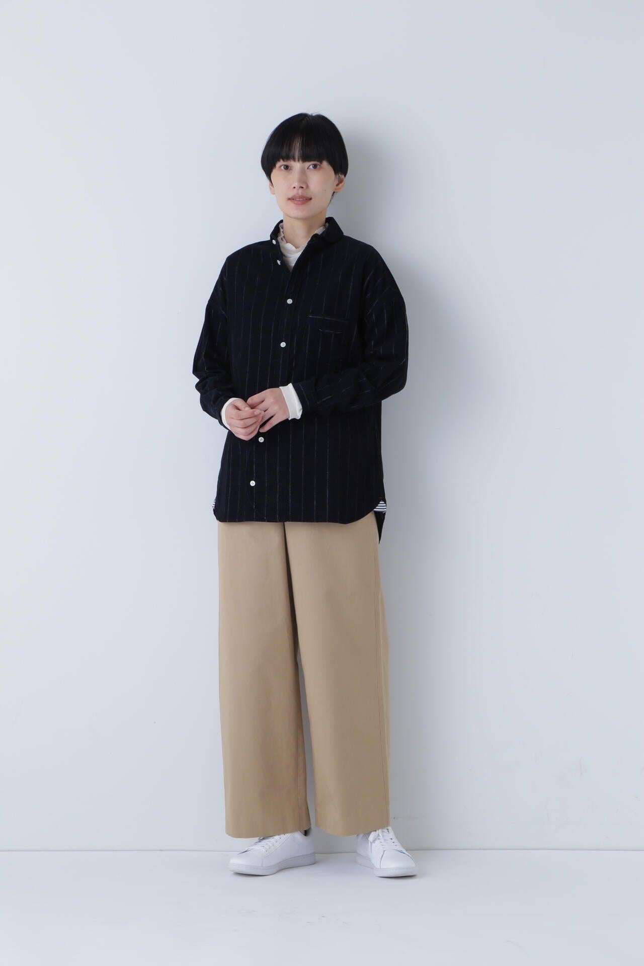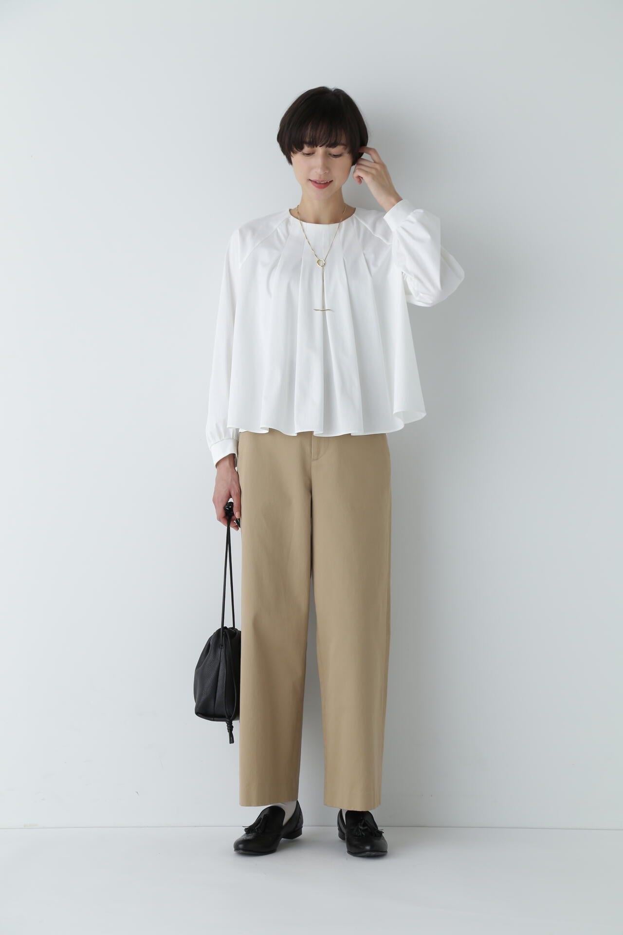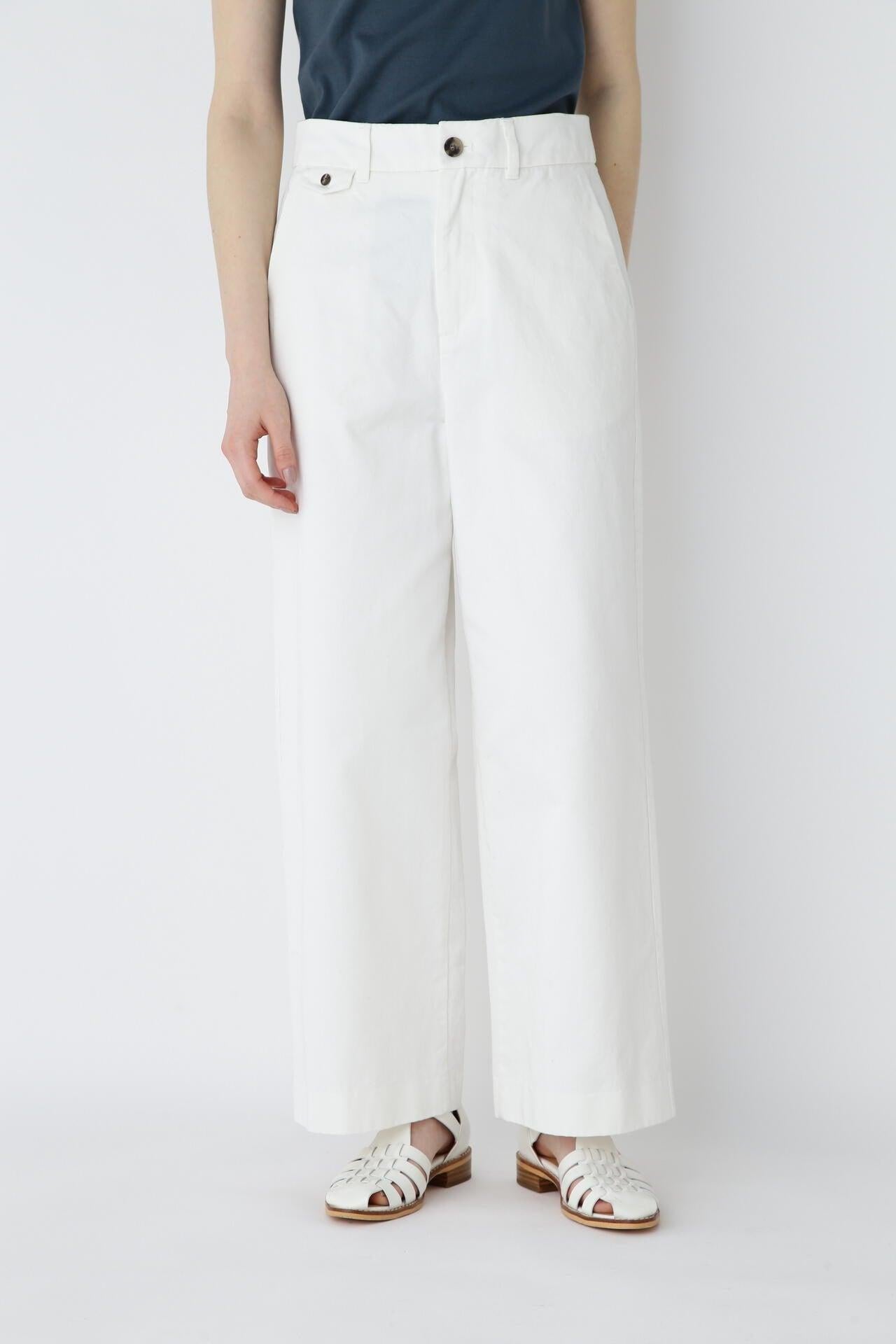 帥氣大氣的奇諾長褲 [設計要點] 正宗的奇諾長褲。腰部採用了類似奇諾長褲的男式腰身,腰部翻邊採用大理石紋腰帶剪裁。腰部飾有大理石花紋腰帶。斜紋面料由前有機棉製成。前有機棉是指種植時不使用殺蟲劑的棉花,在獲得有機棉認證前三年收穫。腰圍比去年的 chinos 稍大,給人一種停在腰部的感覺。腰圍比去年的長褲略大,有收腰的感覺。