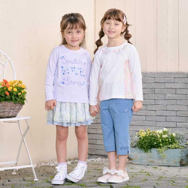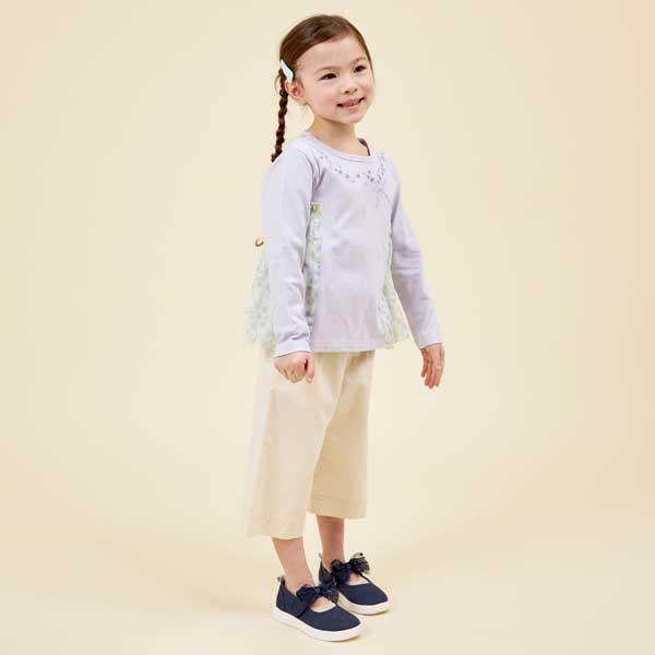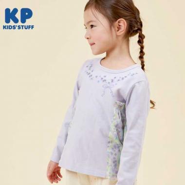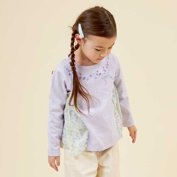甜豌豆花紋雪紡拼接T恤(100~130)