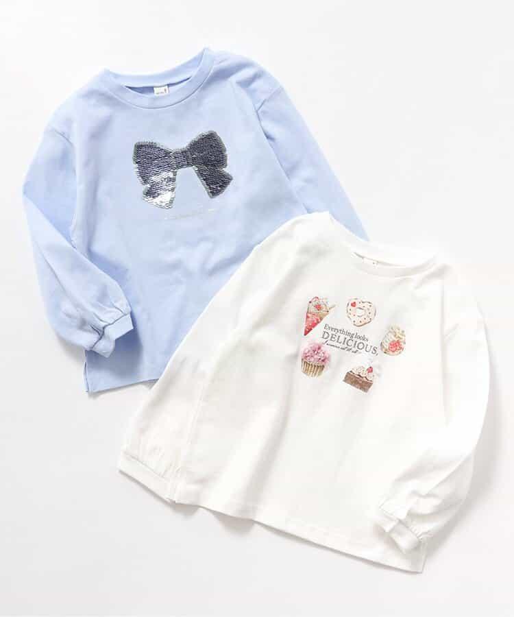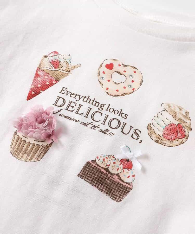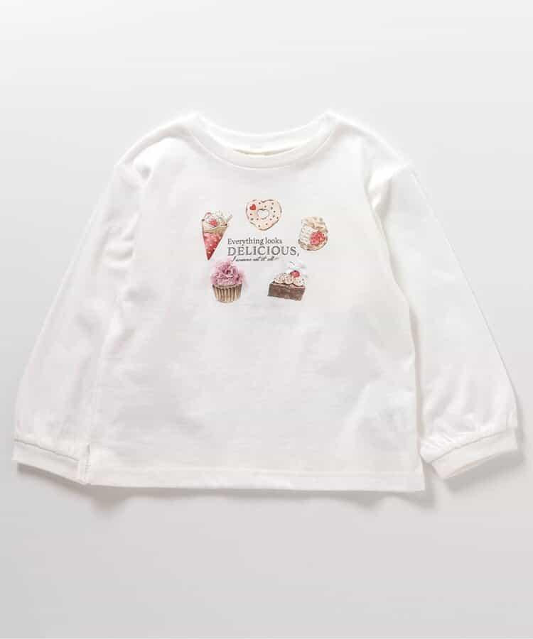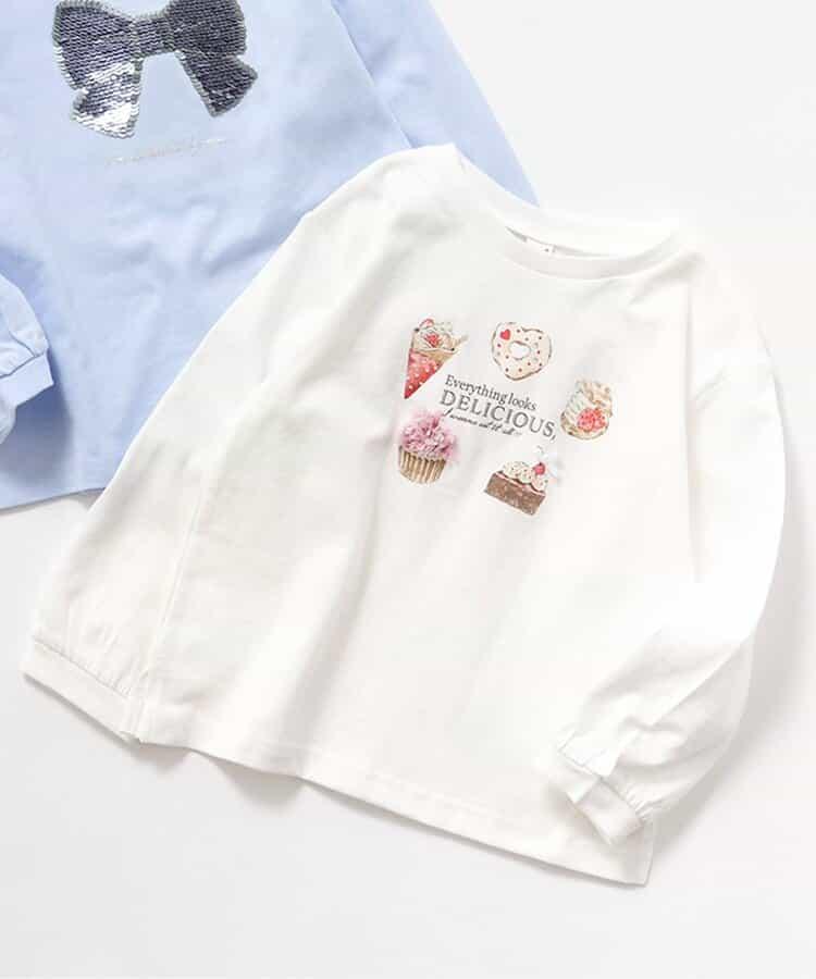 apres les cours 長袖 T 恤 "Sweets Ribbon Motif T 恤 "是一款時尚單品,為自然風格增添了微妙的設計*。