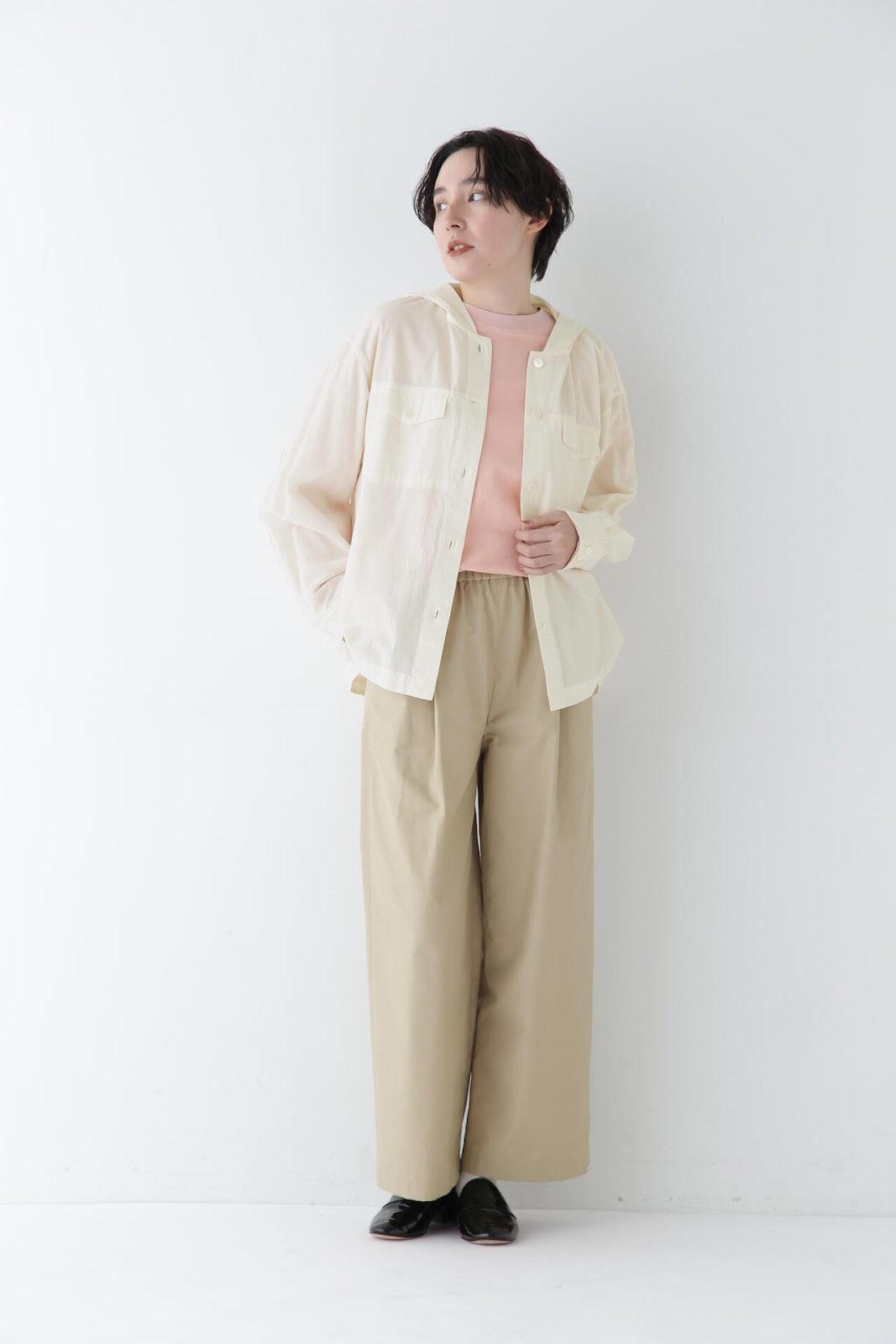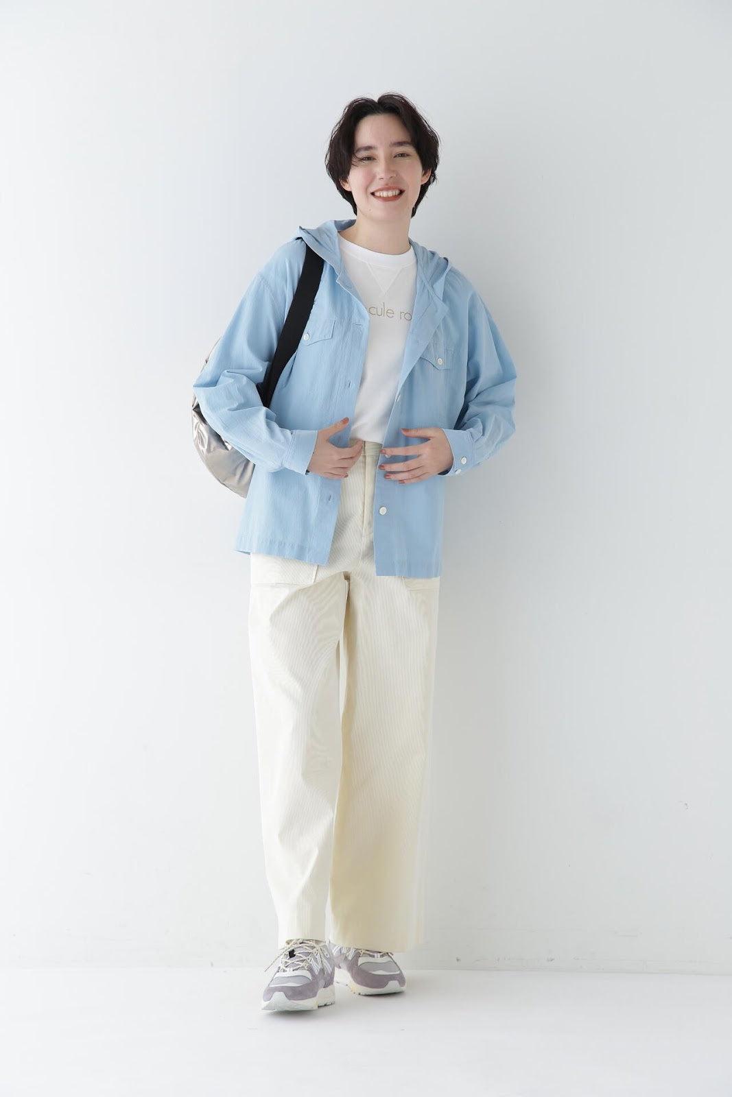 色彩鮮豔醒目的成人連帽上衣 [設計特色] 這是一款休閒連帽上衣,上衣採用產品染色,宛如春天的梭織上衣。上衣輪廓寬鬆,袖口可調節,因此也可作為春季外衣穿著。面料採用乾爽感的輕質材料染色,並經過 Omi 漂白處理。面料經過整理後,手感非常細膩。推薦座標] 此款既可作為前襟係扣的上衣,也可作為季節交替時的輕便編織物,非常方便。季節性的色彩將為您的日常風格增添一抹魅力。