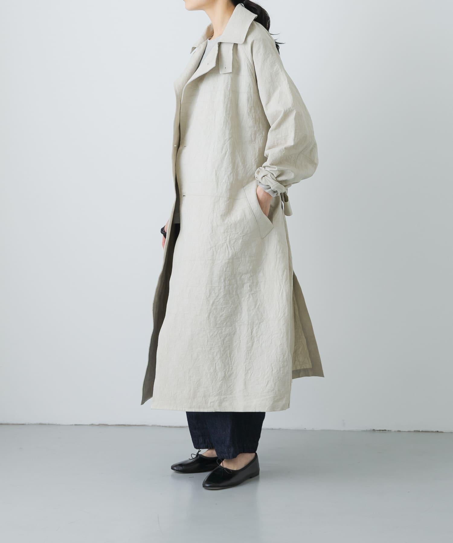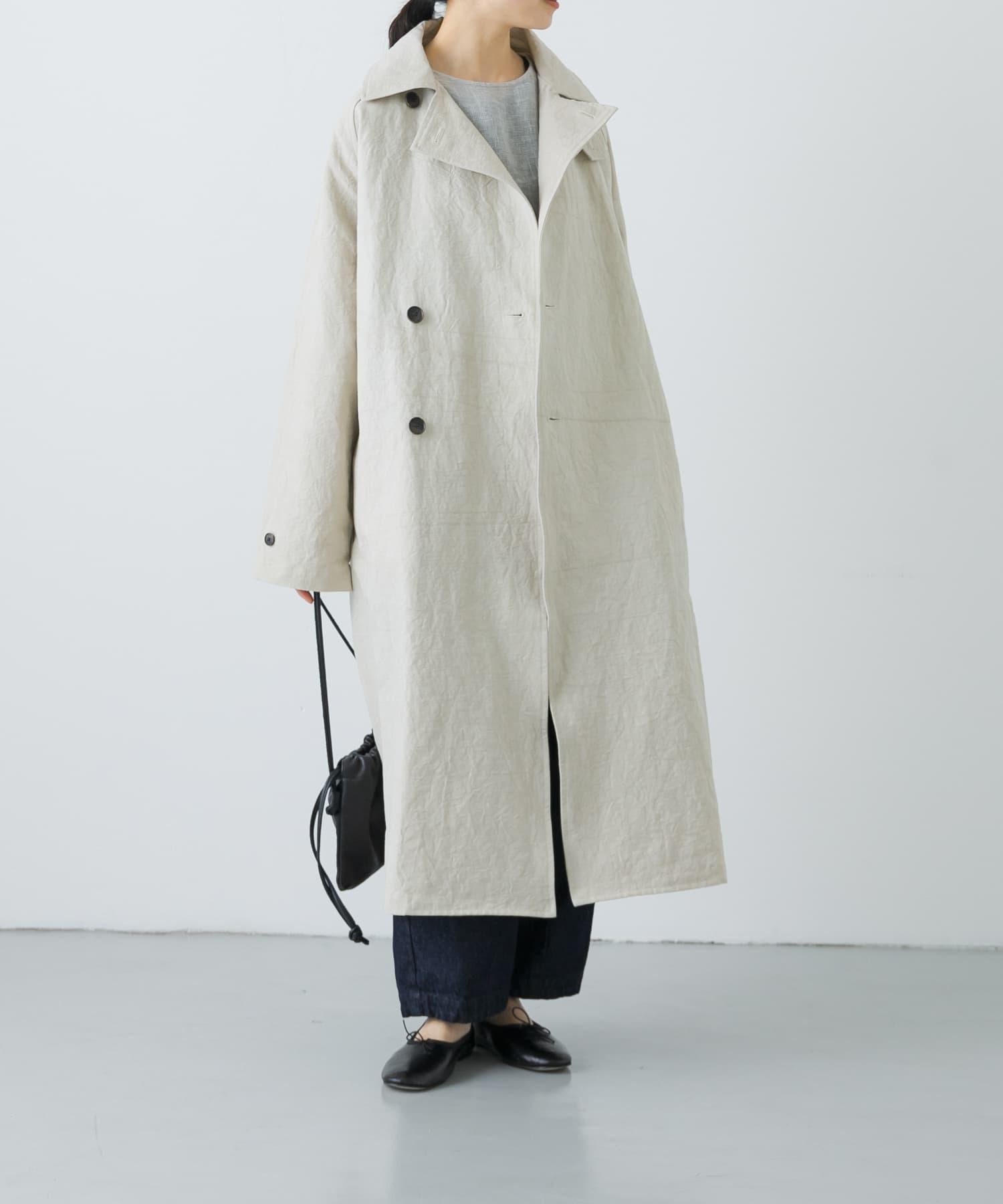 超大號的設計讓你只需穿上它,就能展現四季風情。 KAGURE 推出的這款風衣設計簡約精緻,沒有肩章、傘軛或襟翼。 天氣寒冷時可搭配針織衫,天氣轉暖時可搭配襯衫和剪裁簡潔的針織衫。 腰帶可以鬆鬆垮垮地穿,也可以系得緊緊的,顯得更有層次感。 這是一款可根據氣溫調整內搭的絕佳單品。 有兩種尺寸可供選擇,您可以根據自己的喜好選擇尺寸。