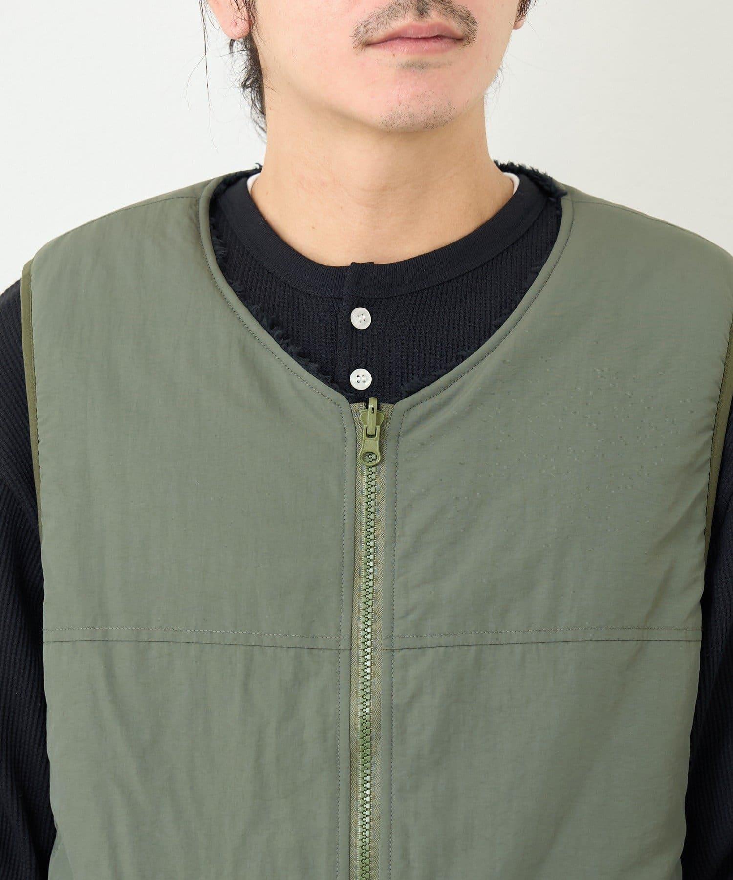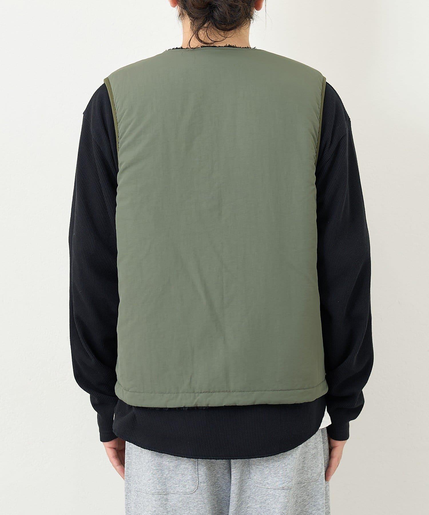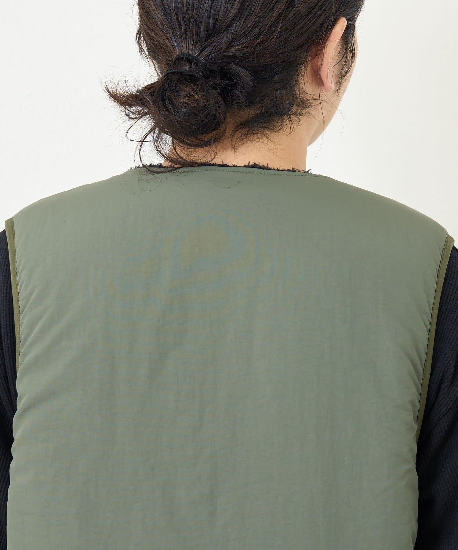 這是一款雙面馬甲,一面是乾淨素雅的顏色,另一面則是絨毛面料。