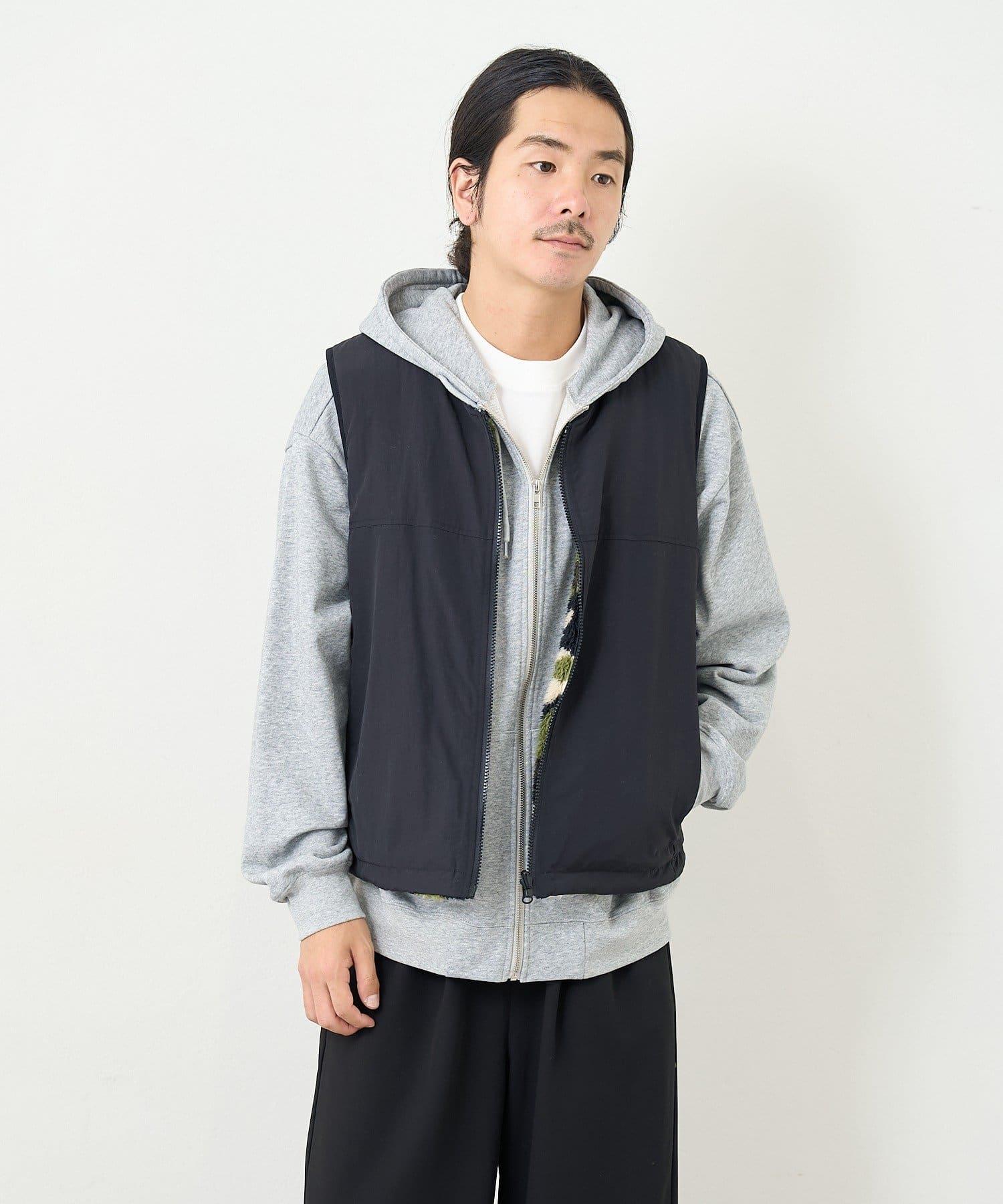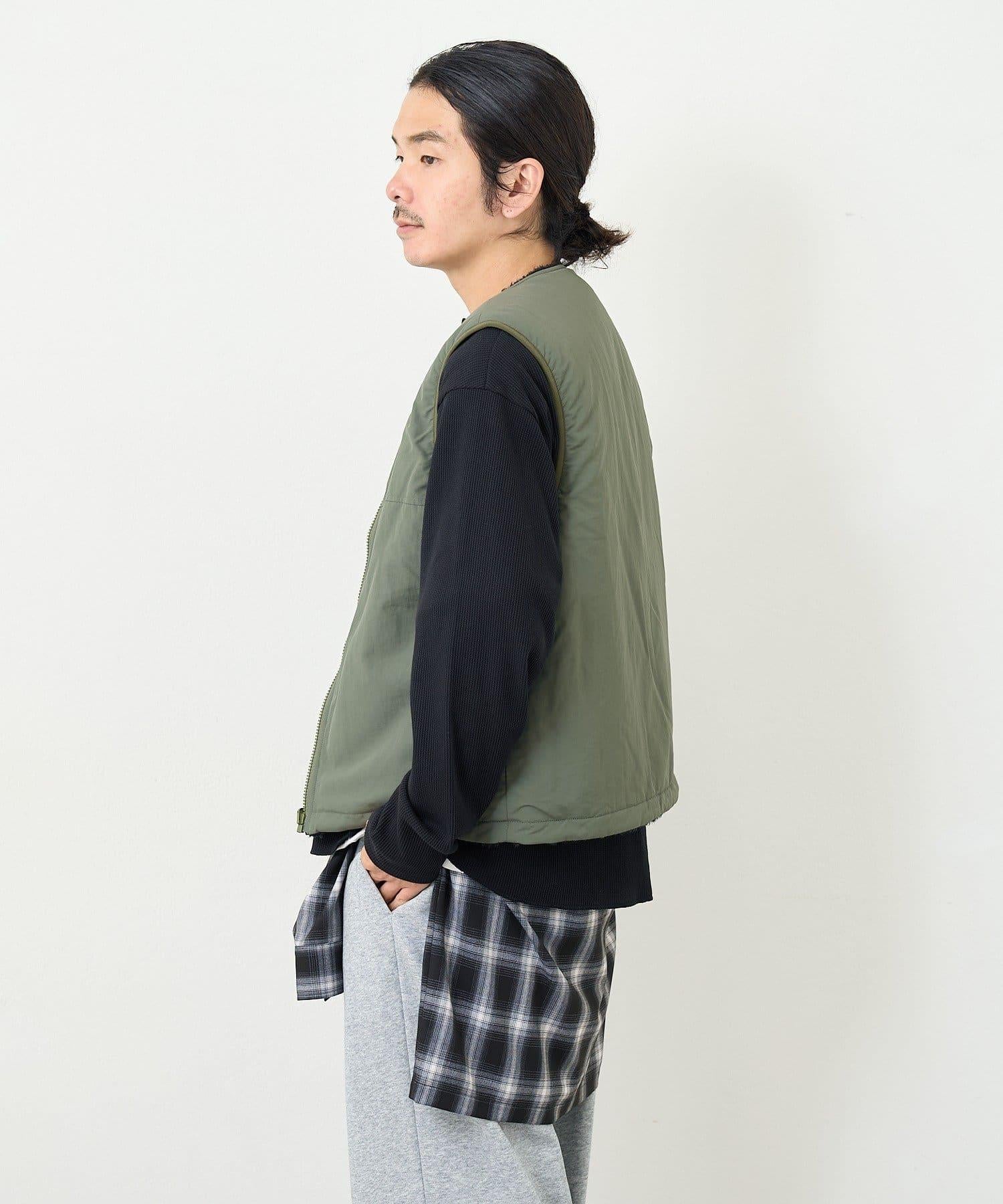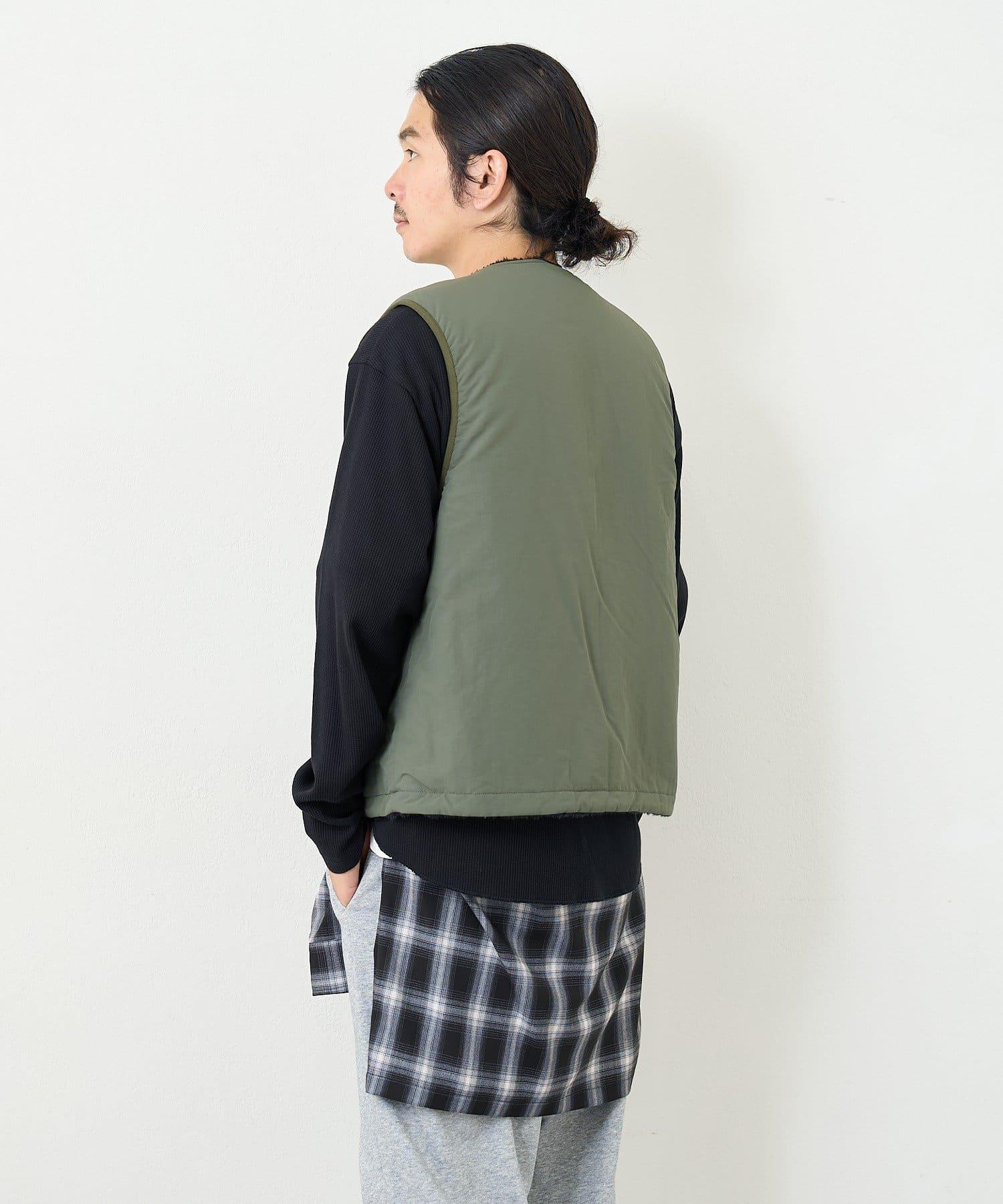 這是一款雙面馬甲,一面是乾淨素雅的顏色,另一面則是絨毛面料。