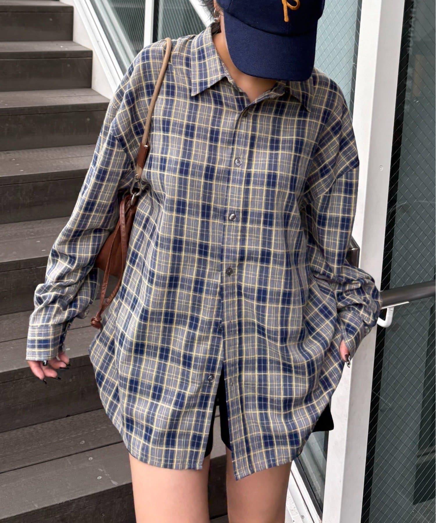 【男女通用】商場混紡長袖格子襯衫