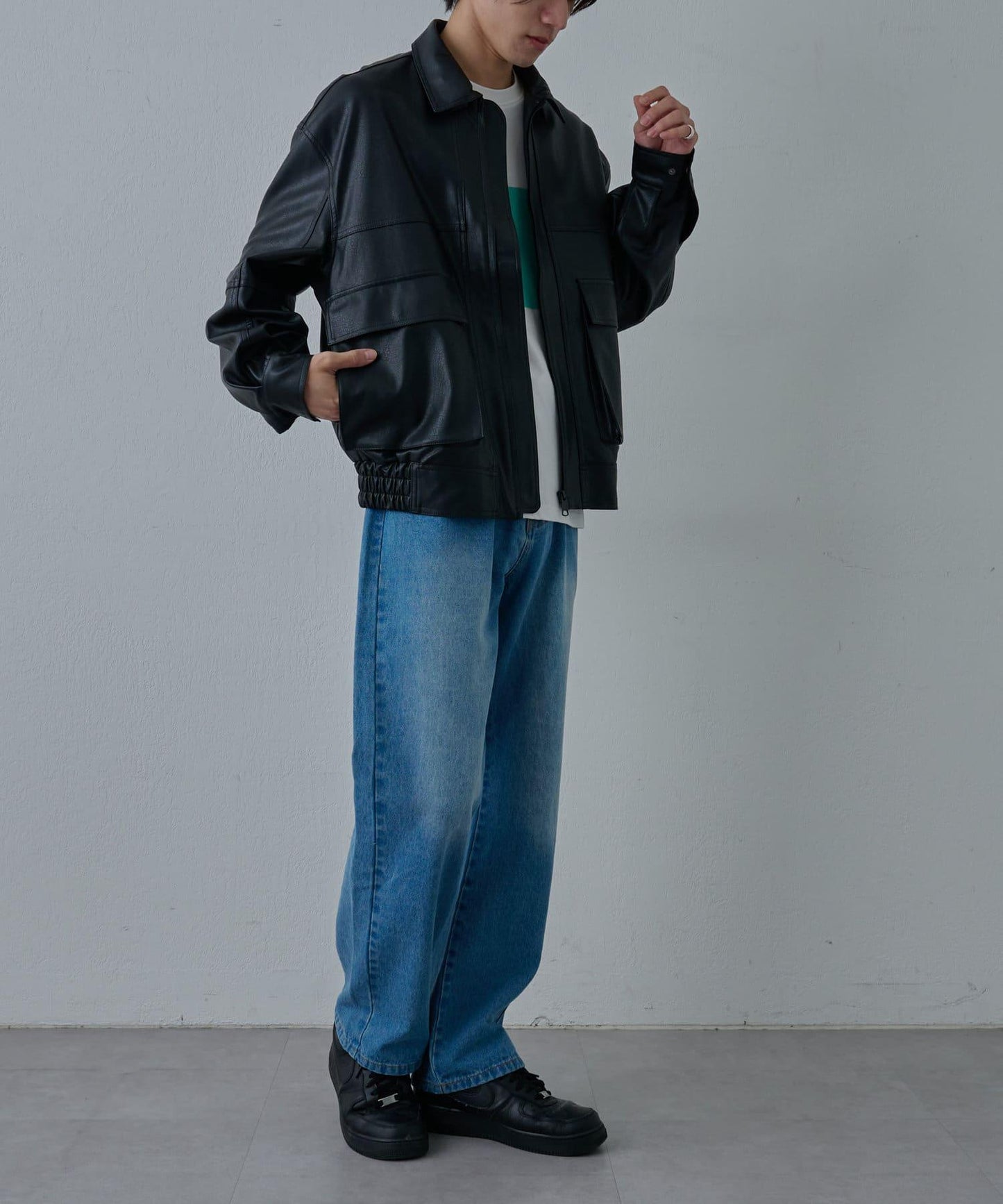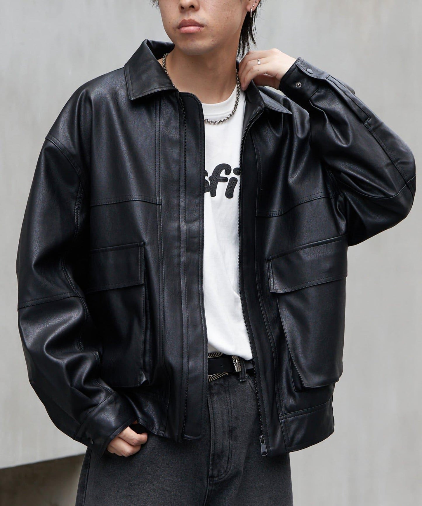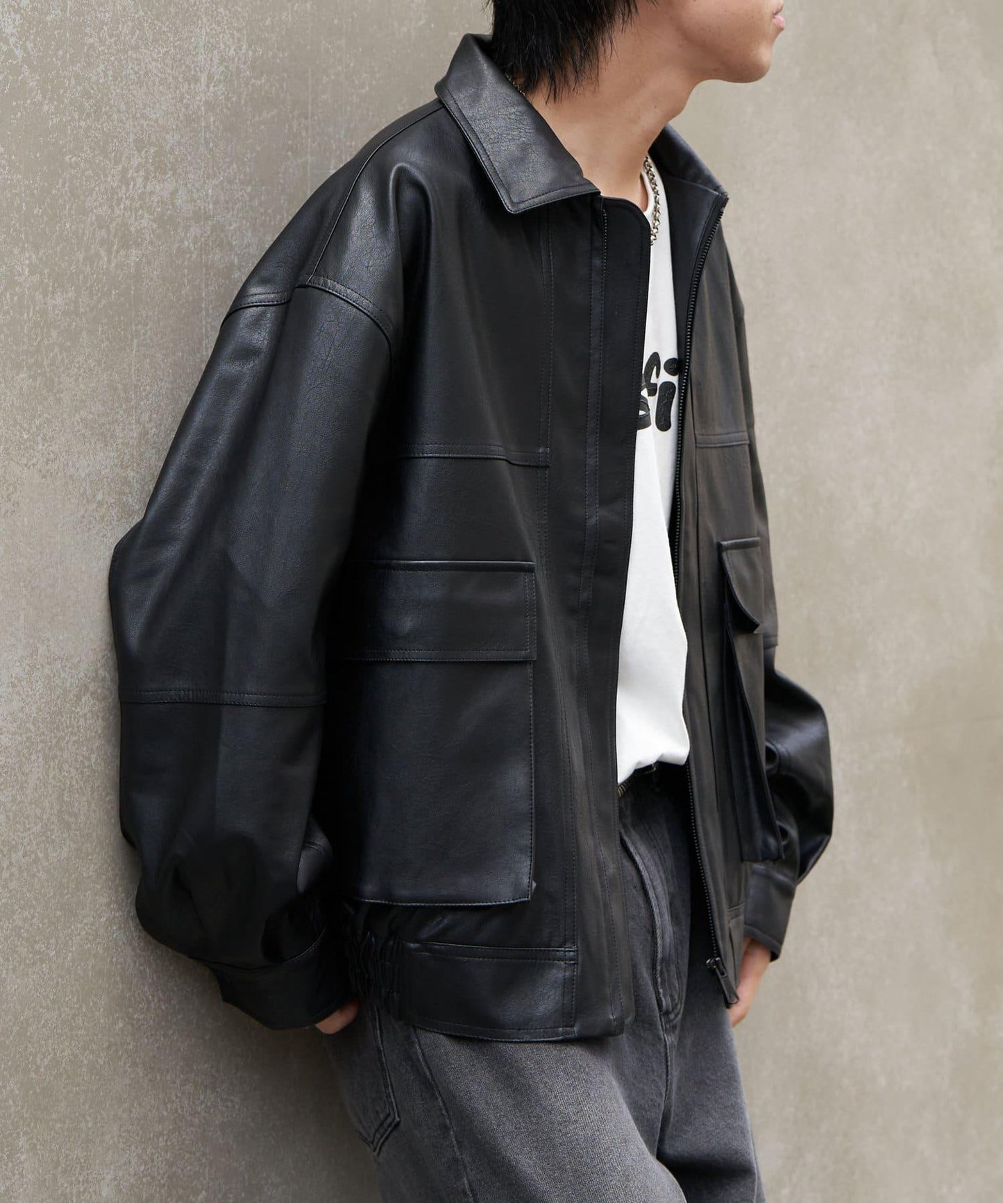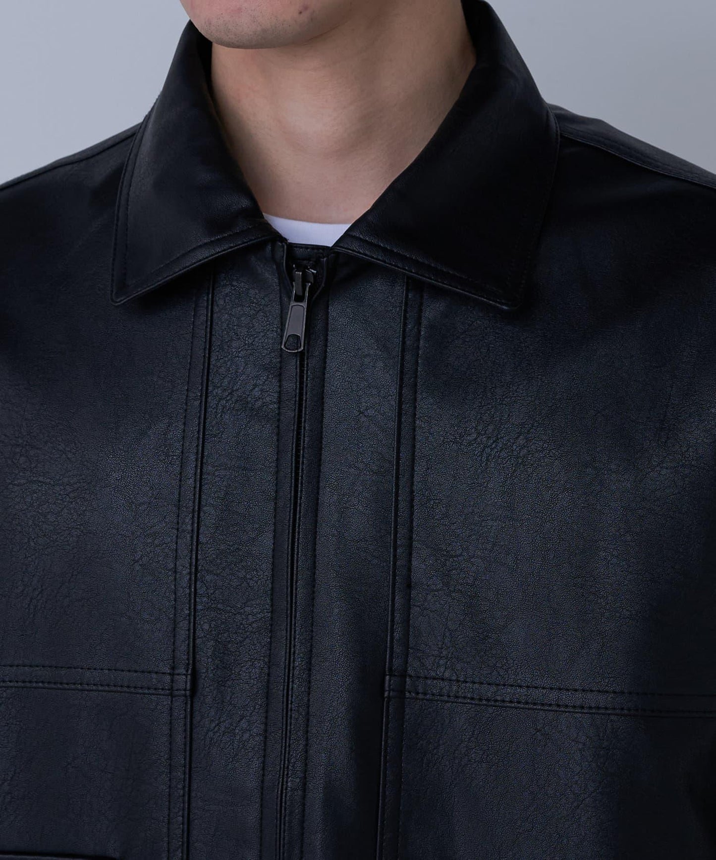 這款飛行夾克採用復古的仿皮面料製成,細膩的皮質讓它看起來十分粗獷。