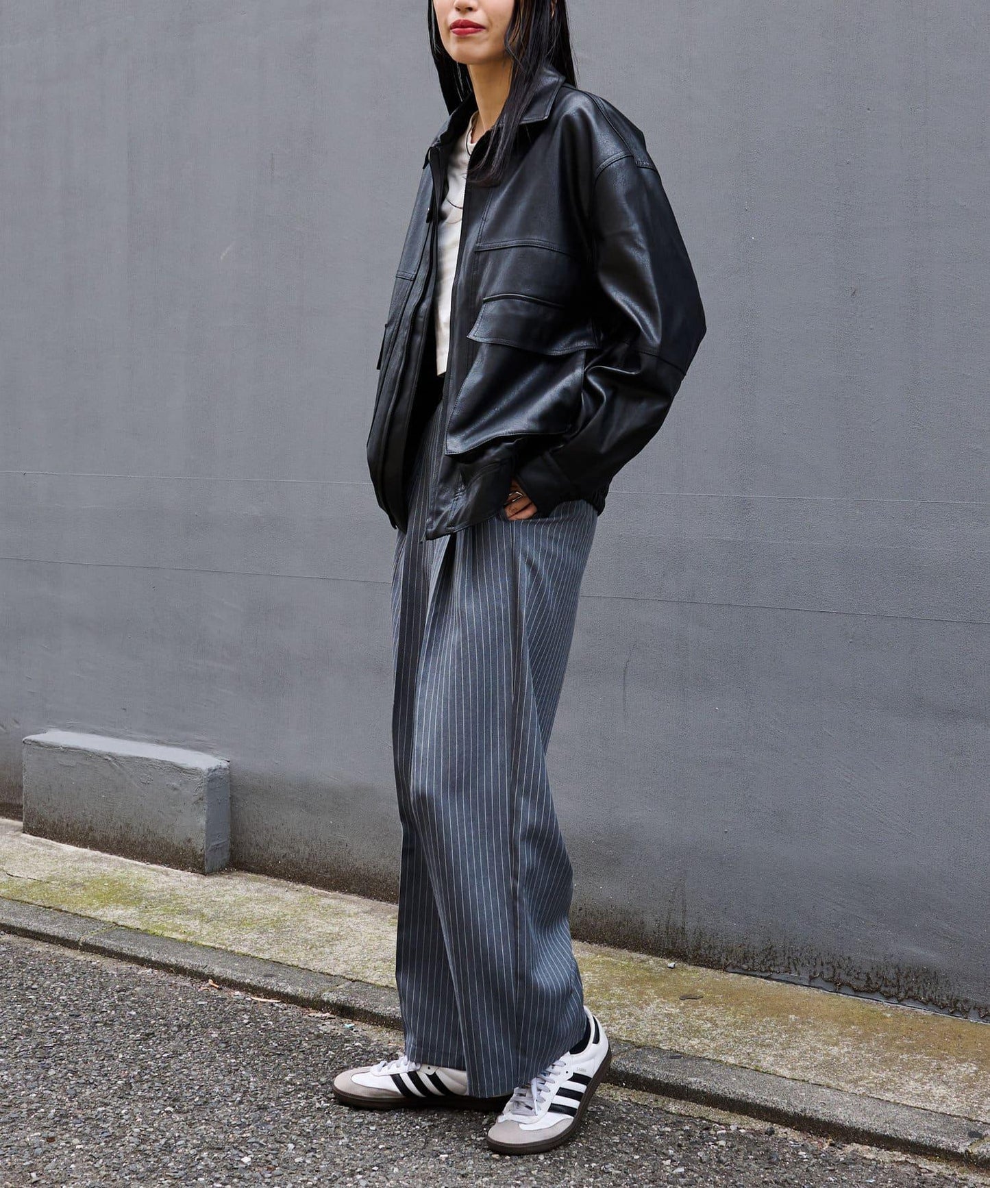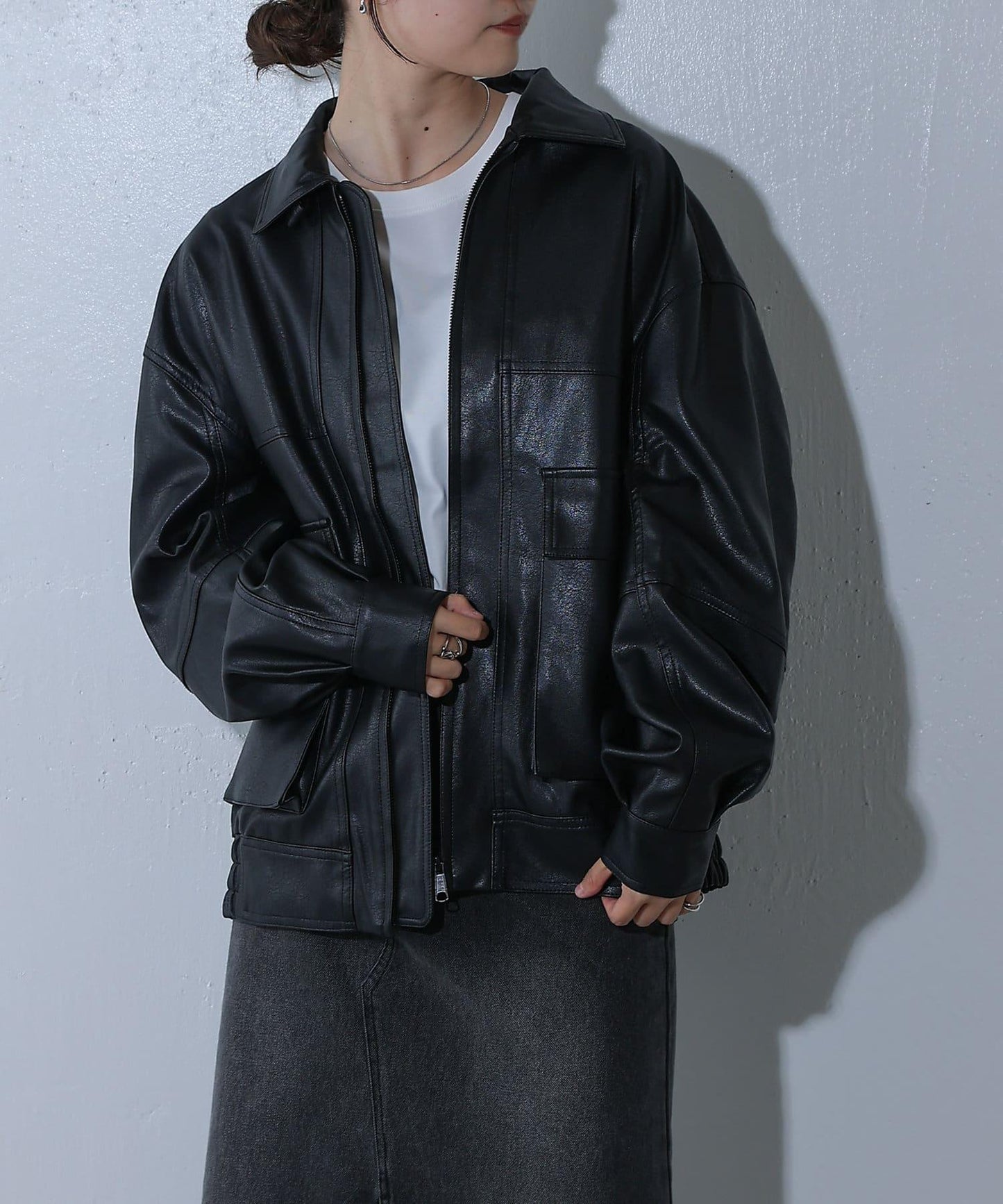 可作為支架使用的雙向規格,讓人感覺皮夾克今年作為外衣將非常活躍。