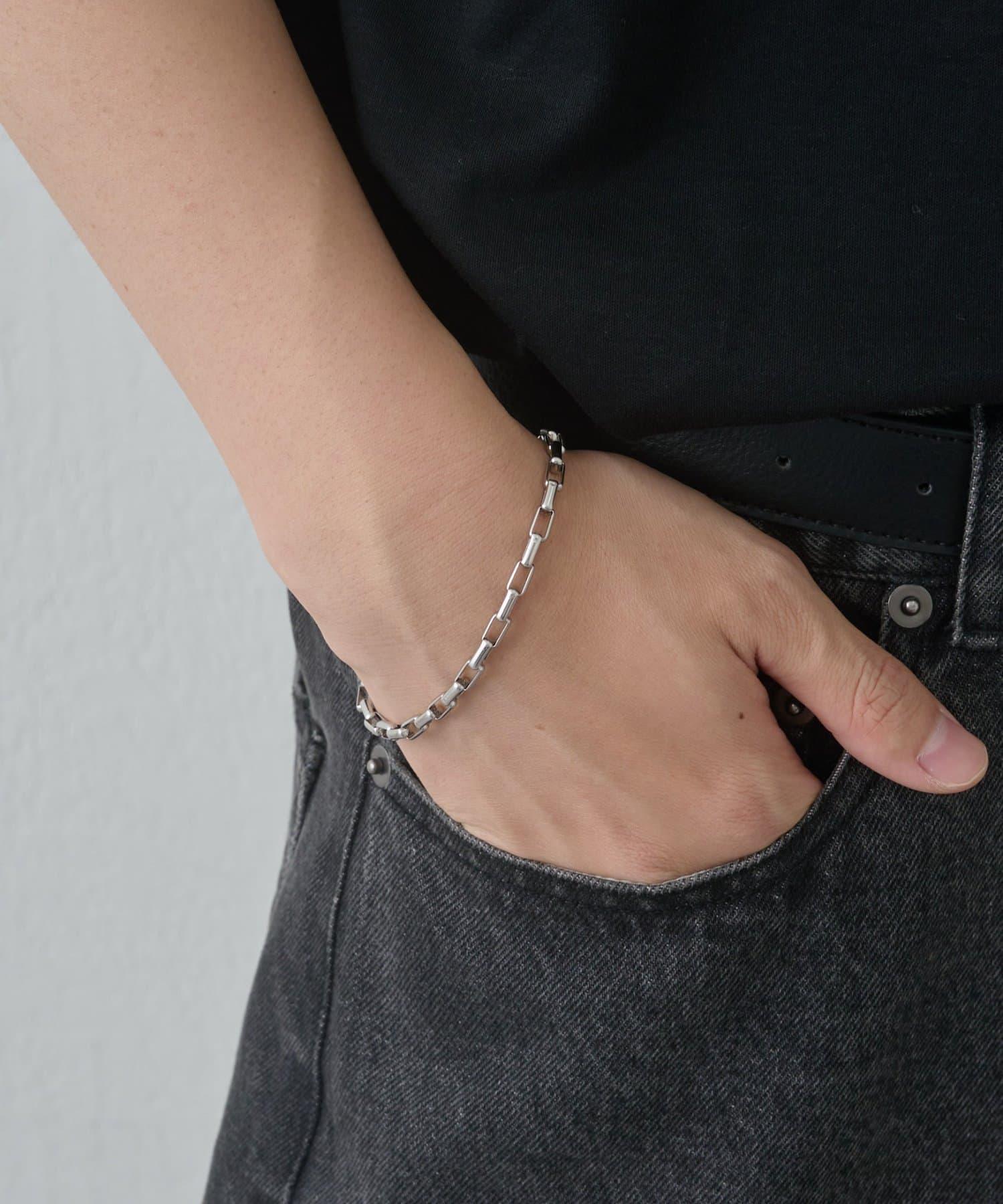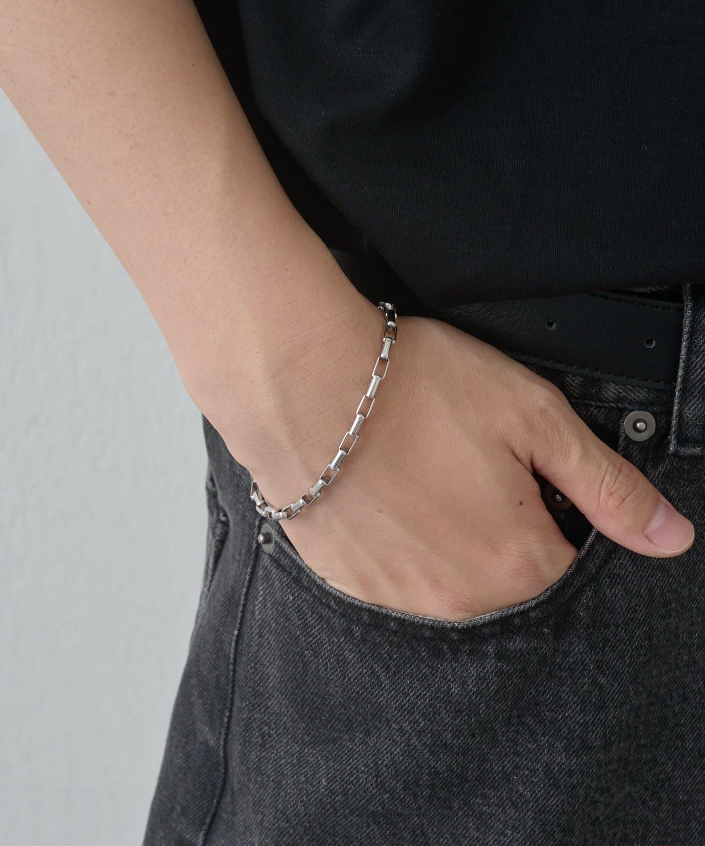 [不鏽鋼手鍊,配醒目方形鏈條】。]