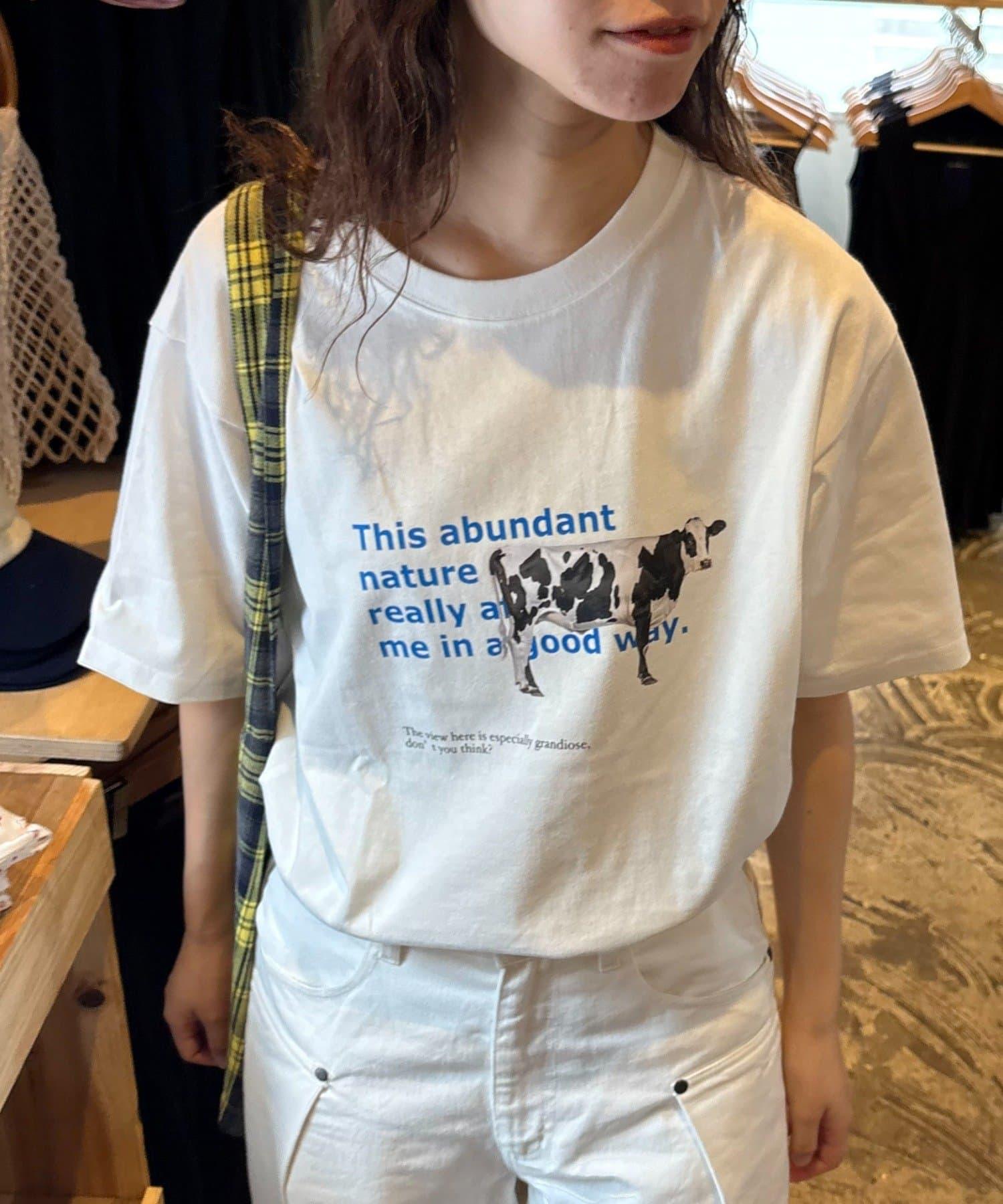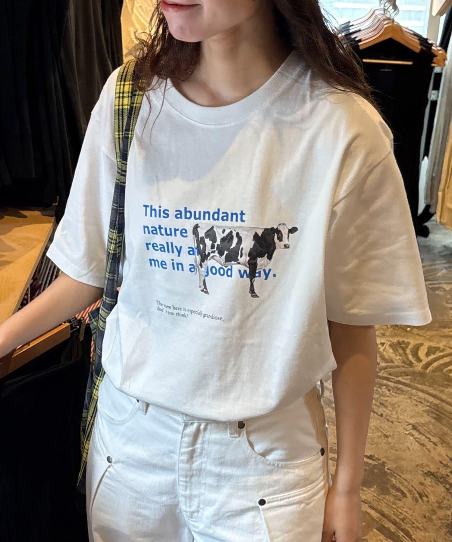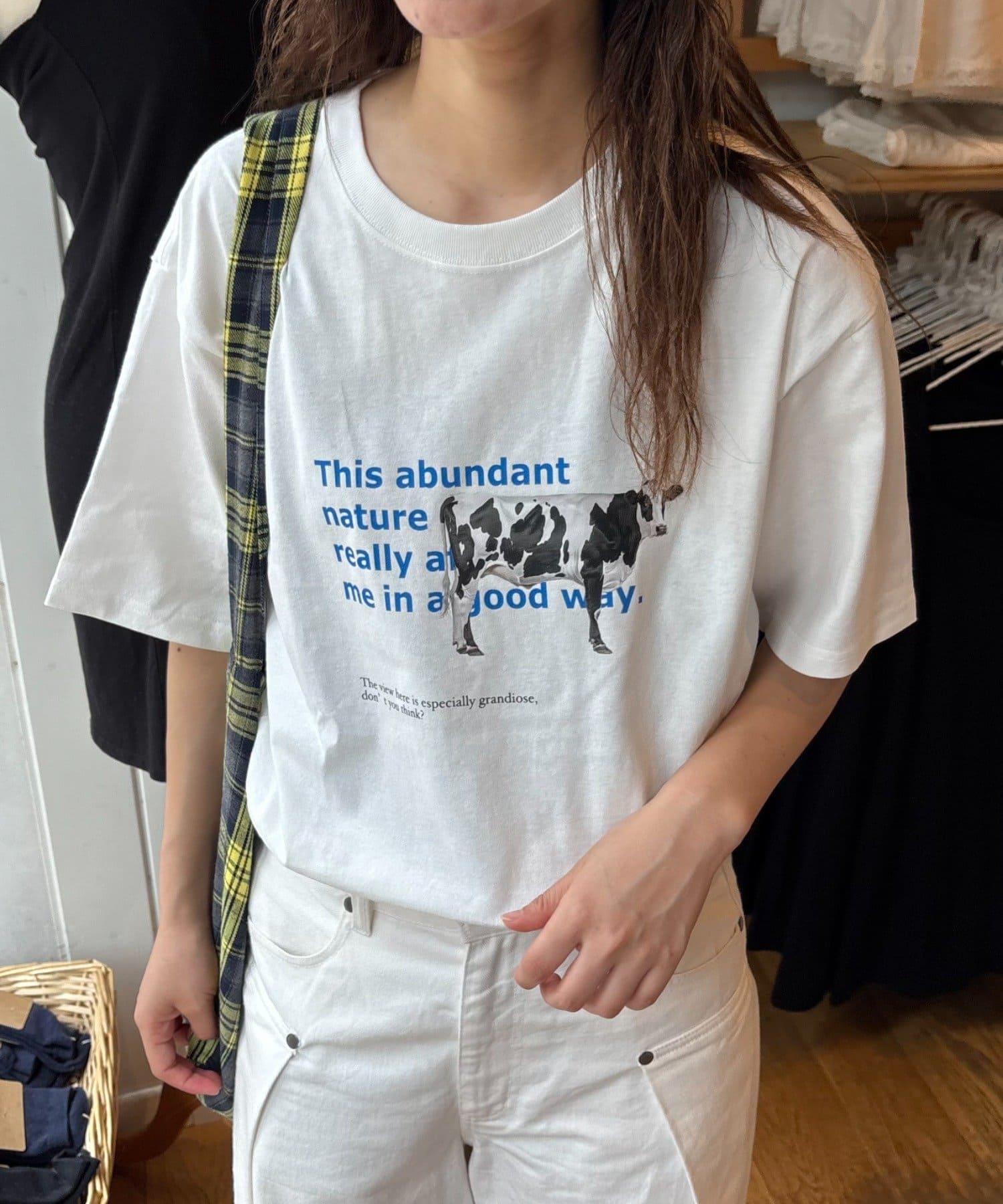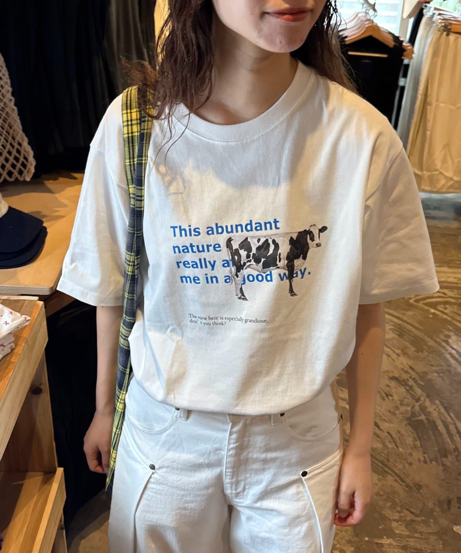 一款印有逼真的奶牛圖案和標識的 T 恤!