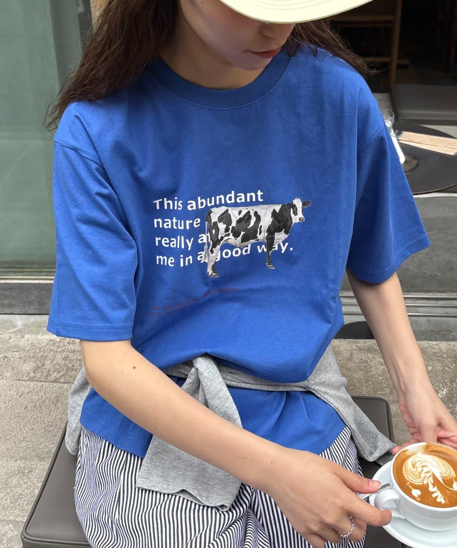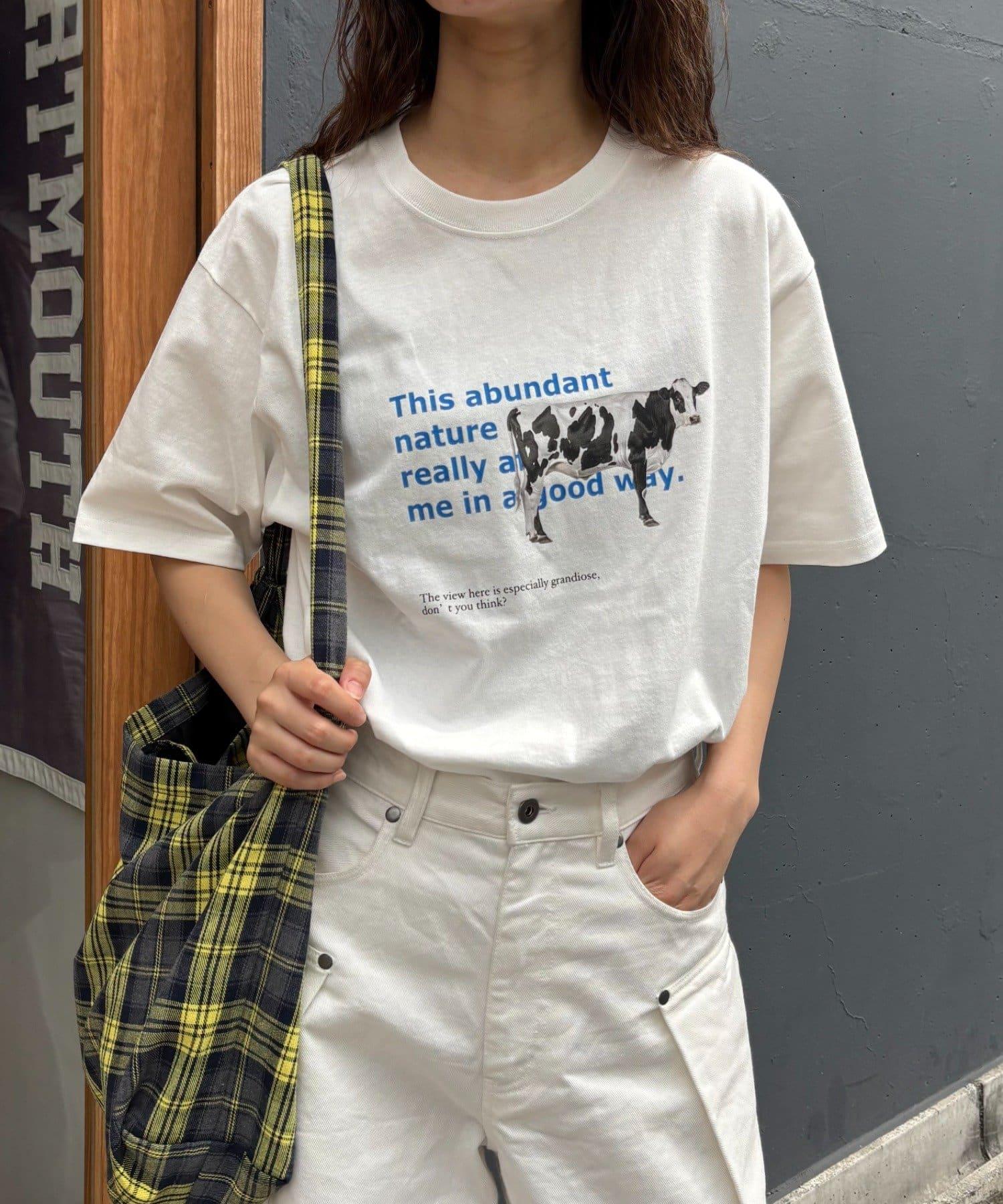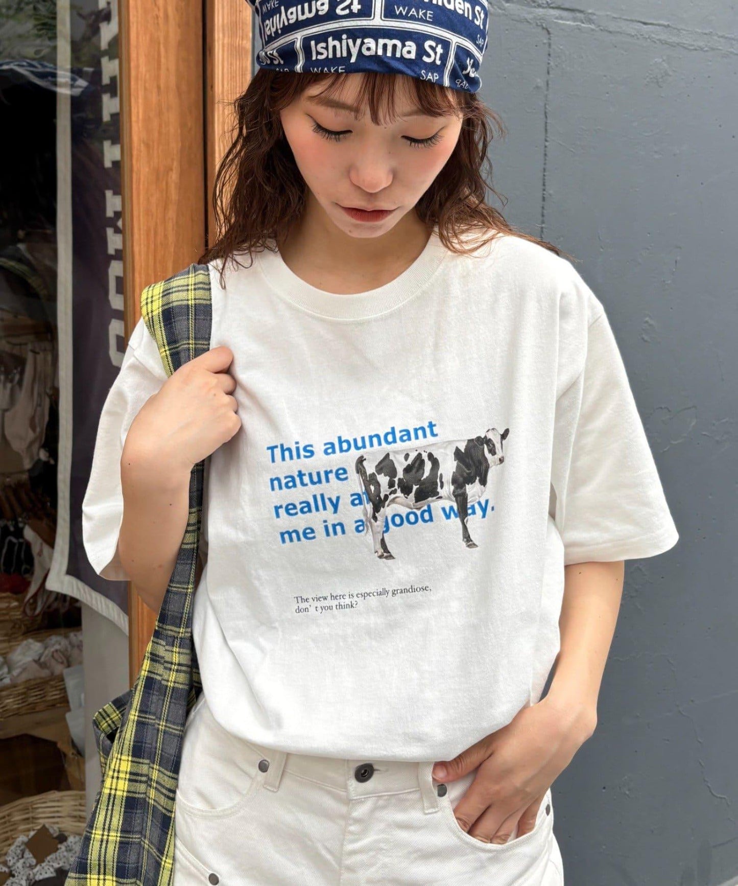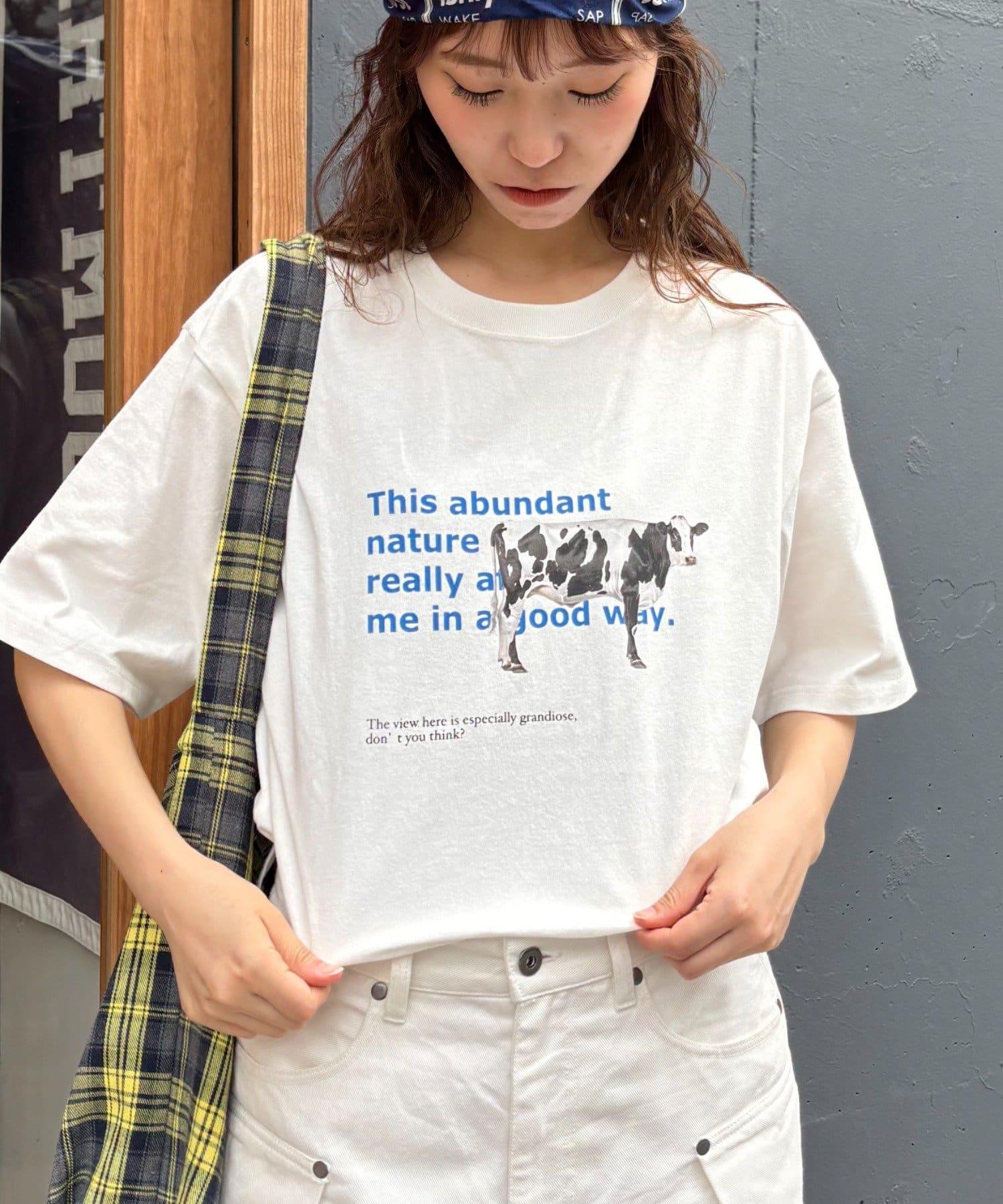一款印有逼真的奶牛圖案和標識的 T 恤!