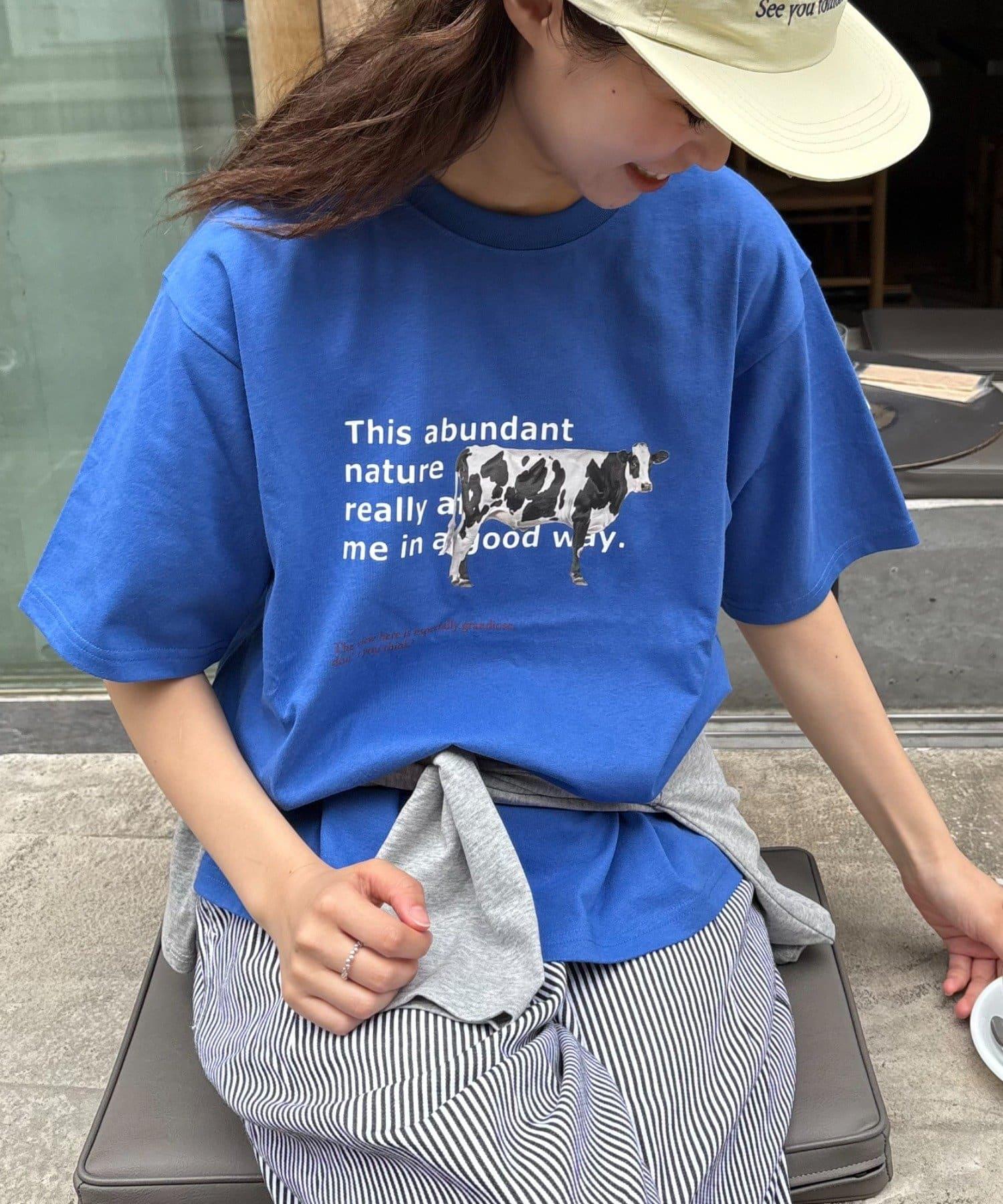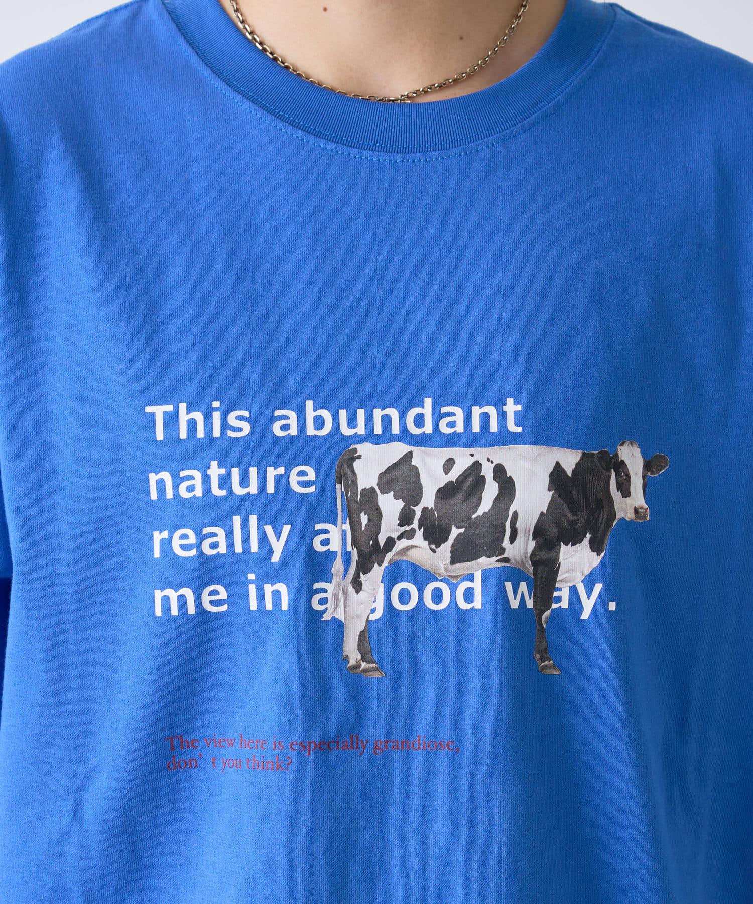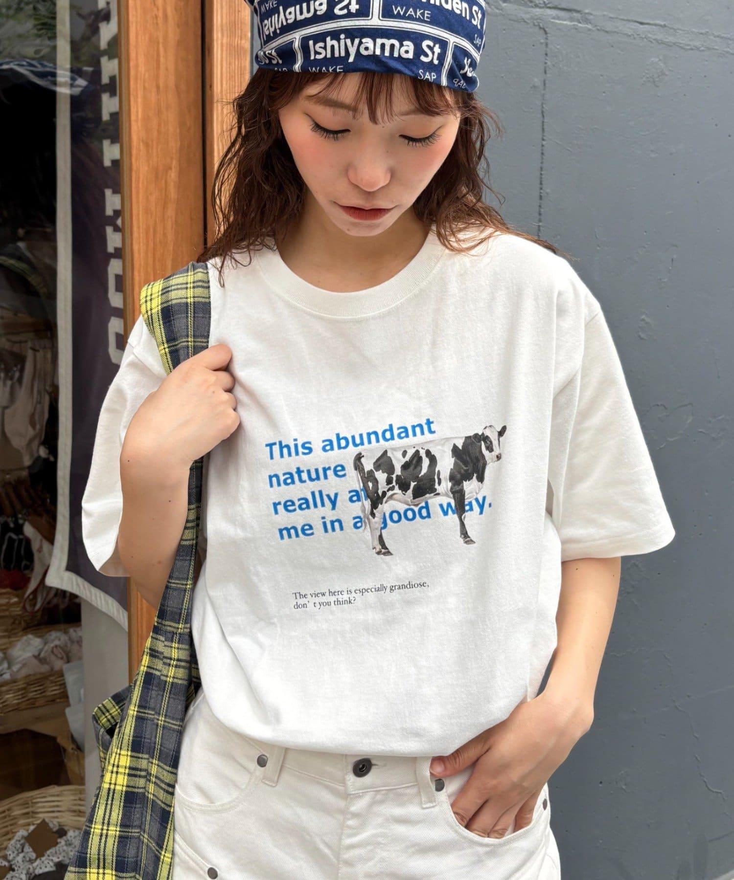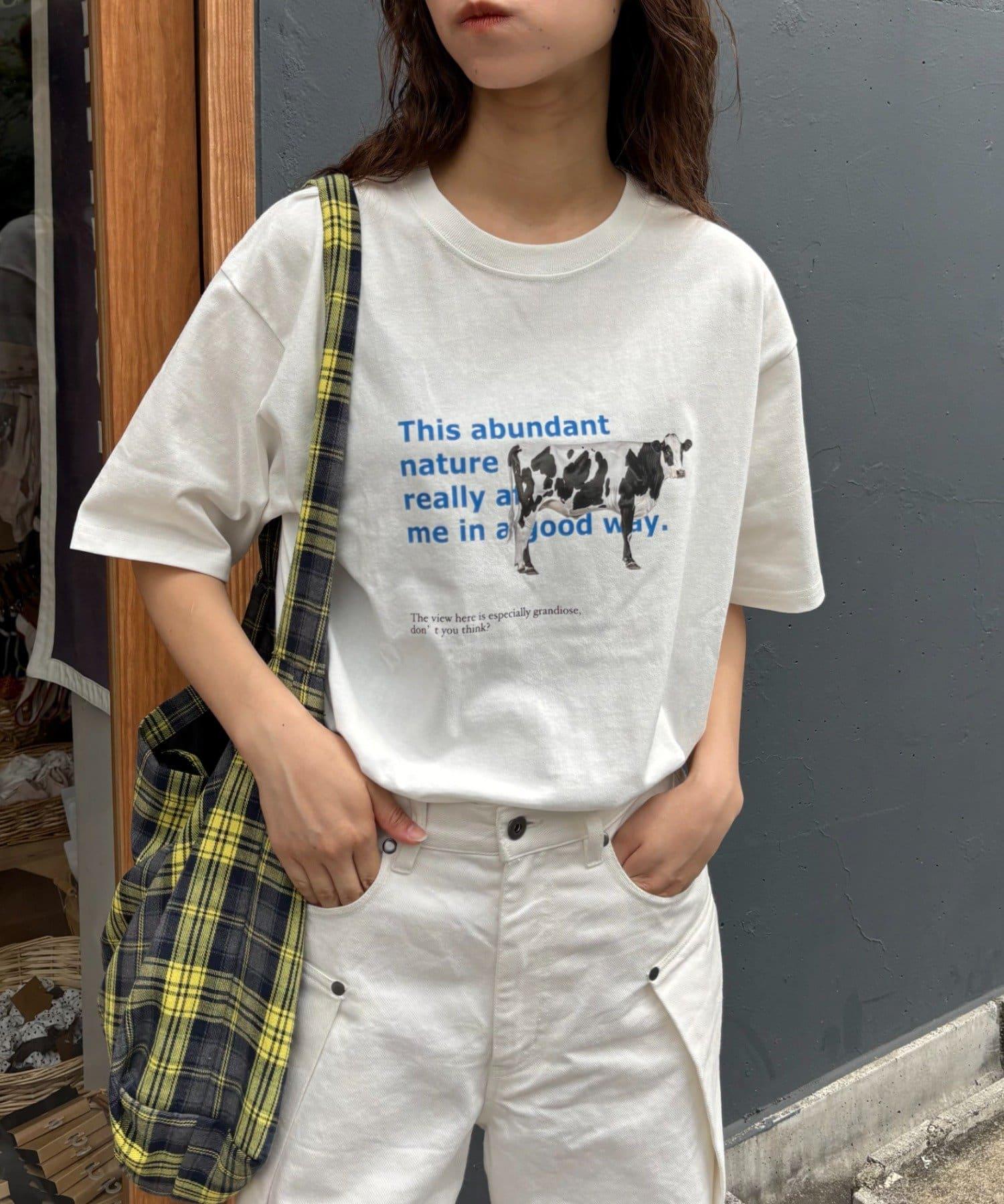 一款印有逼真的奶牛圖案和標識的 T 恤!