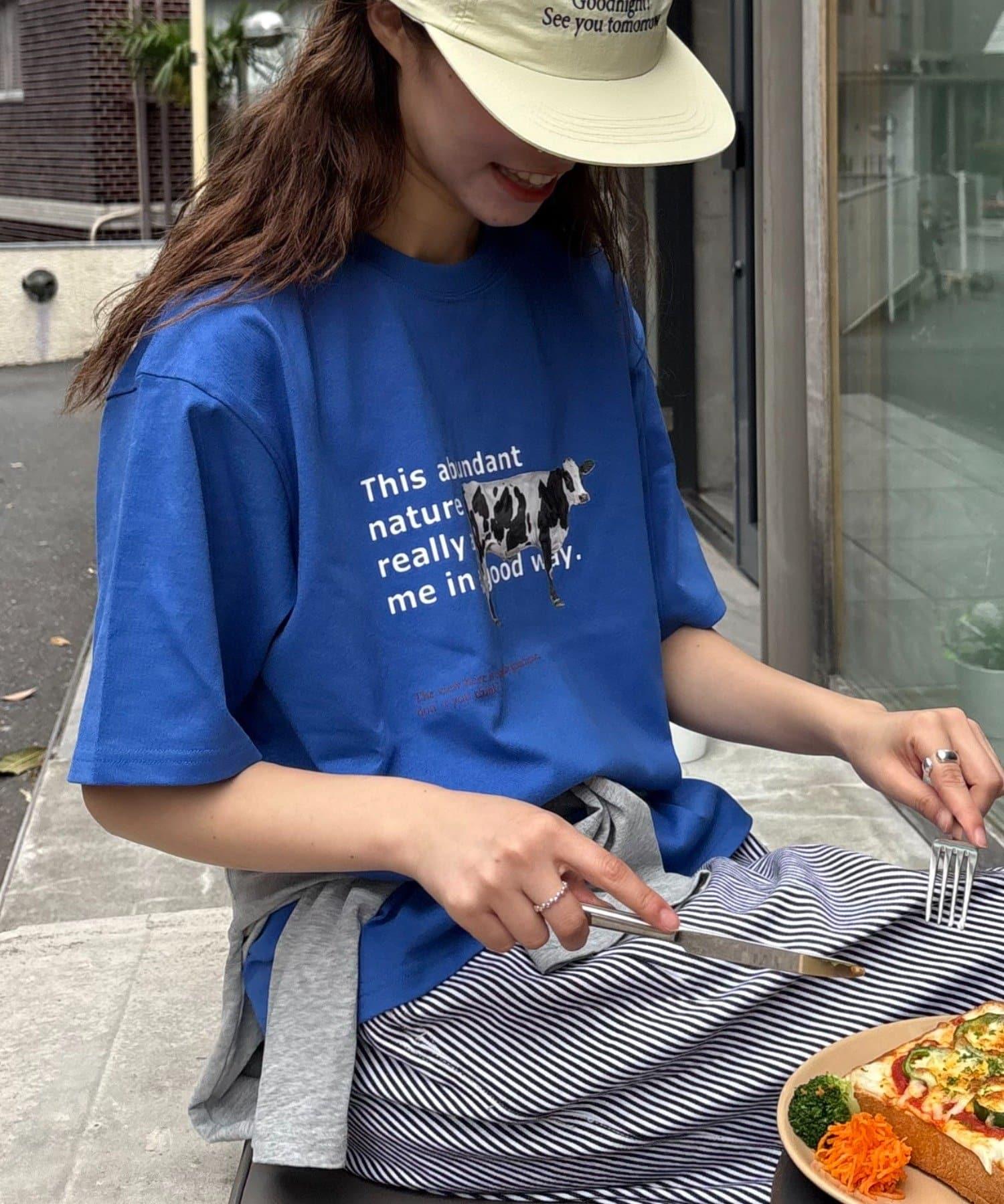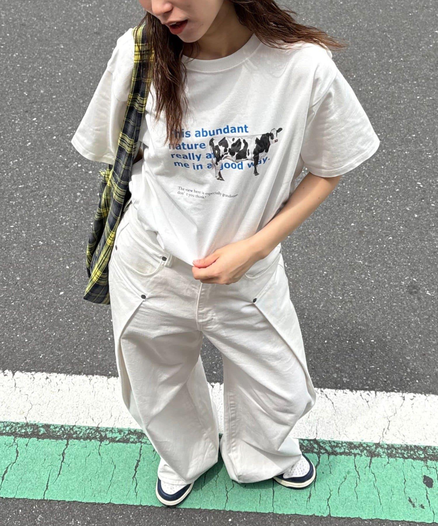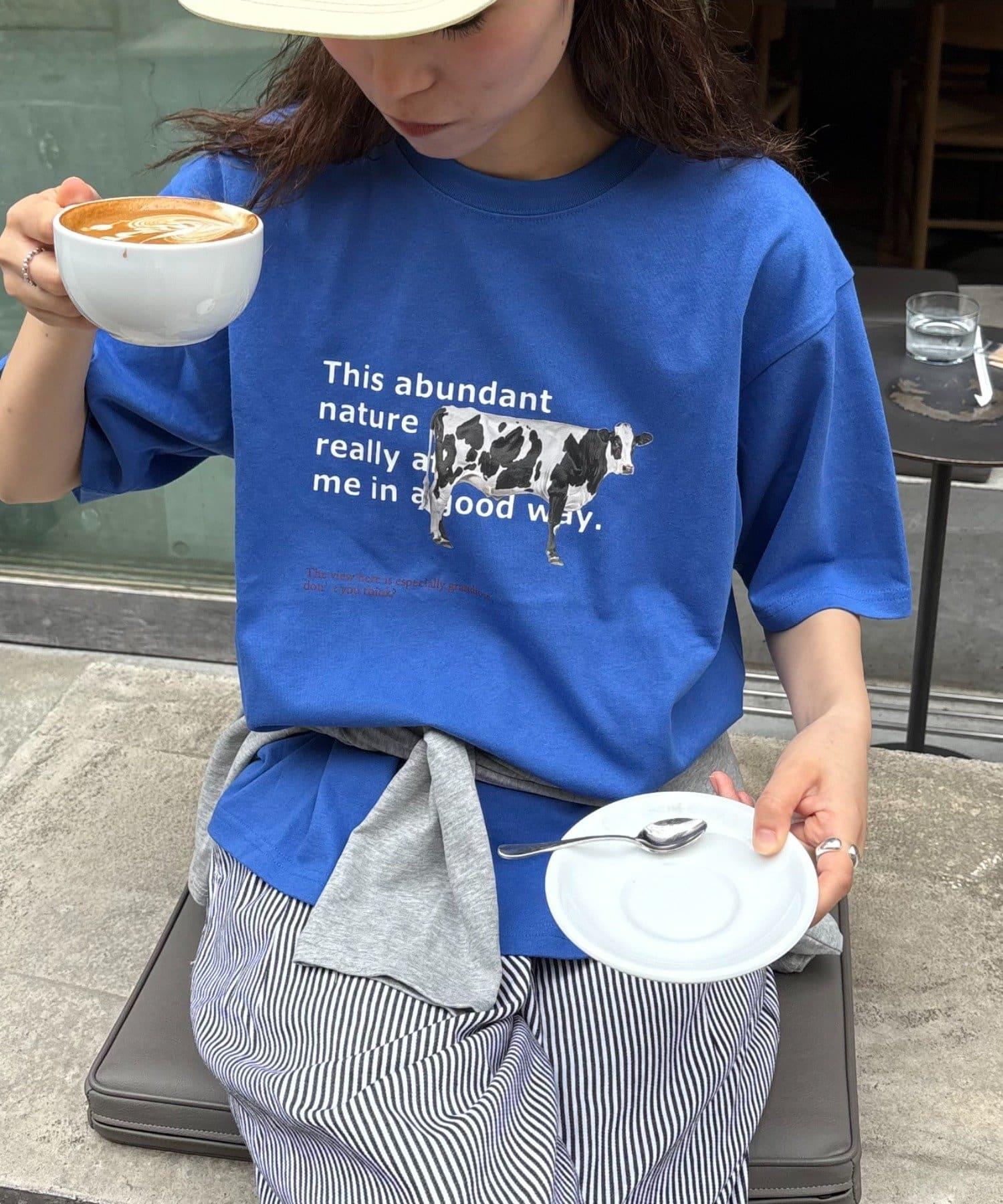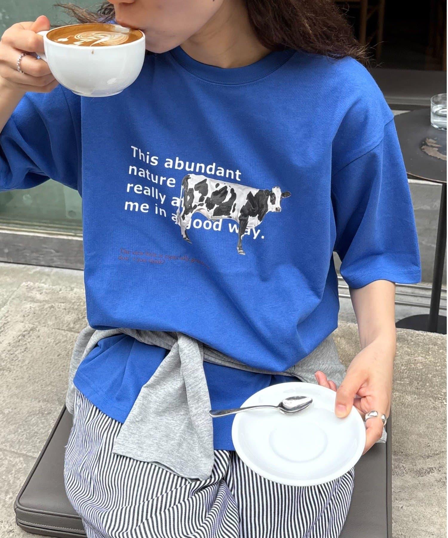 一款印有逼真的奶牛圖案和標識的 T 恤!